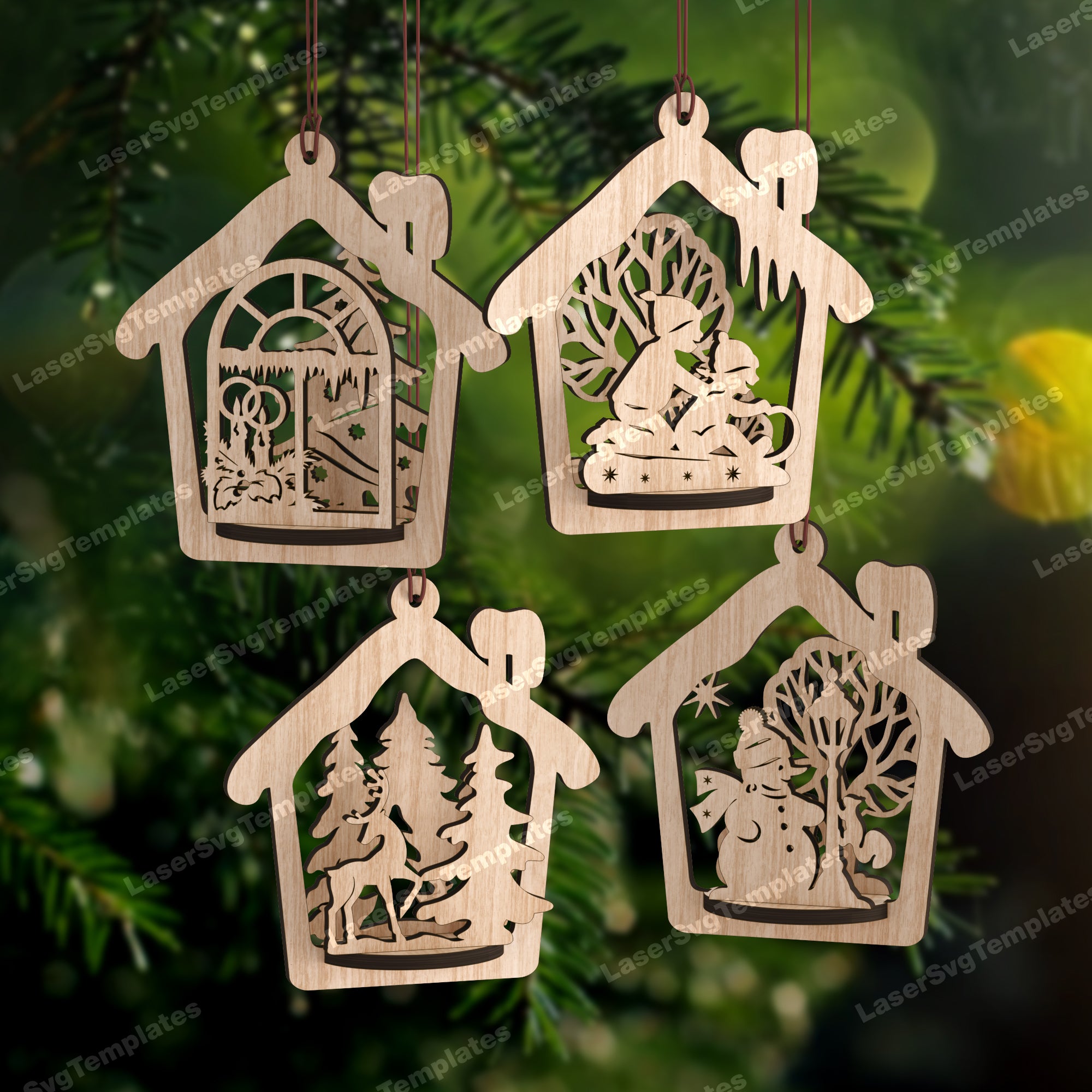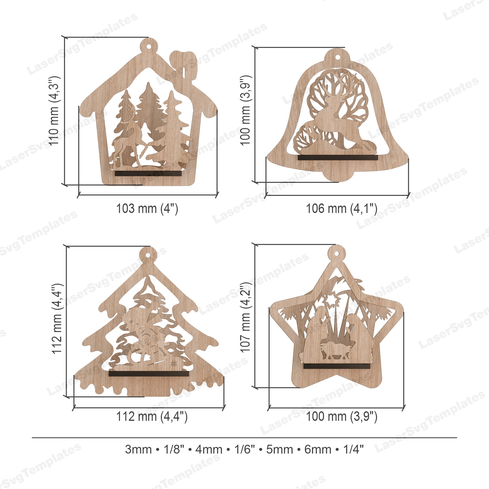 - Ornements de balle d'arbre de Noël 3d 16 Fichier SVG au laser de paquet