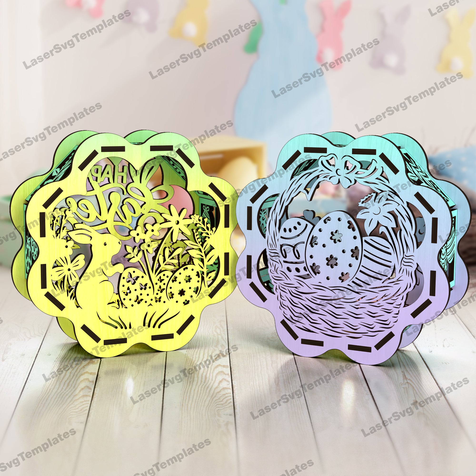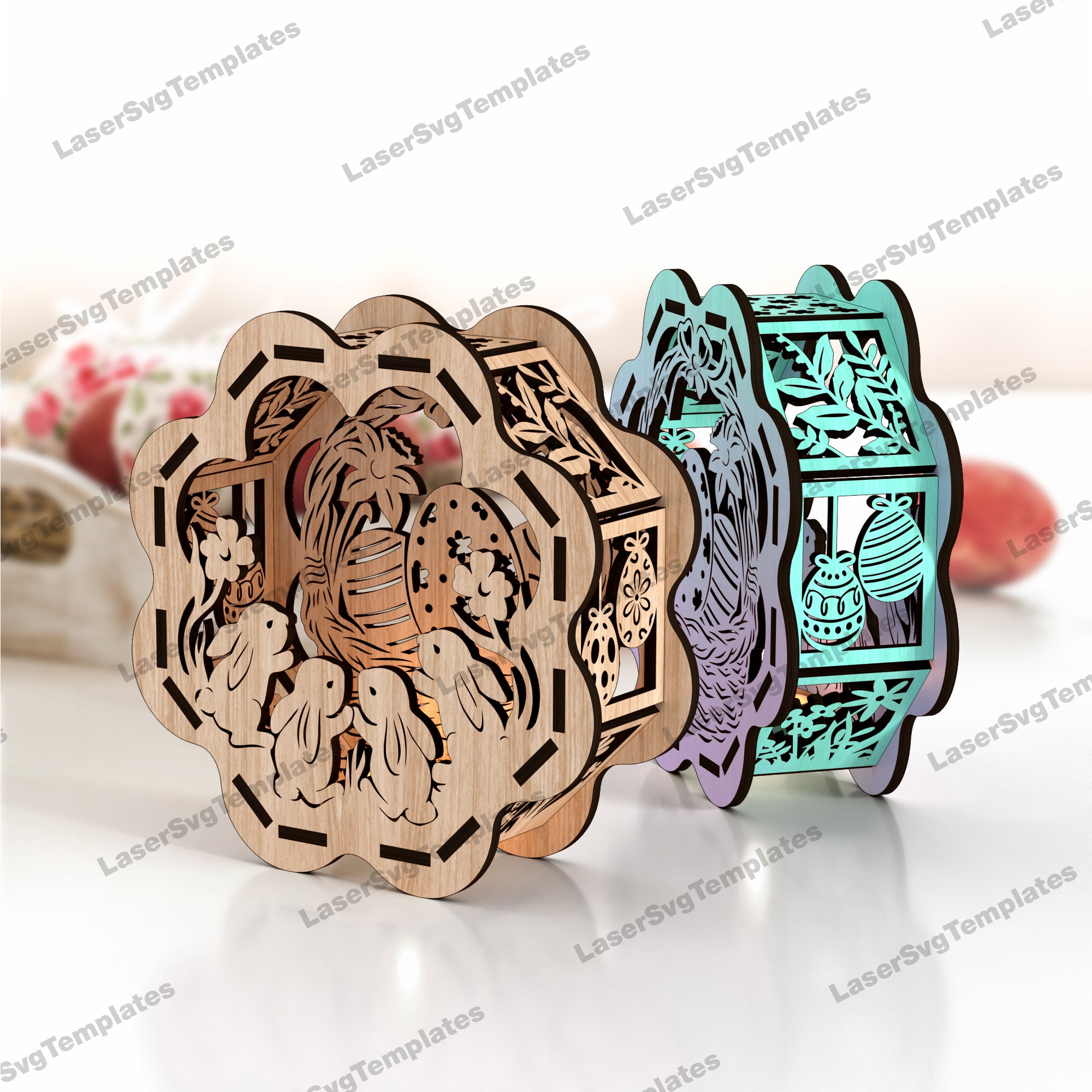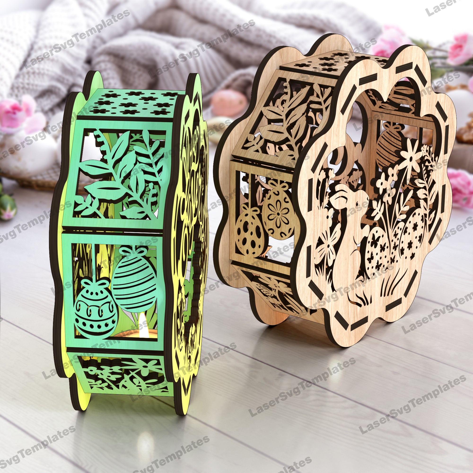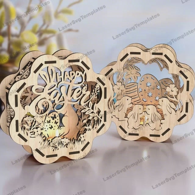 Porte-bougie lapin de Pâques découpé au laser 2 bundle fichier svg