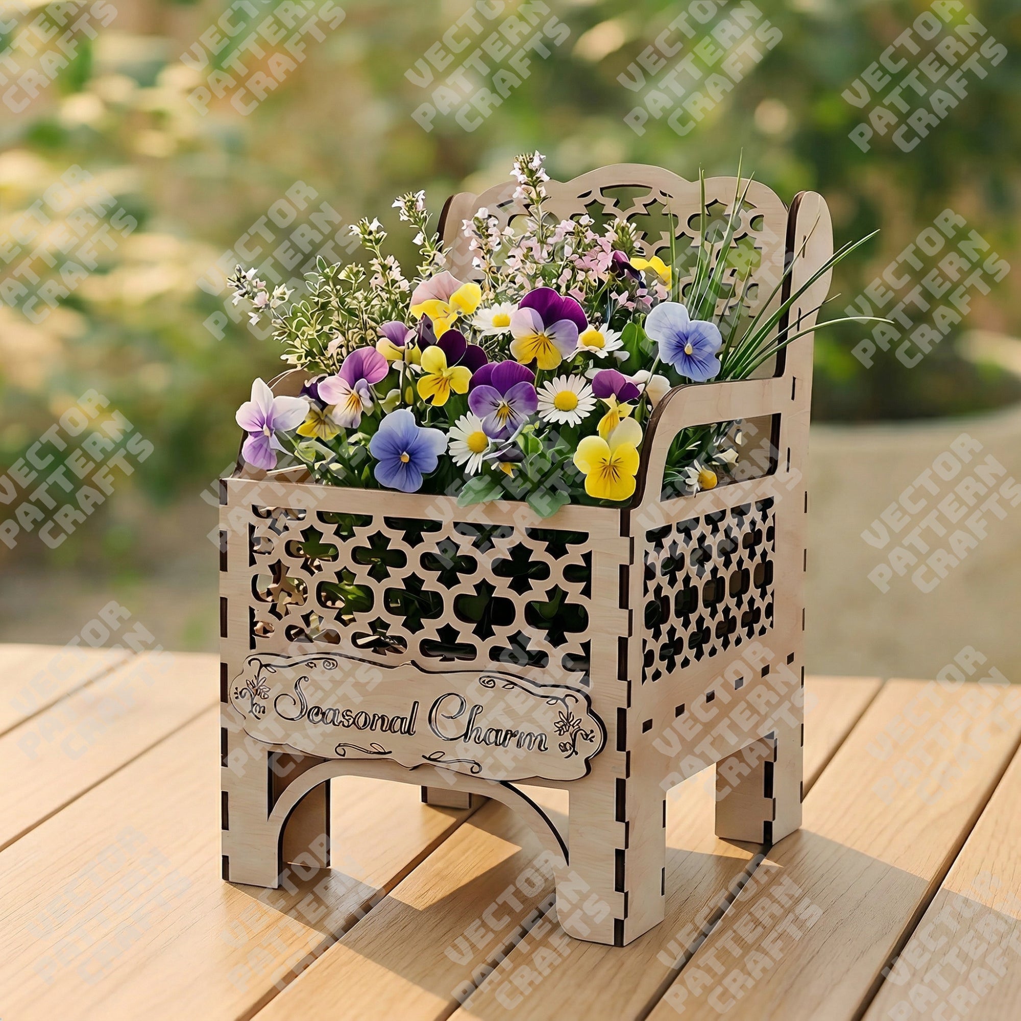 Fichier svg découpé au laser de panier de fleurs décoratives
