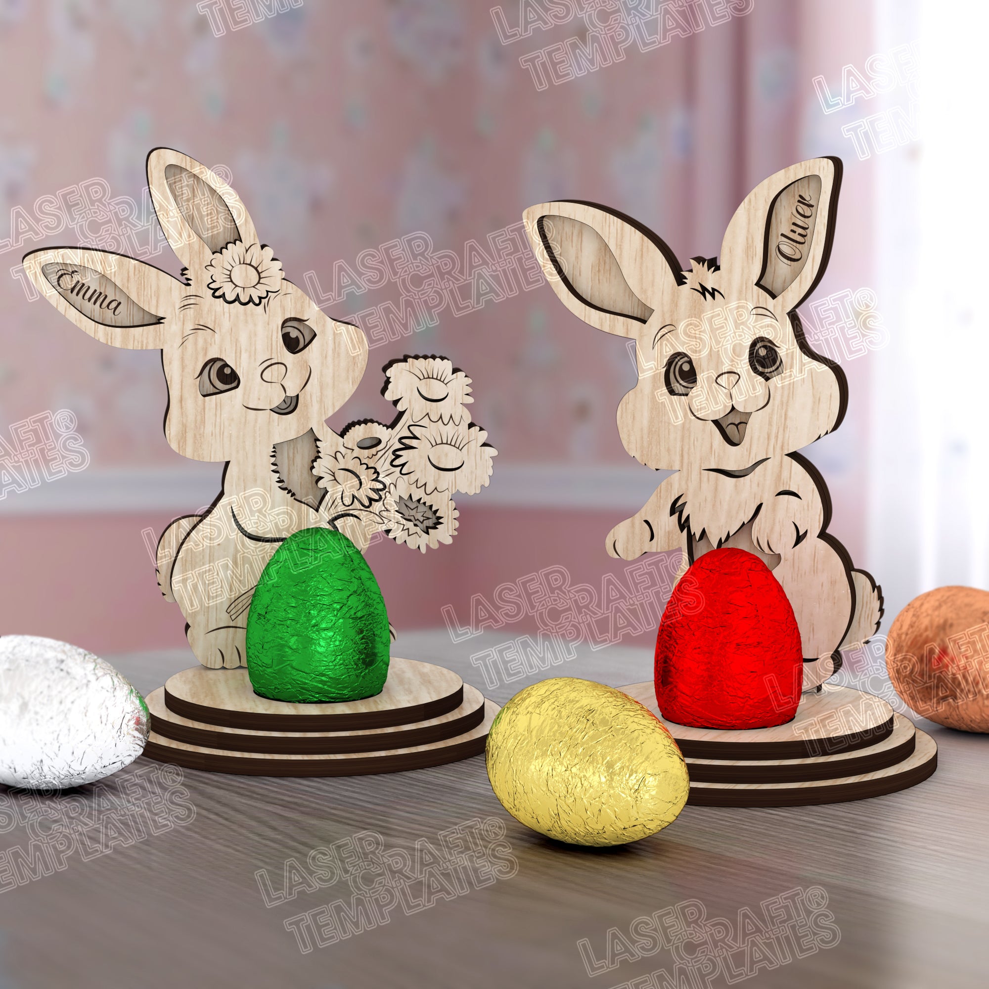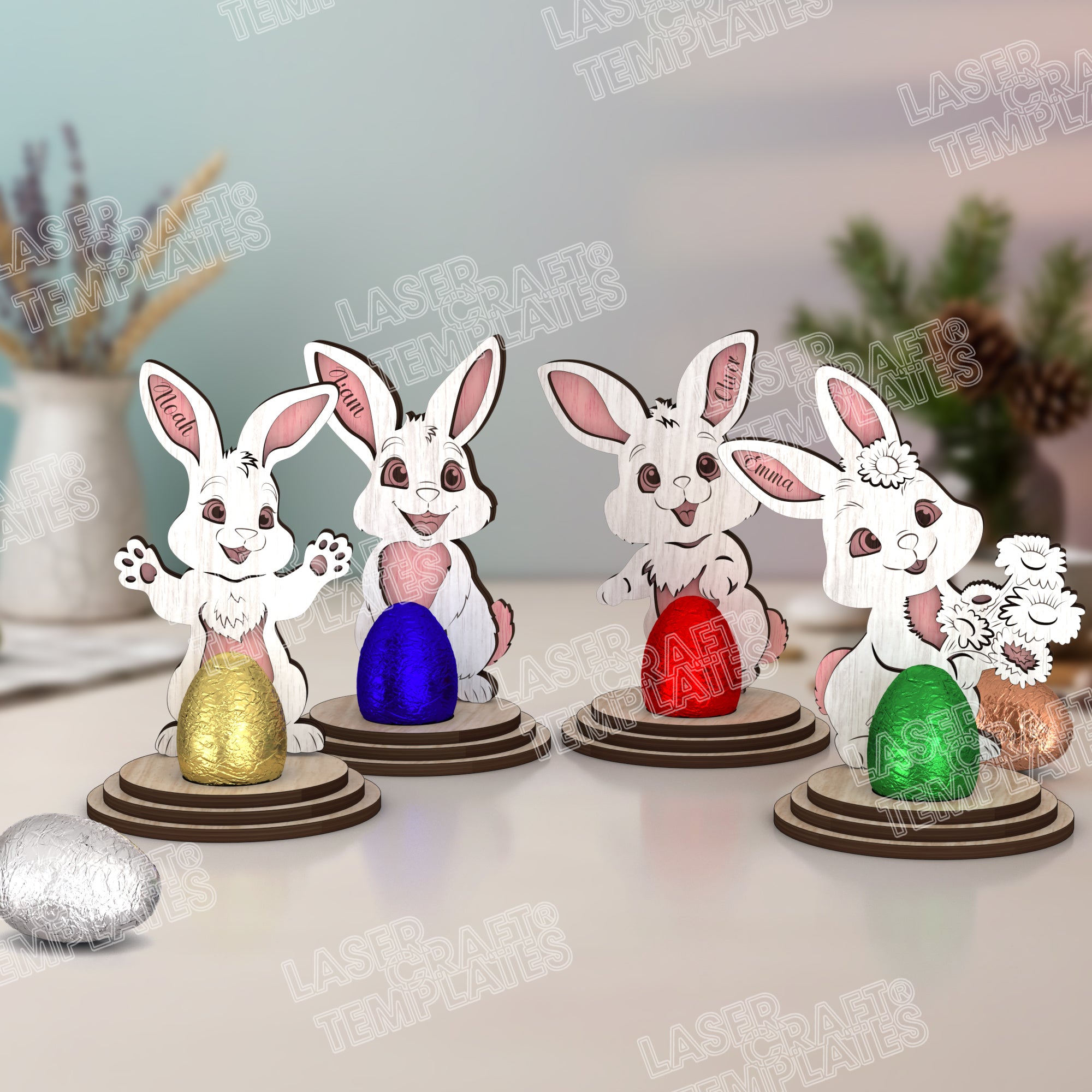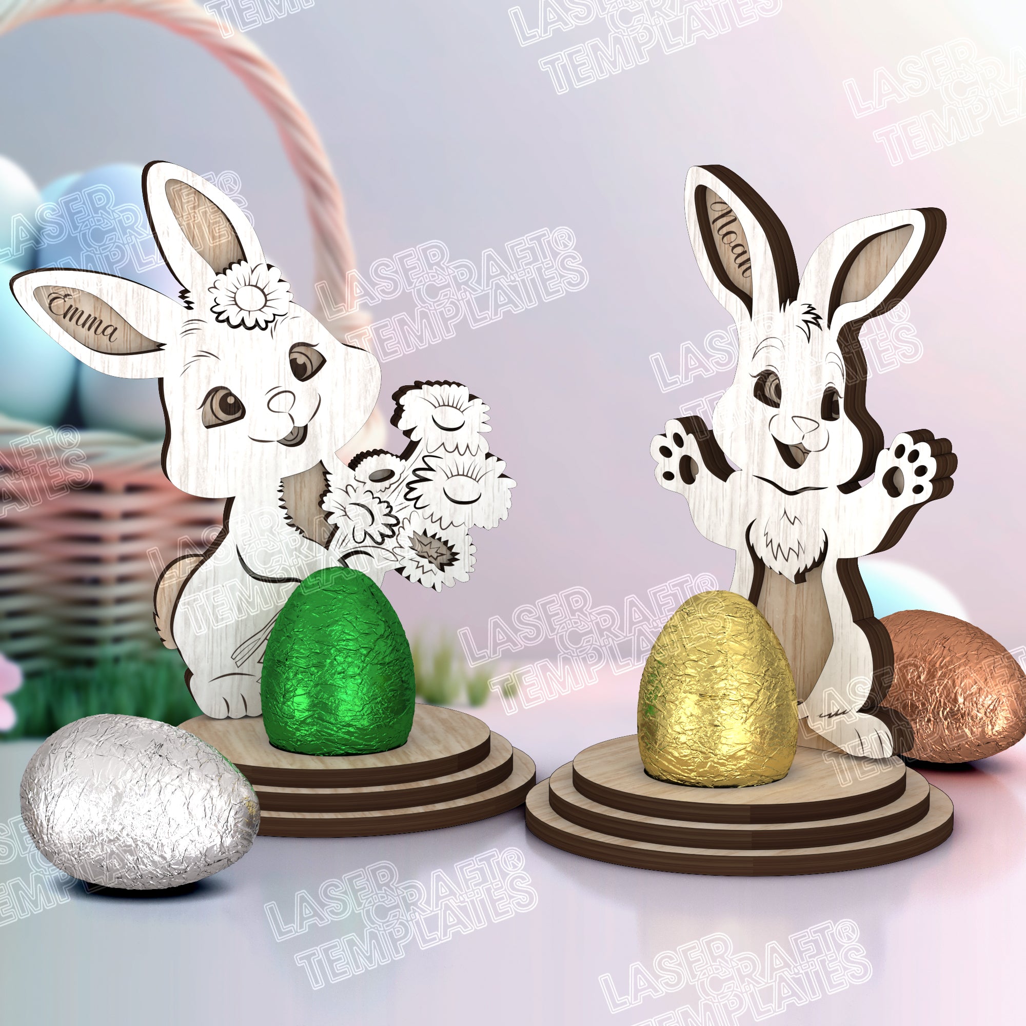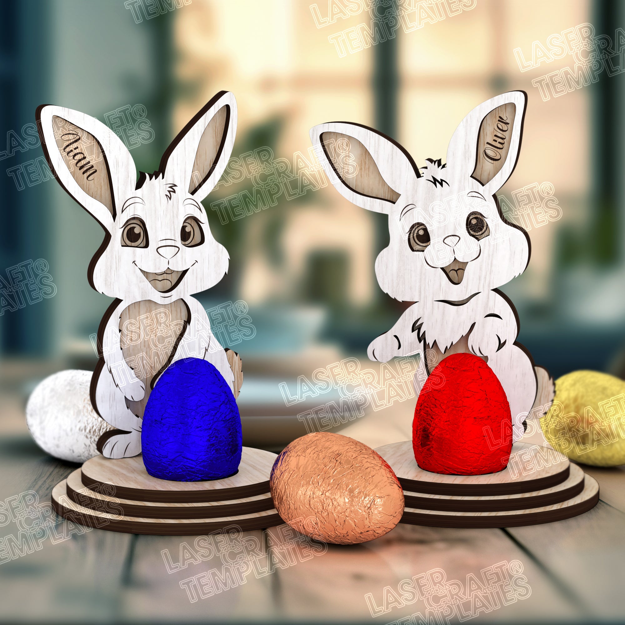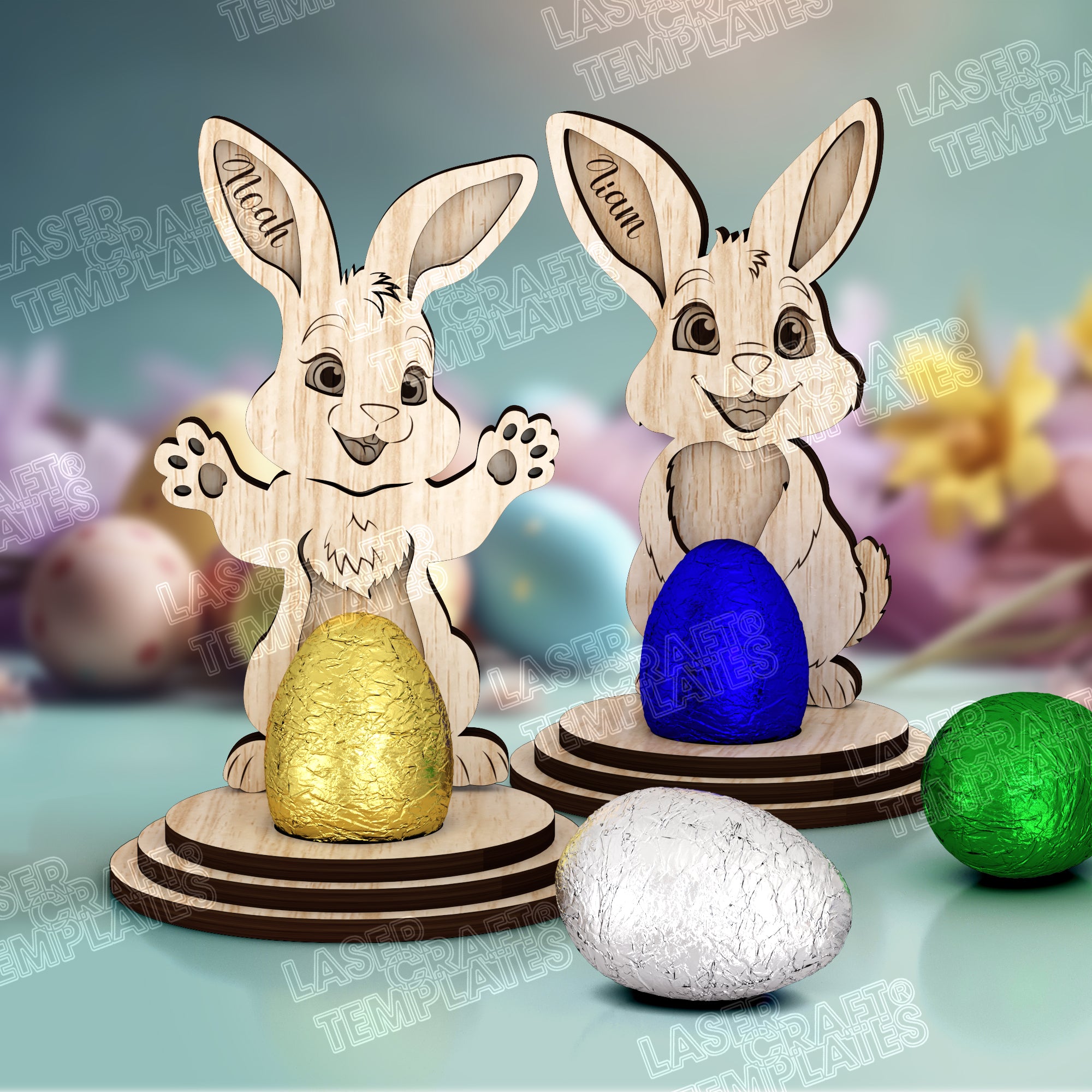 Fichier svg découpé au laser de décor multicouche de lapin de Pâques