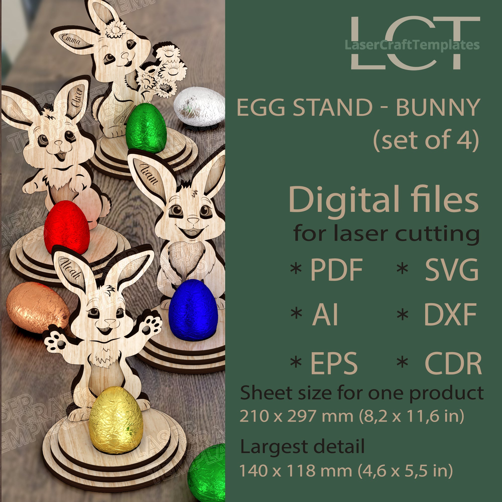 Vous recevrez les formats SVG, DXF, AI, EPS, CDR et PDF, compatibles avec la majorité des logiciels de découpe laser.