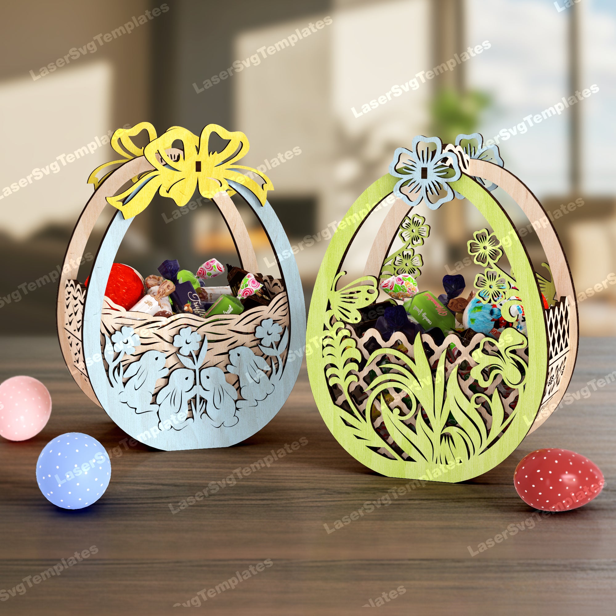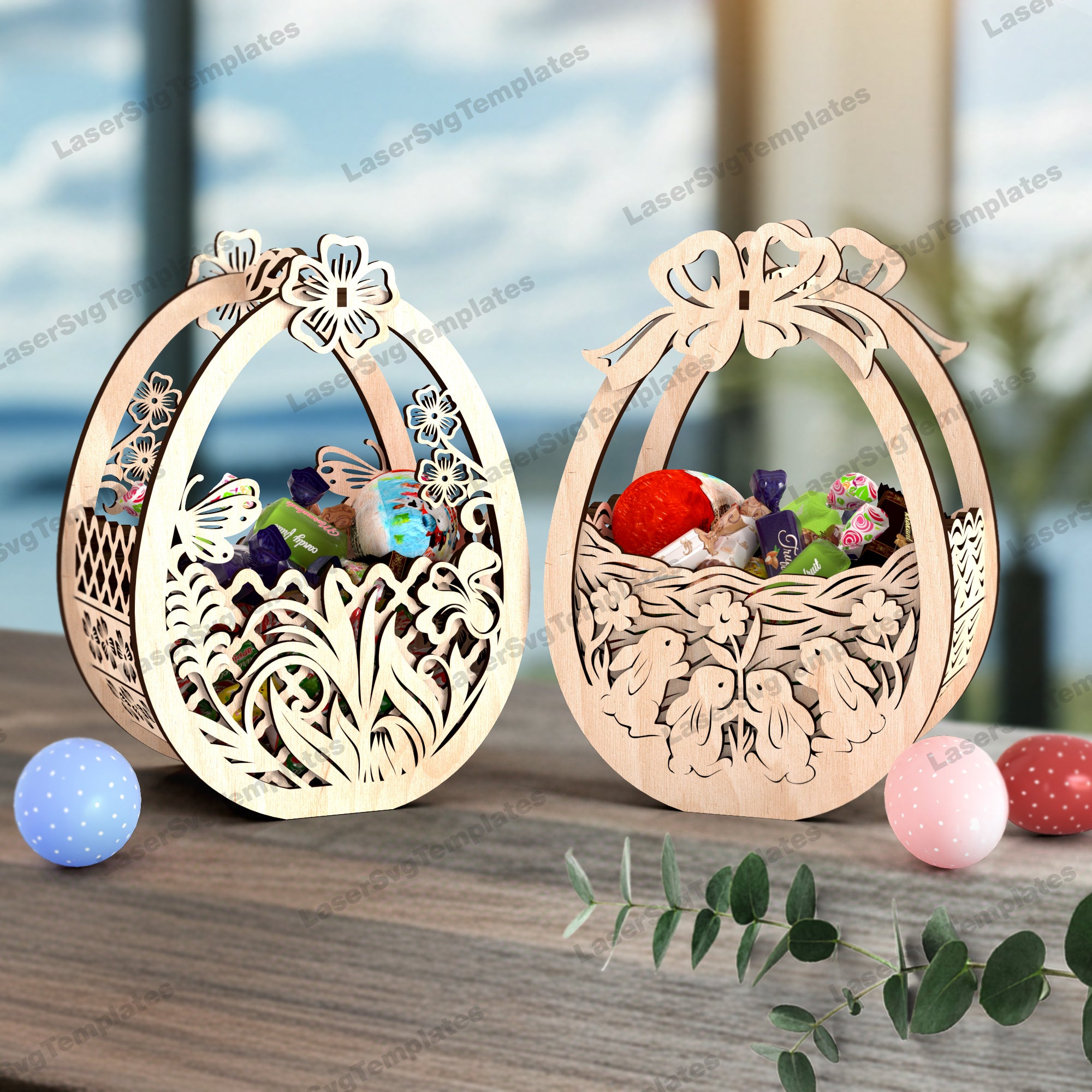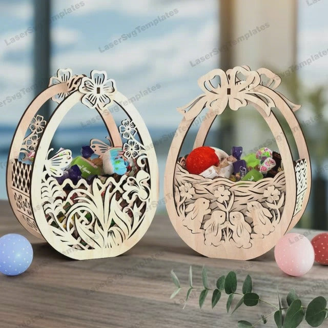 Panier d’oeufs de lapin de Pâques 2 bundle fichier svg découpé au laser