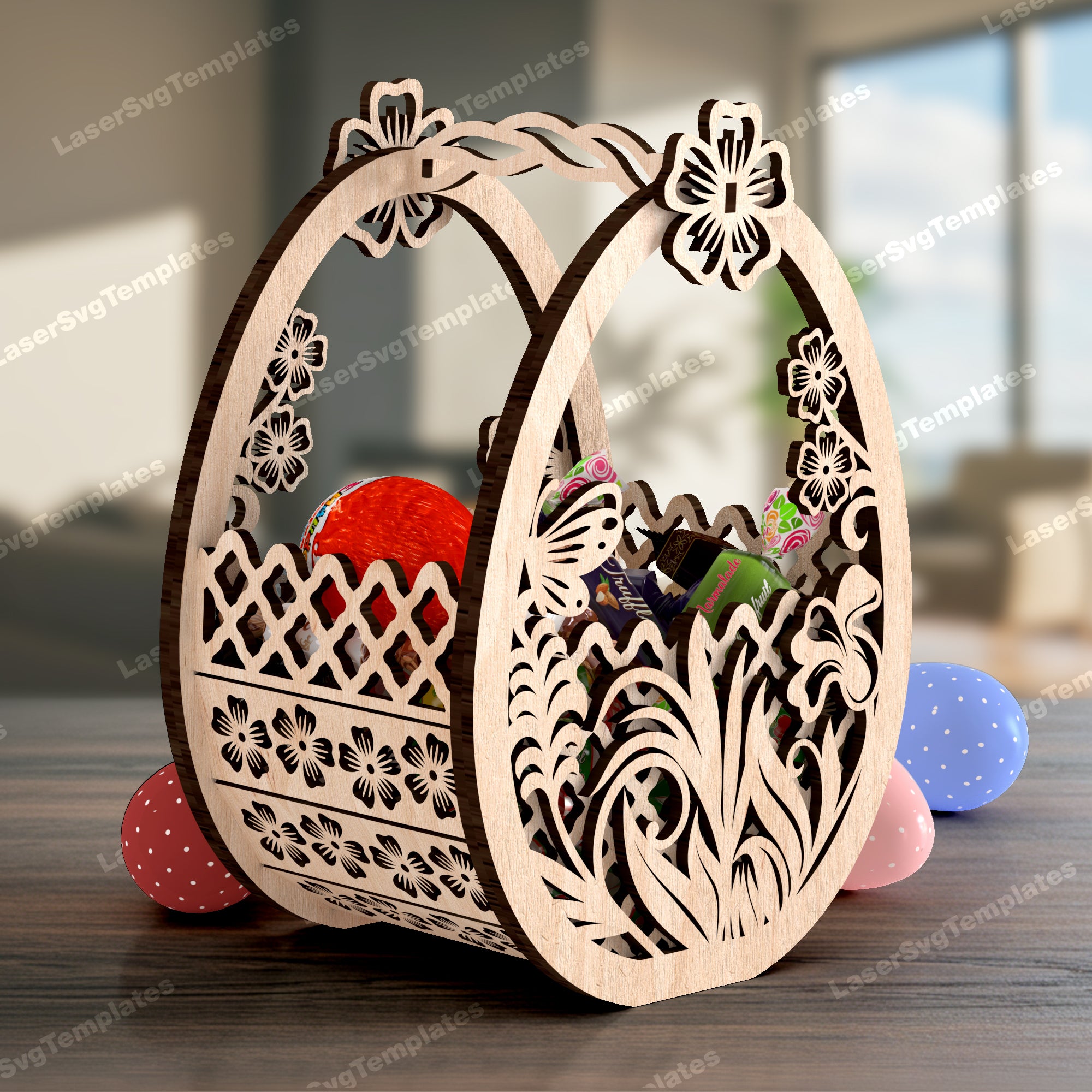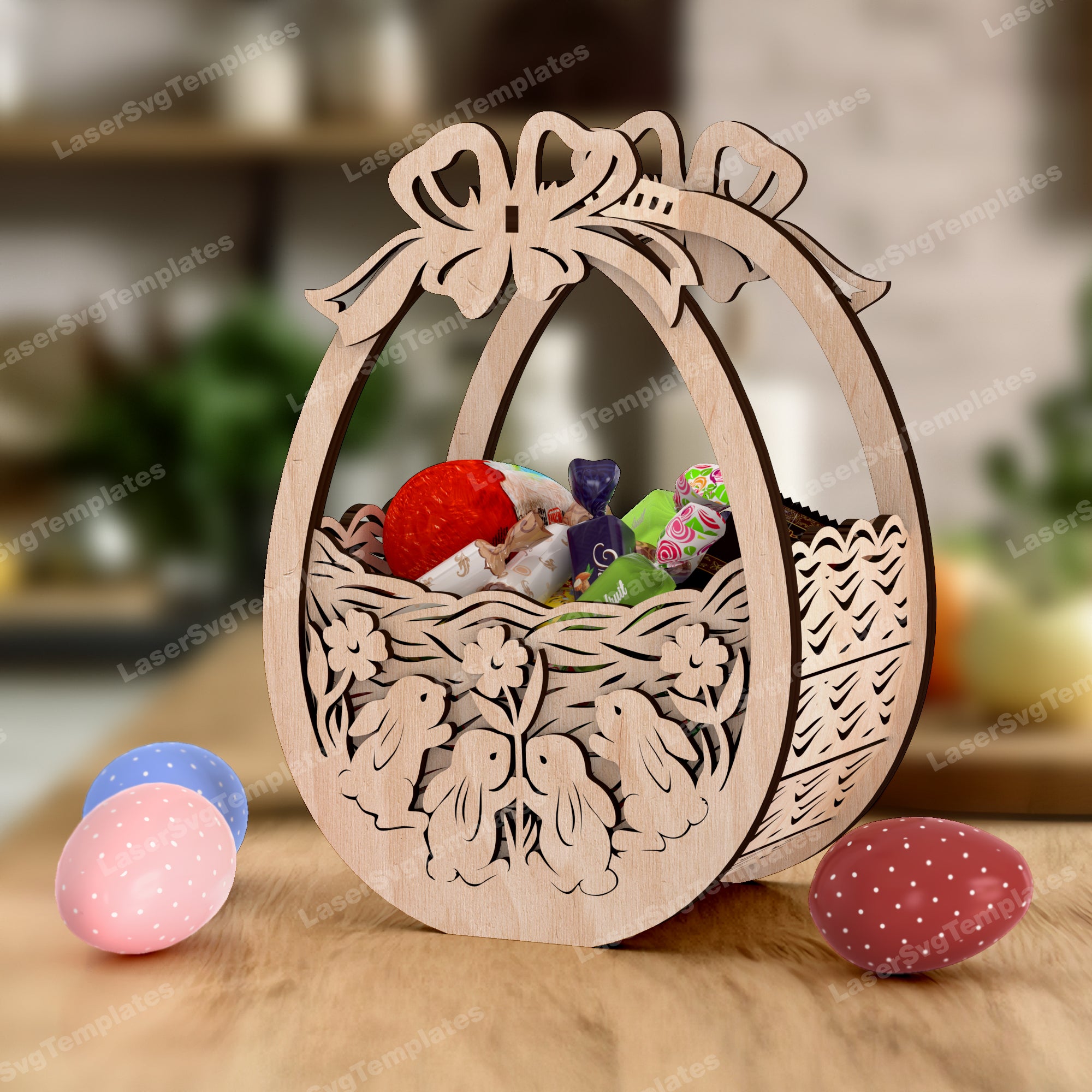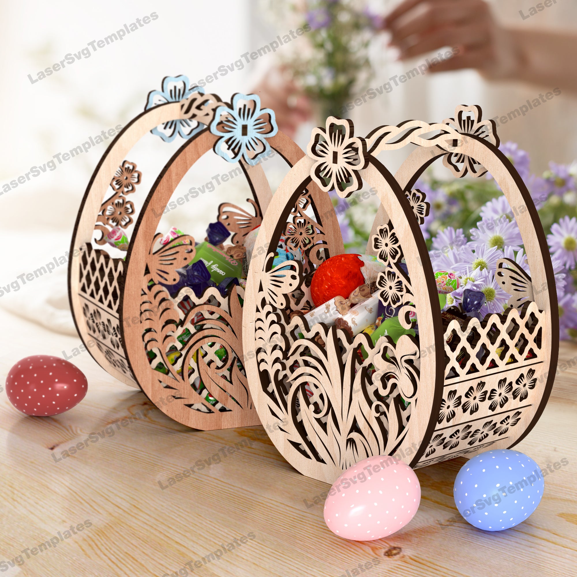 Panier d’oeufs de lapin de Pâques 2 bundle fichier svg découpé au laser