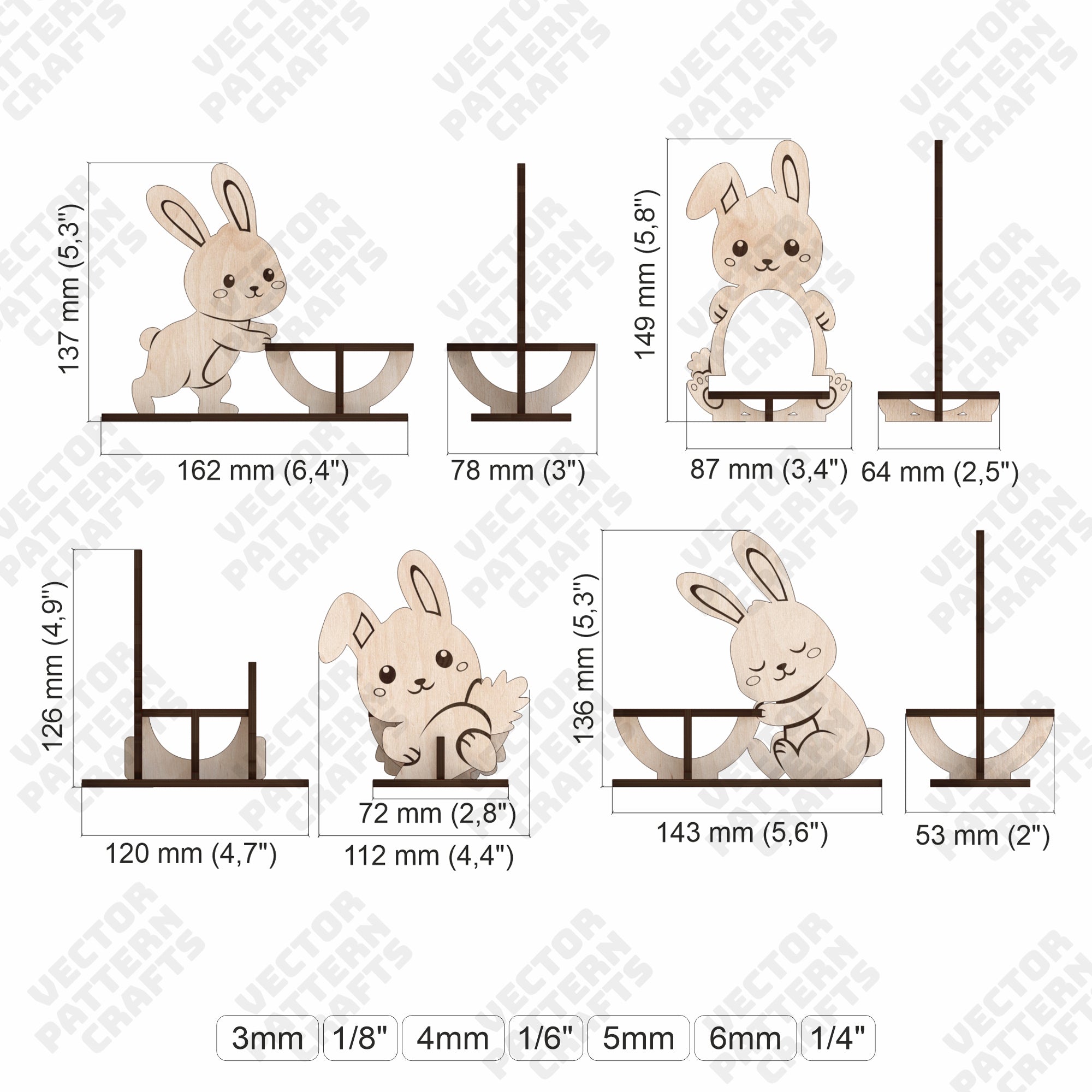 Porte-oeufs de lapin de Pâques 4 bundle fichier découpé au laser svg