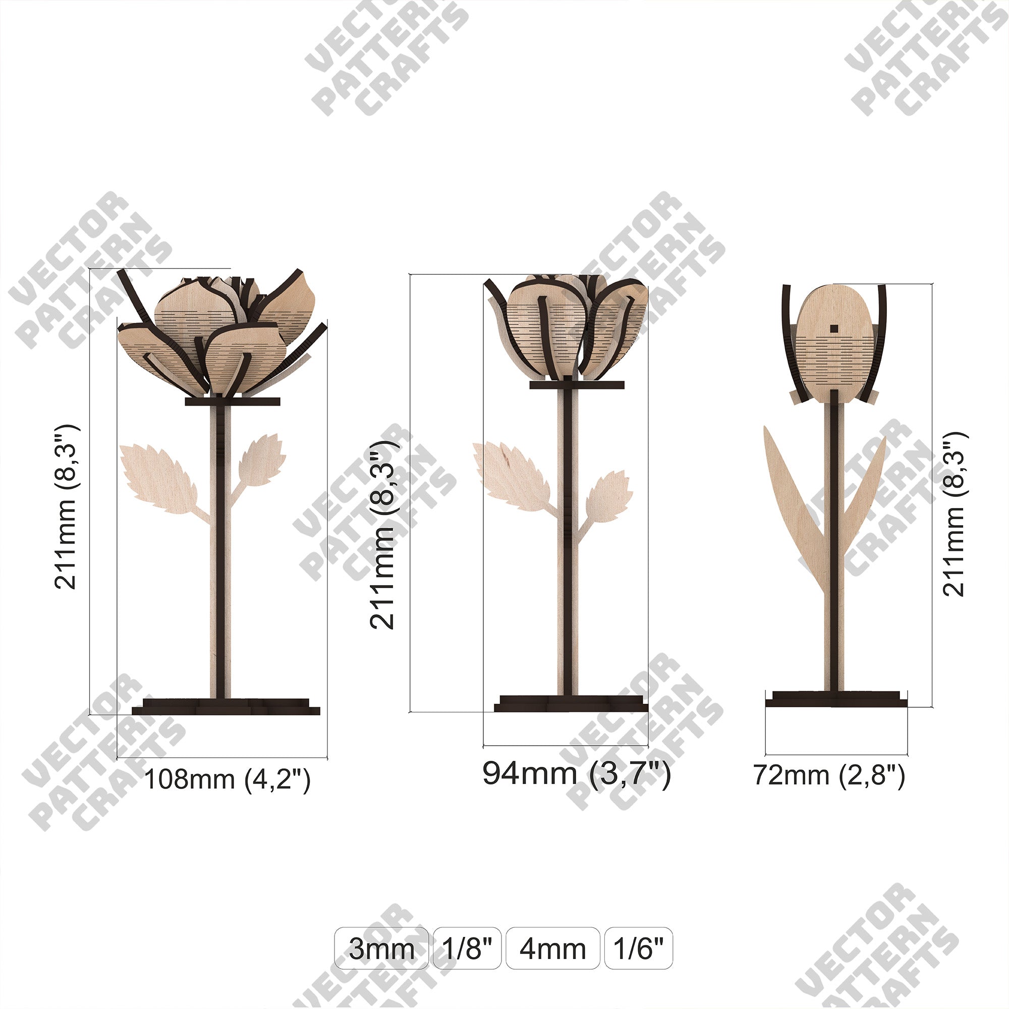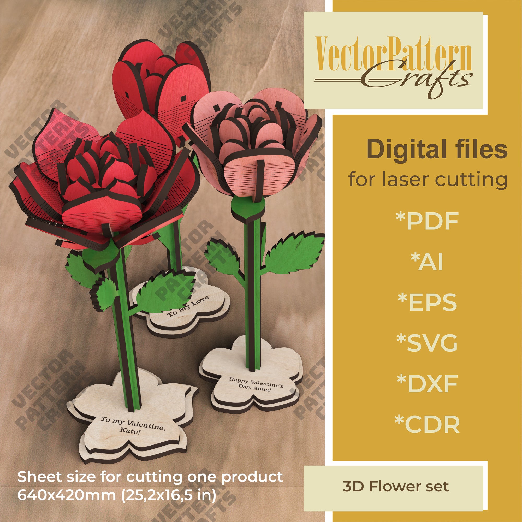 Vous recevrez les formats SVG, DXF, AI, EPS, CDR et PDF, compatibles avec la majorité des logiciels de découpe laser.