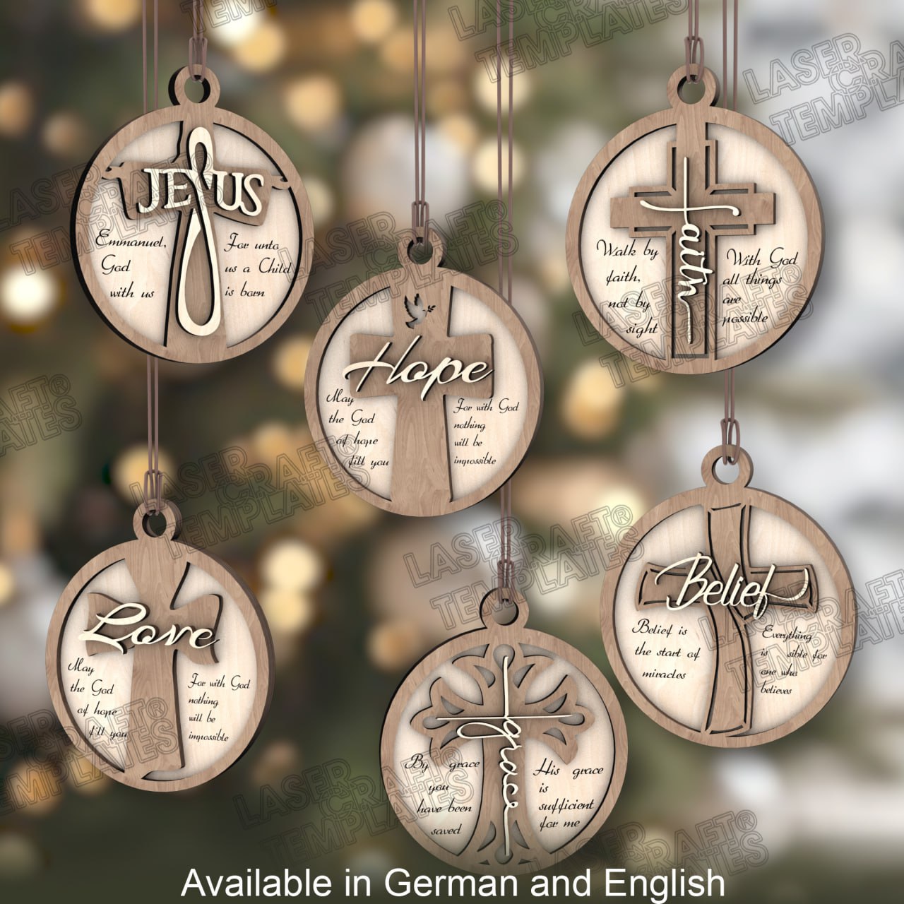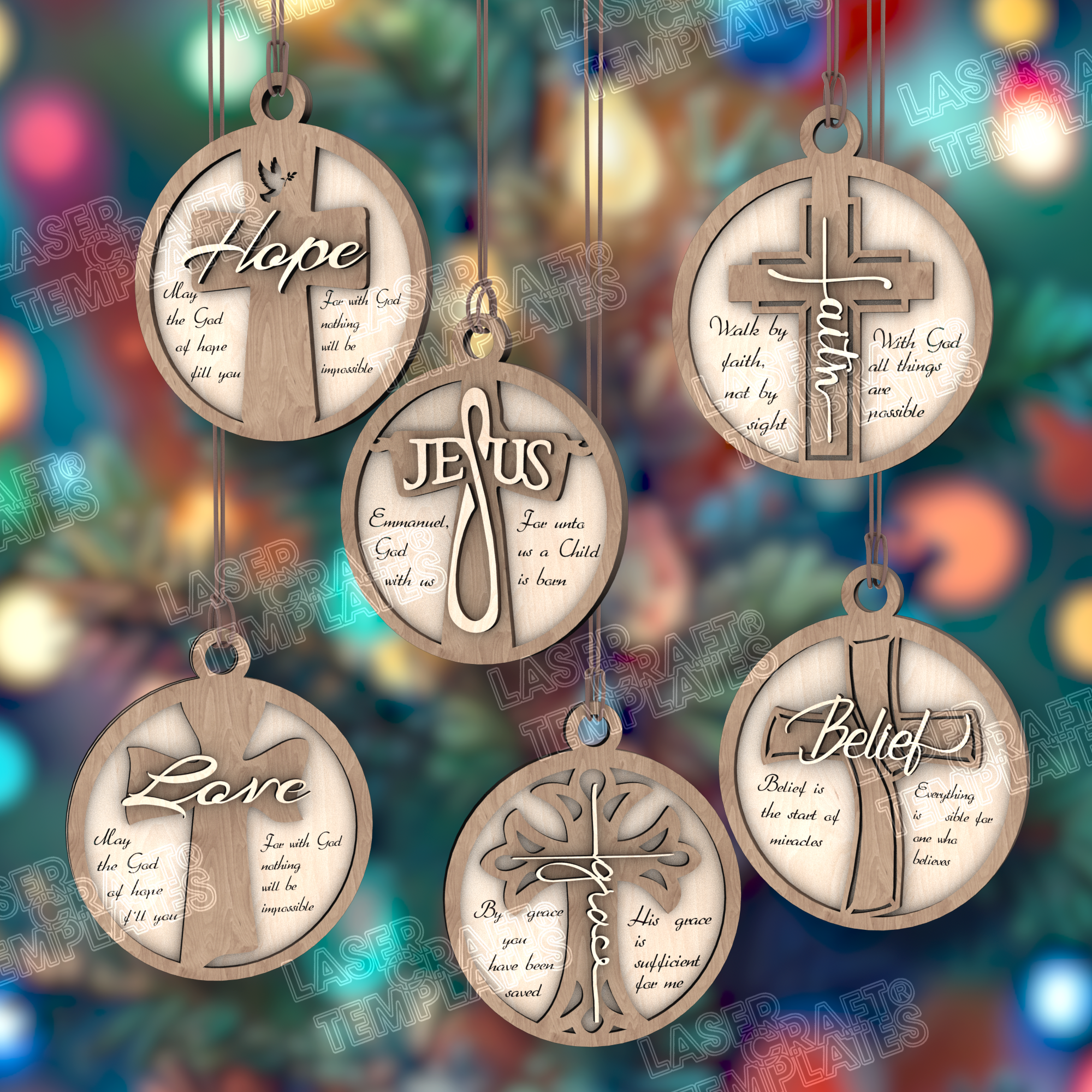 🔹 Nativity cross round ornaments 6 bundle laser cut svg file