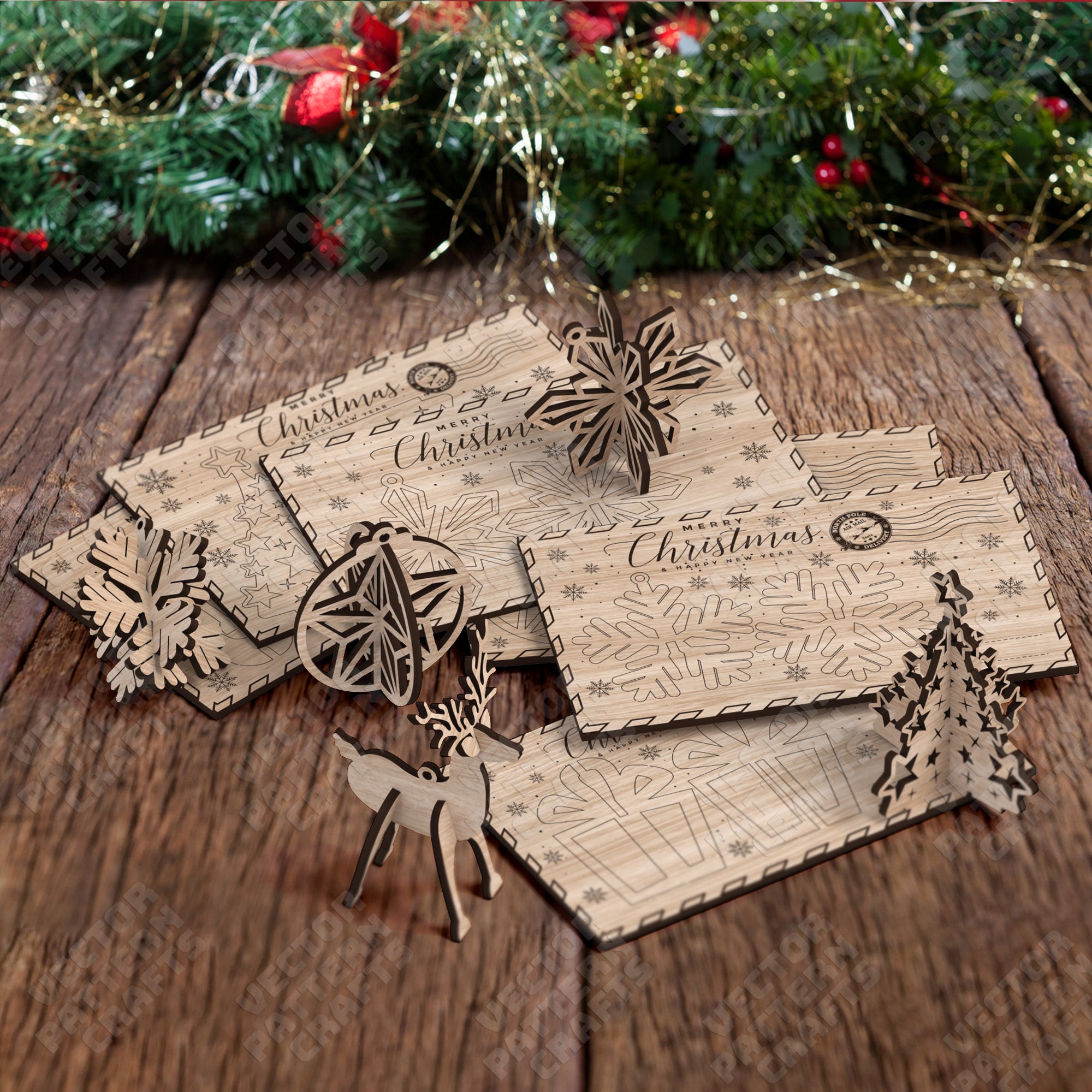 Christmas gift cards ornaments bundle laser cut svg file