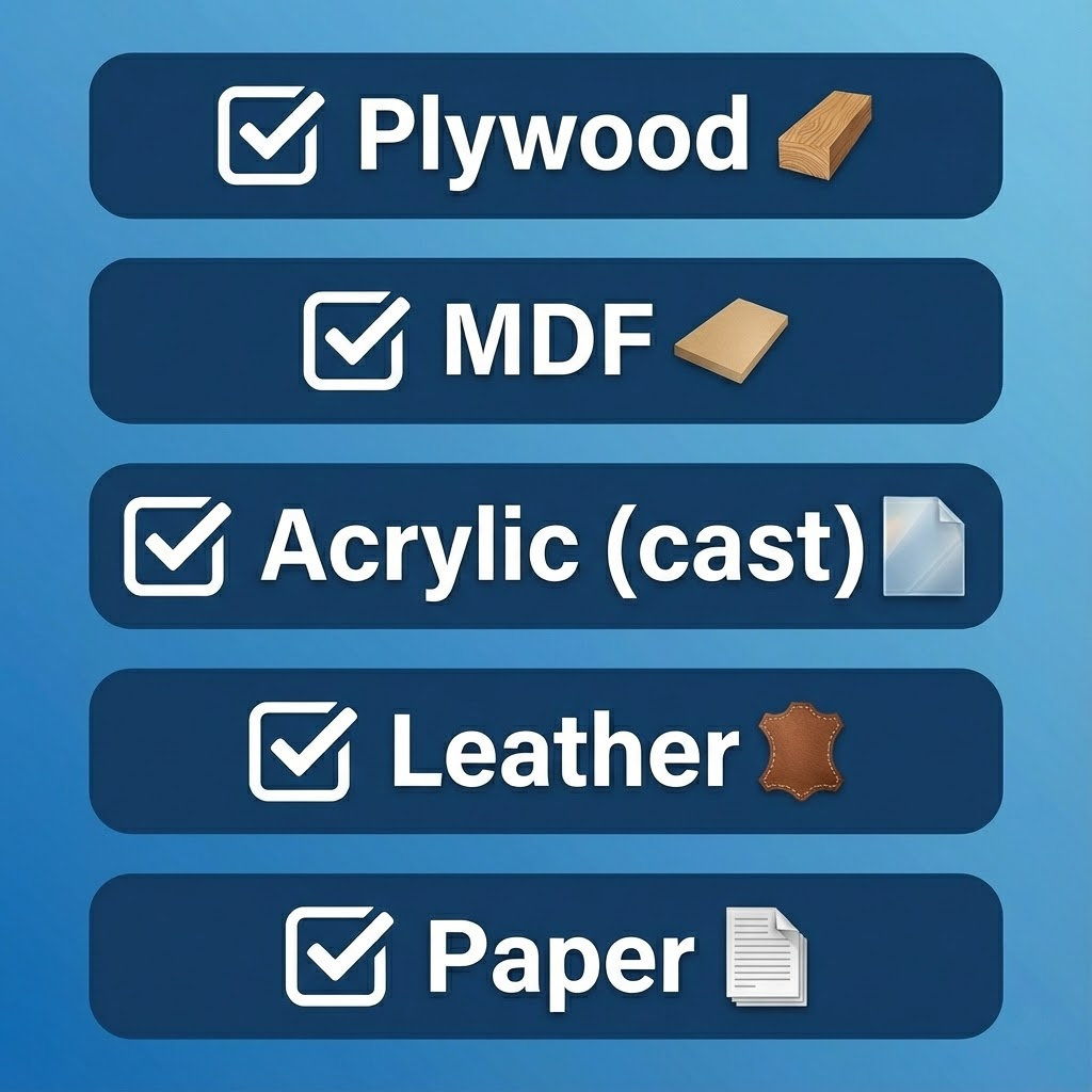 🛠 Compatible avec les lasers CO₂ et diode (Glowforge, xTool, OmTech)