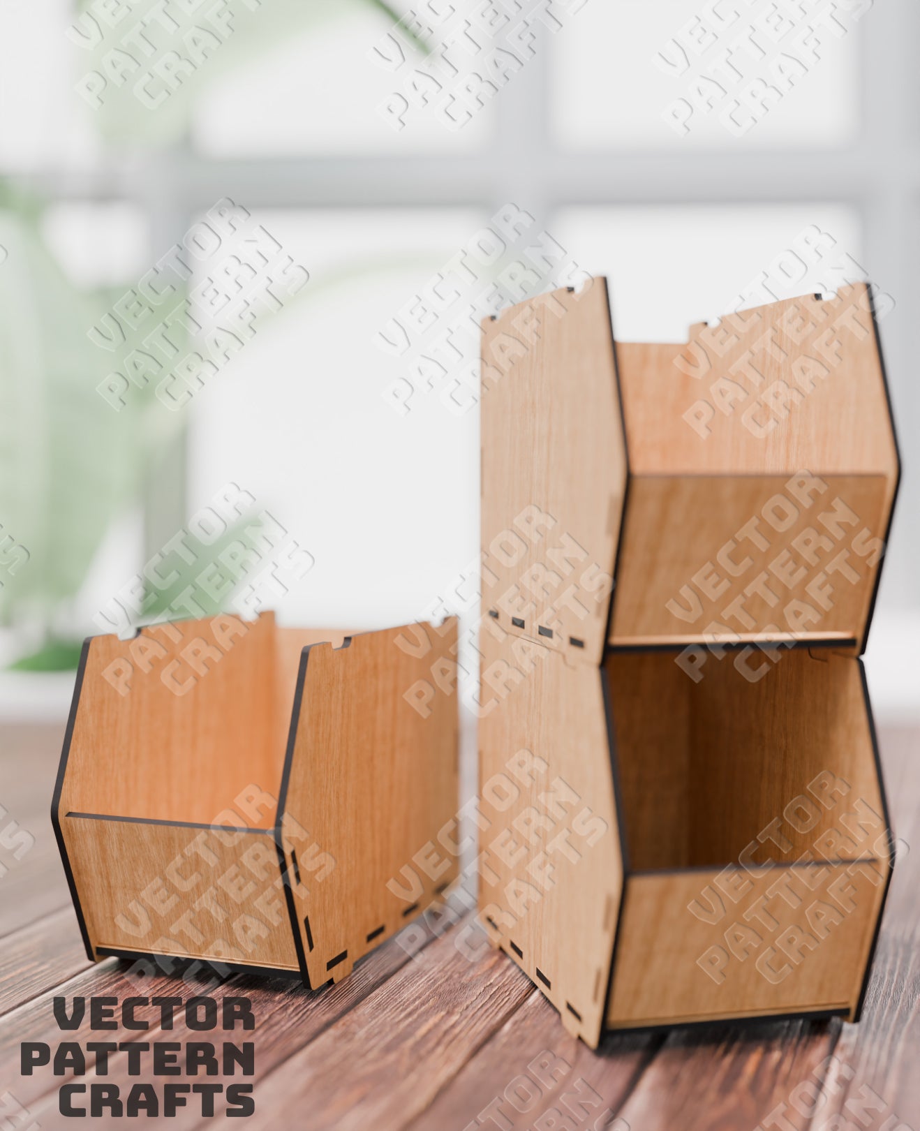Bacs de rangement empilables en bois découpés au laser fichier svg
