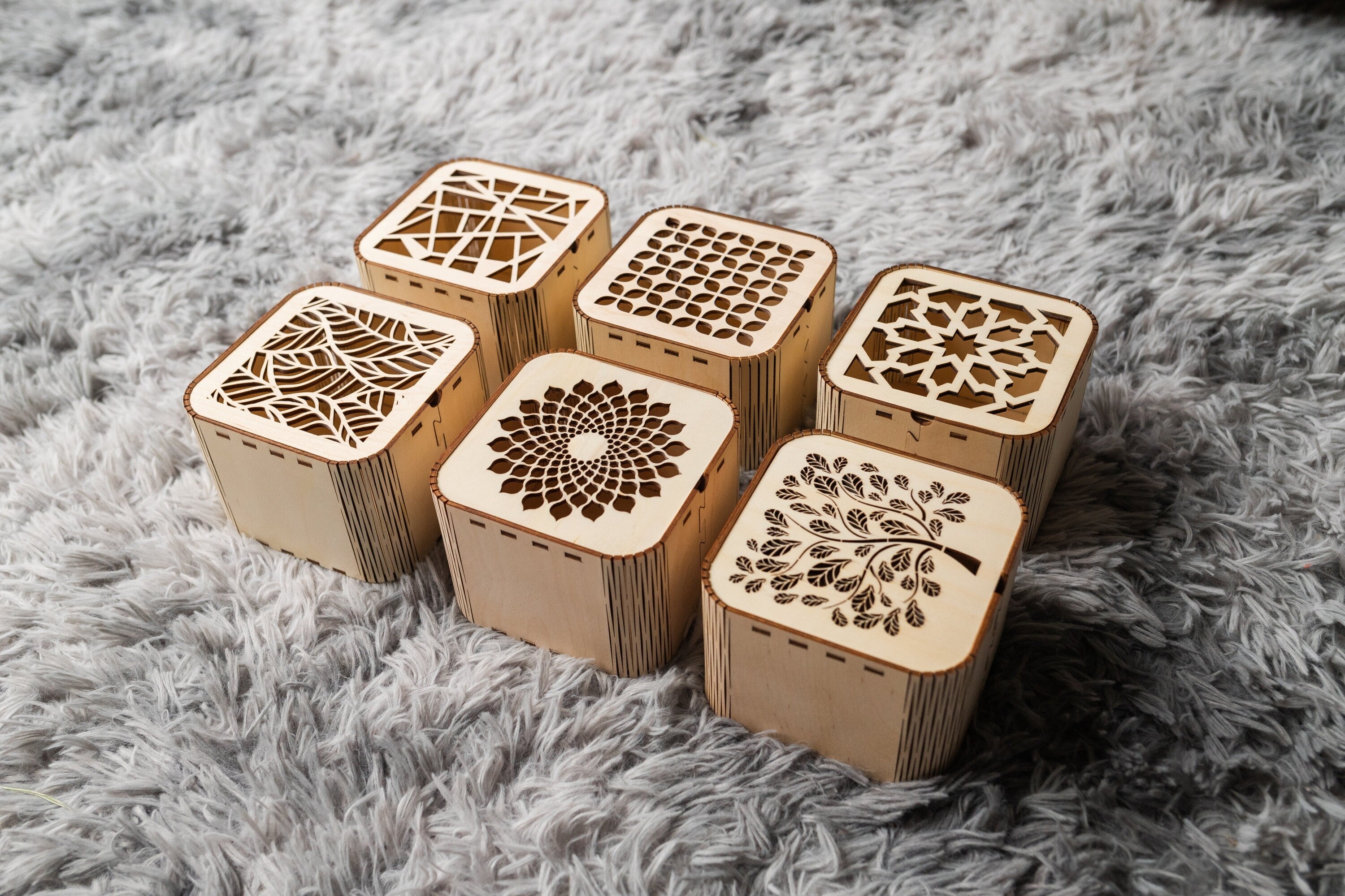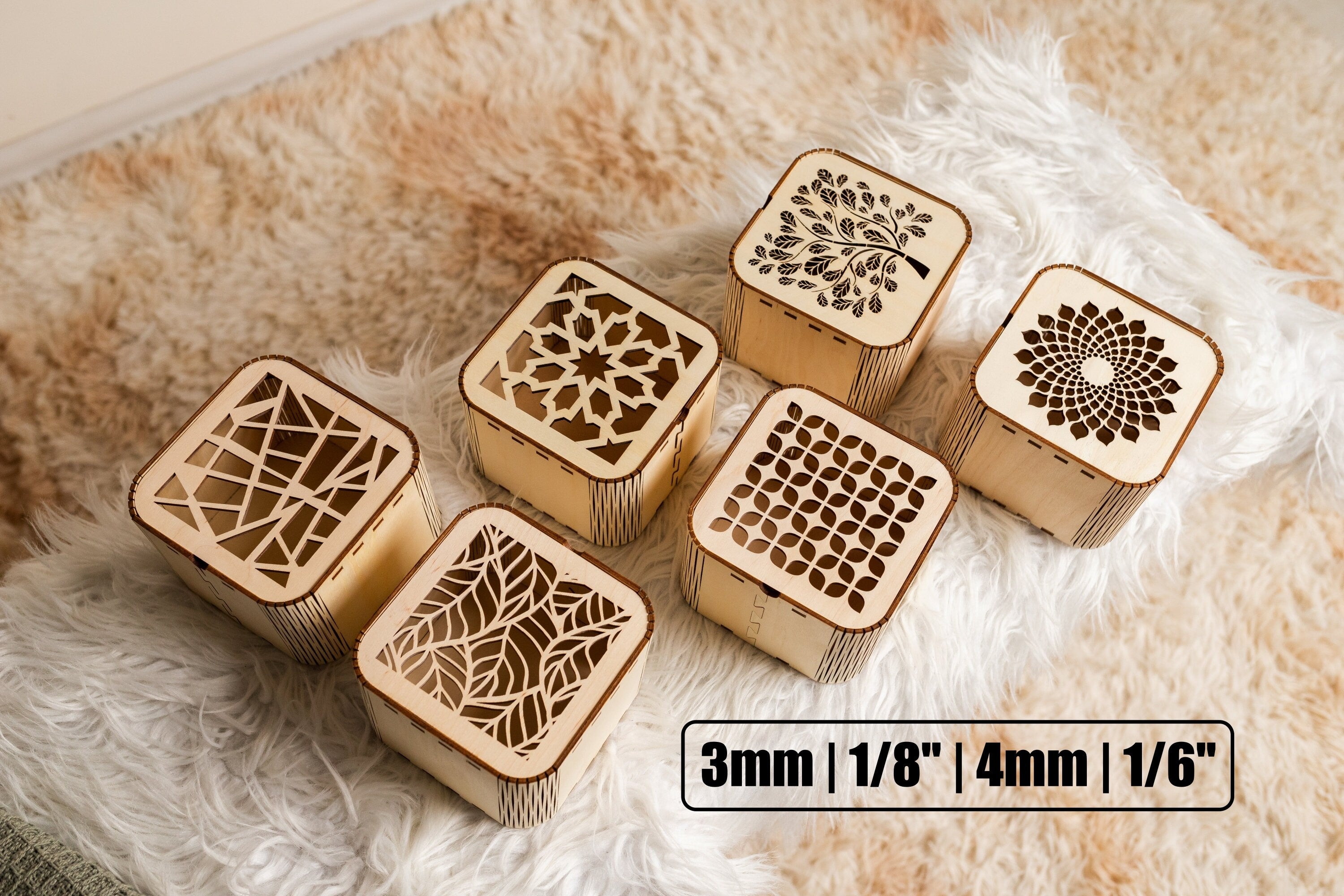 Boîte cadeau en bois décoratif 6 File de coupe laser pack SVG