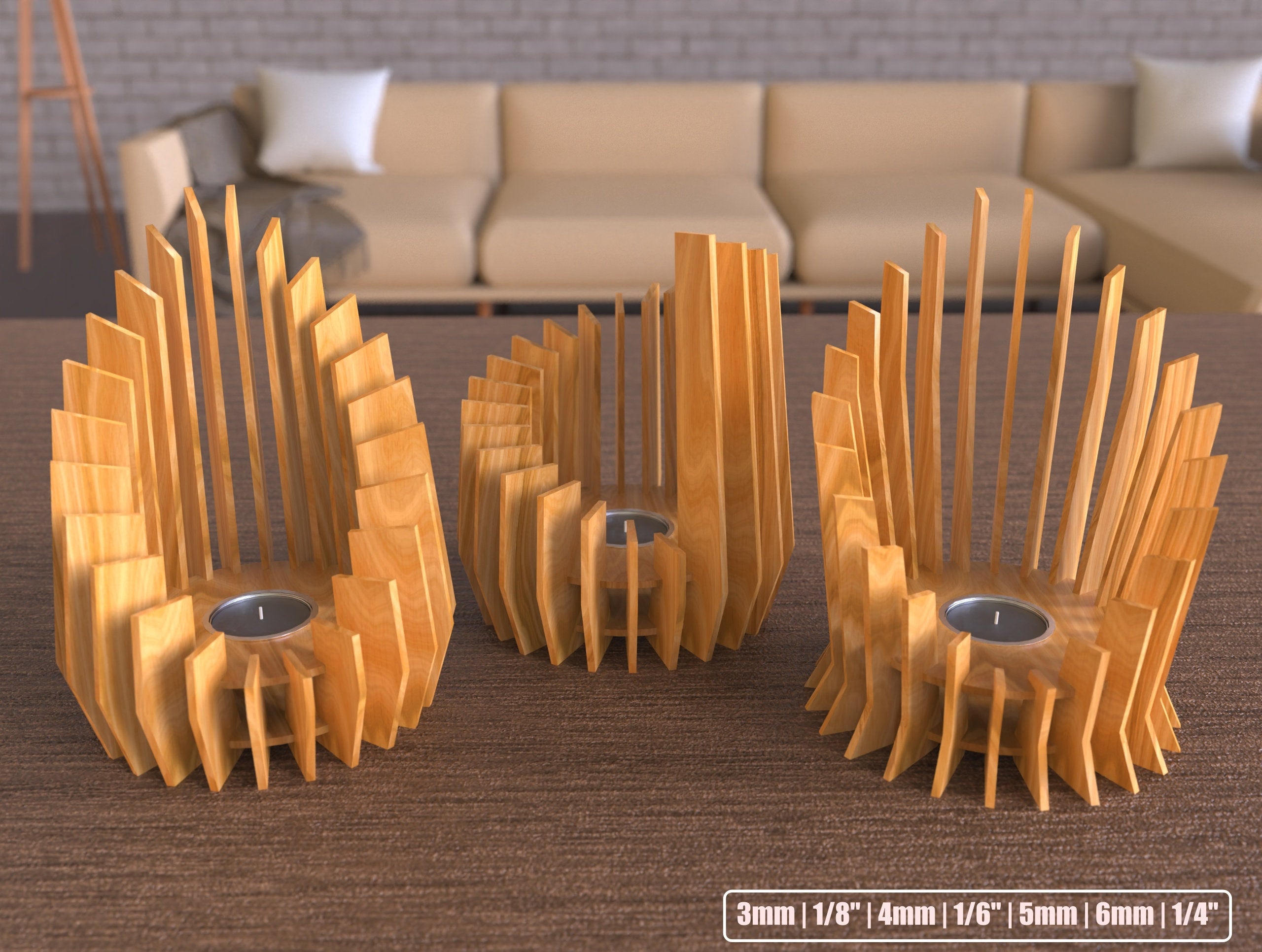 Bougeoir en bois 3 packs laser coupé SVG Fichier