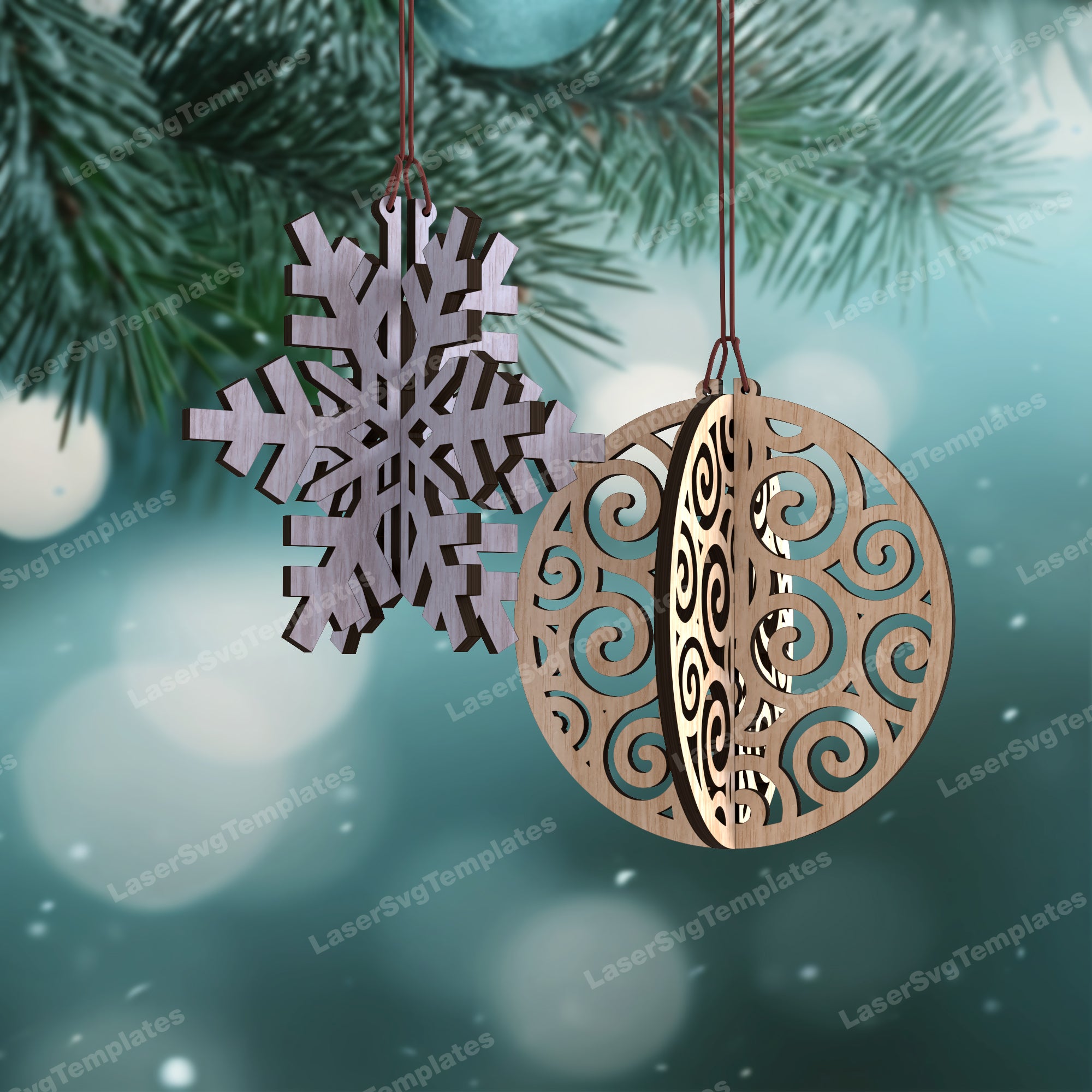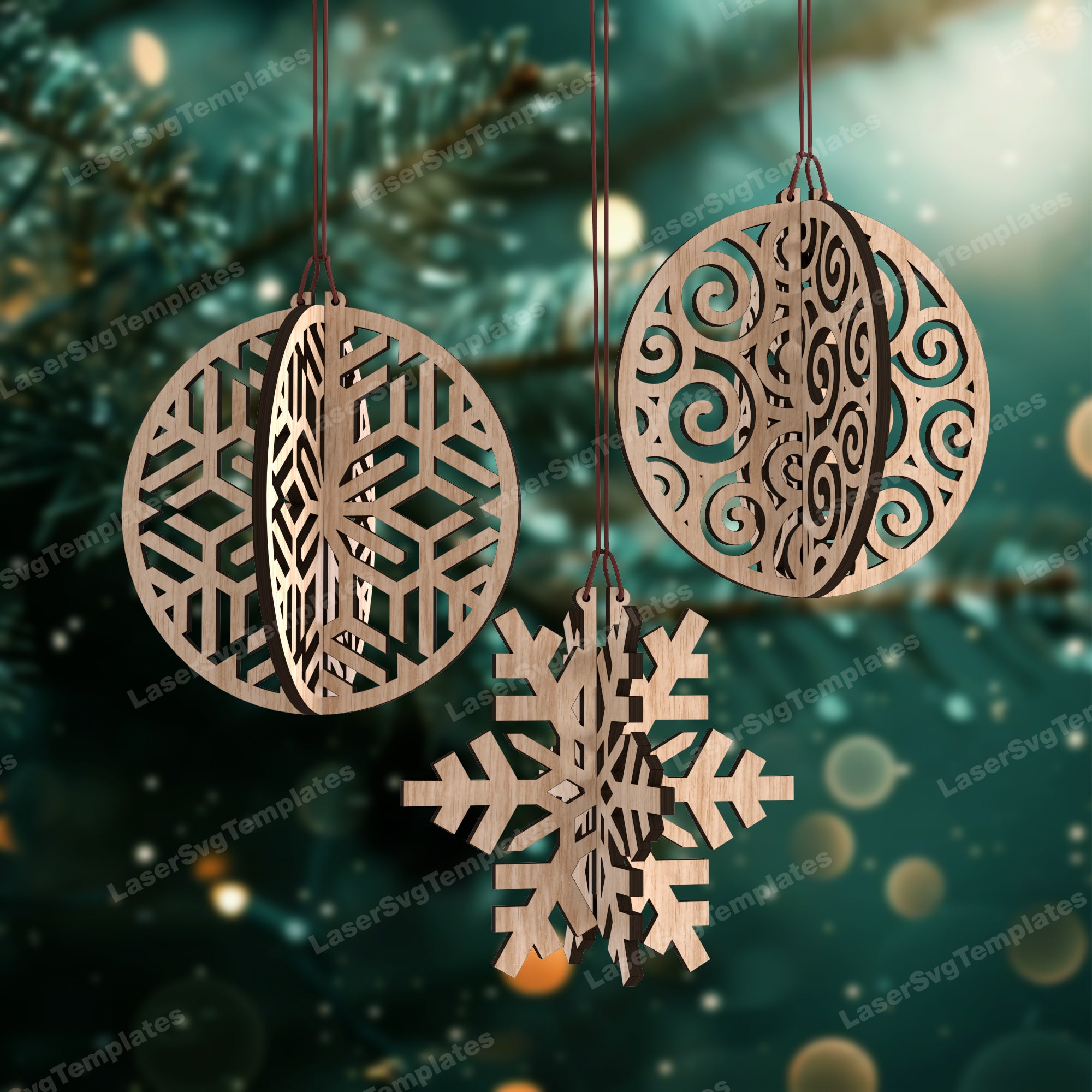 - Boules de Noël en bois décoration décoration ornements laser coupé svg modèle
