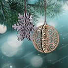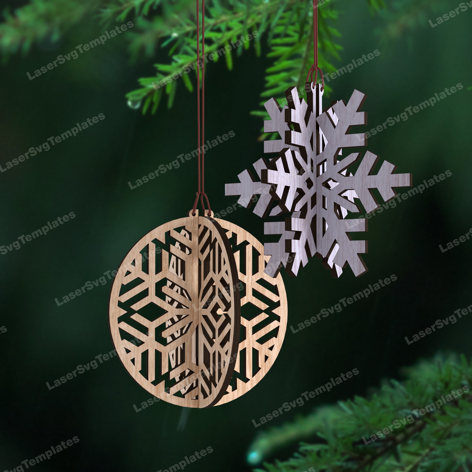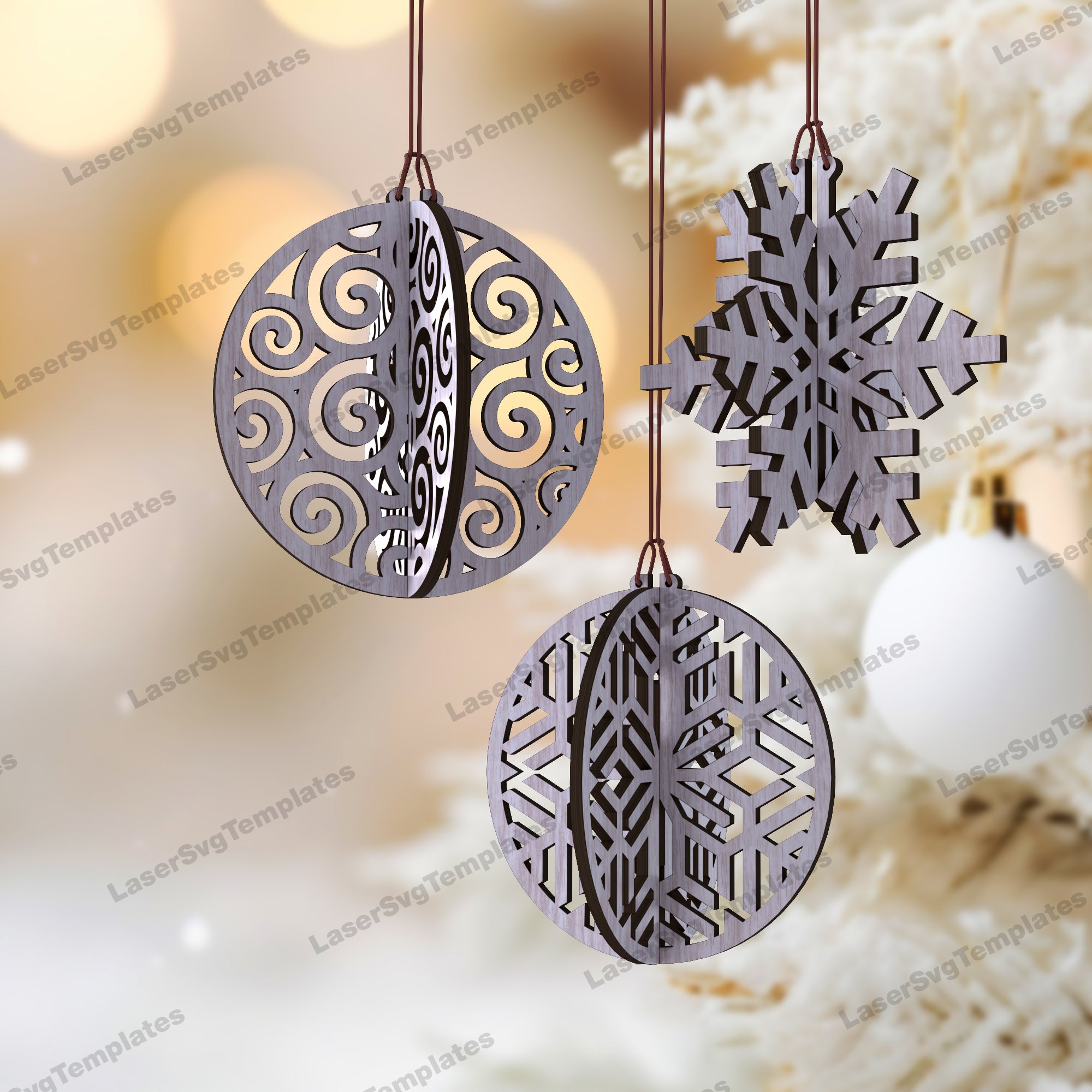 Boules de Noël en bois décoration décoration ornements laser coupé svg fichier