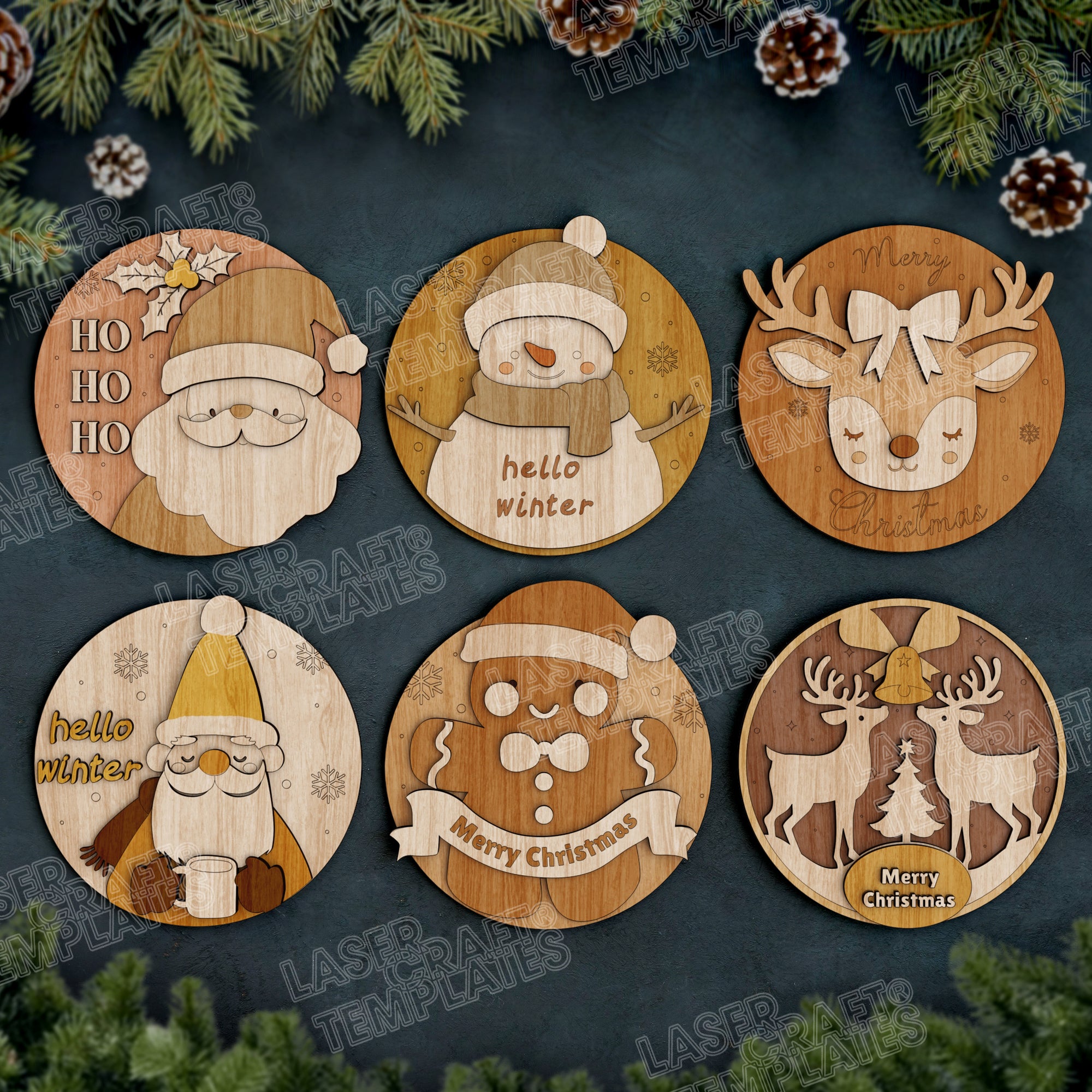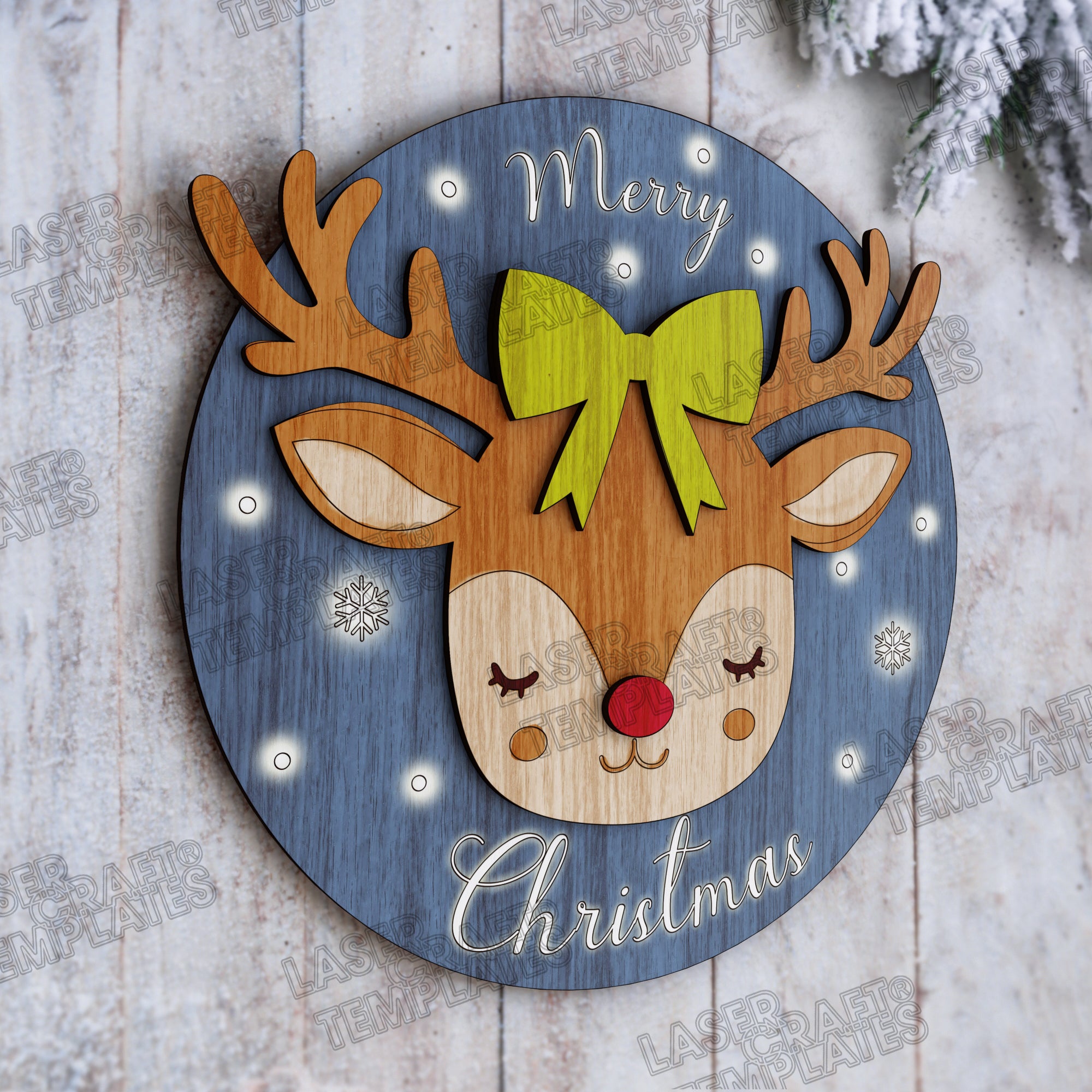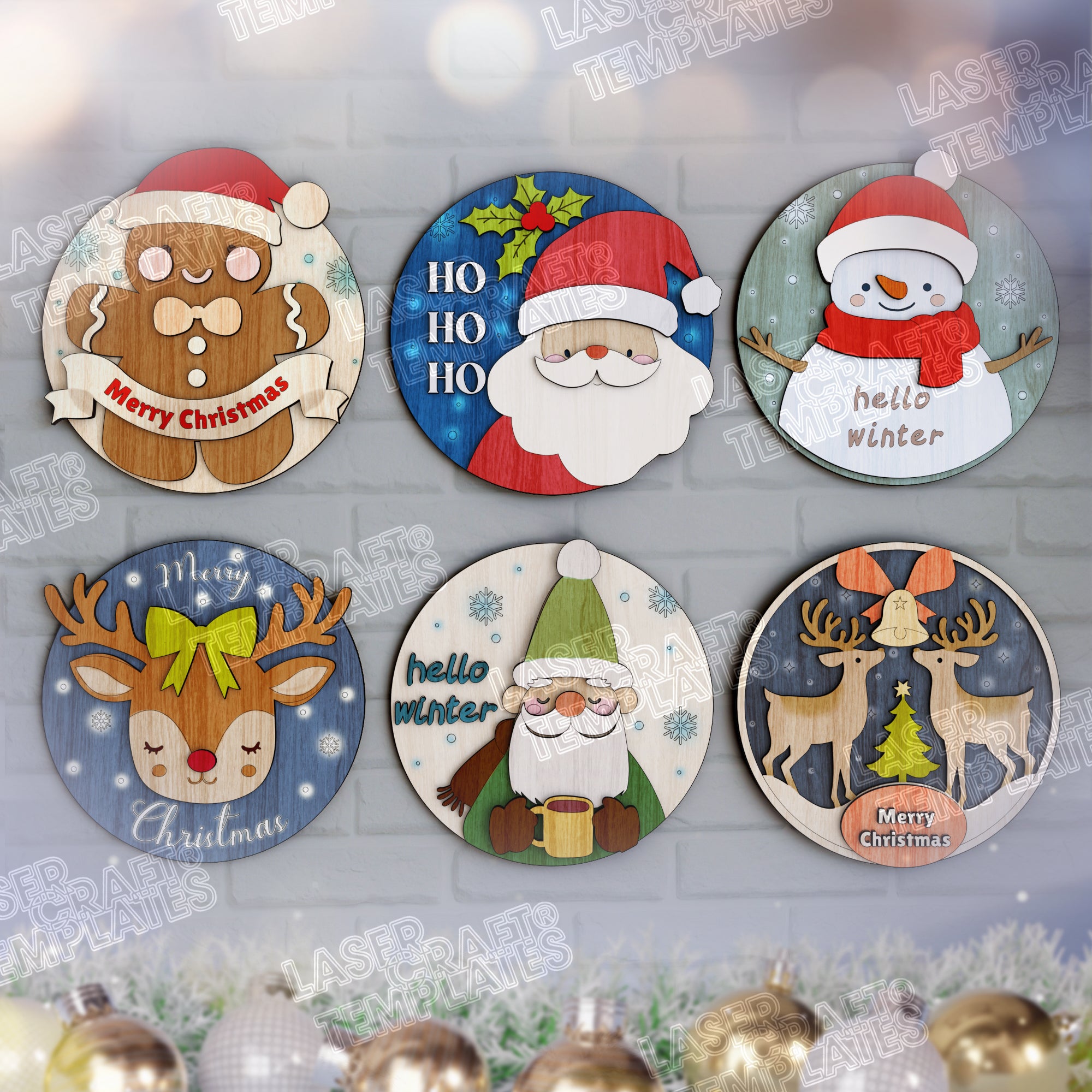 🔹 Christmas Santa Reindeer Door Sign 6 bundle laser cut svg file