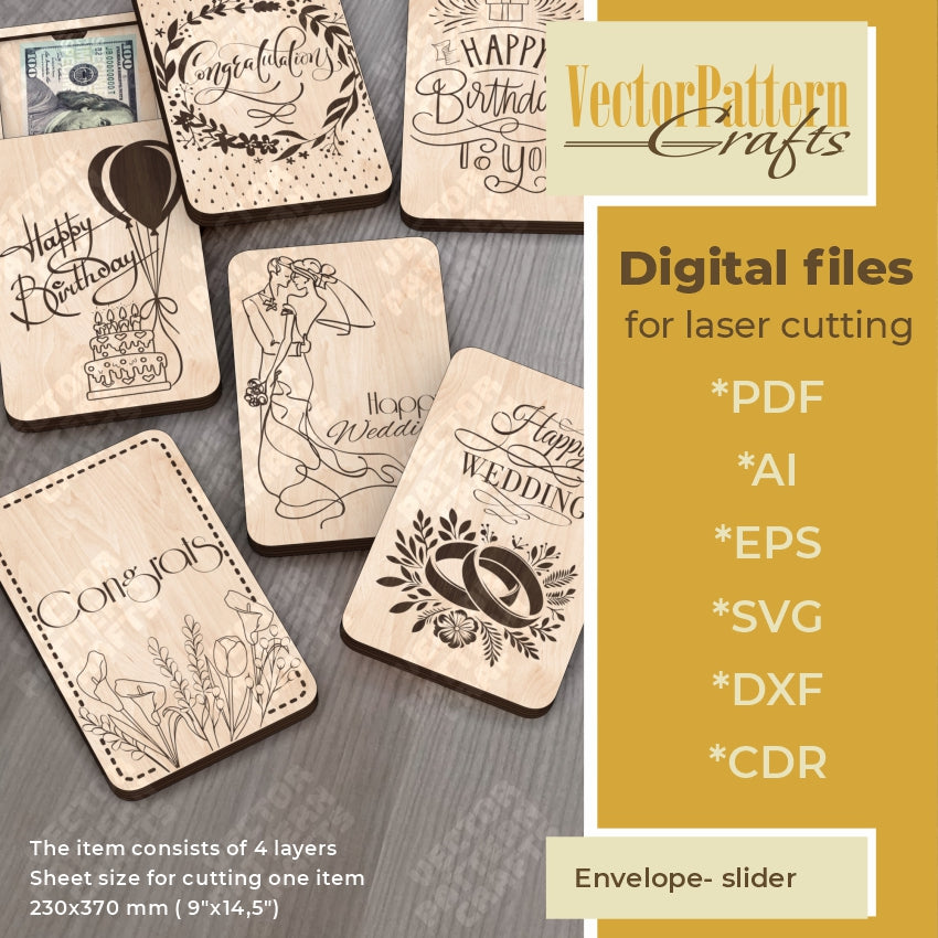 Enveloppe pour l’argent 6 fichiers svg découpés au laser