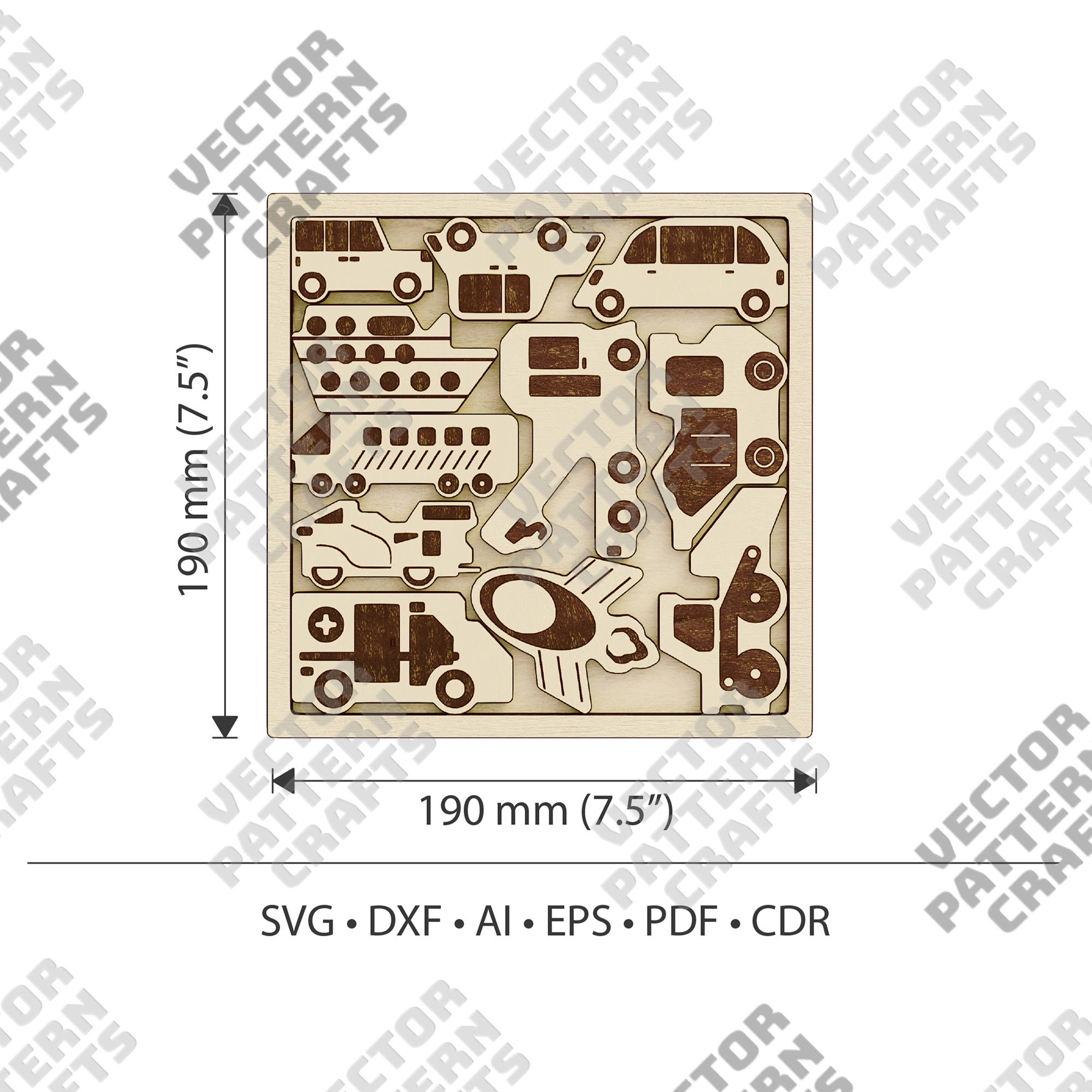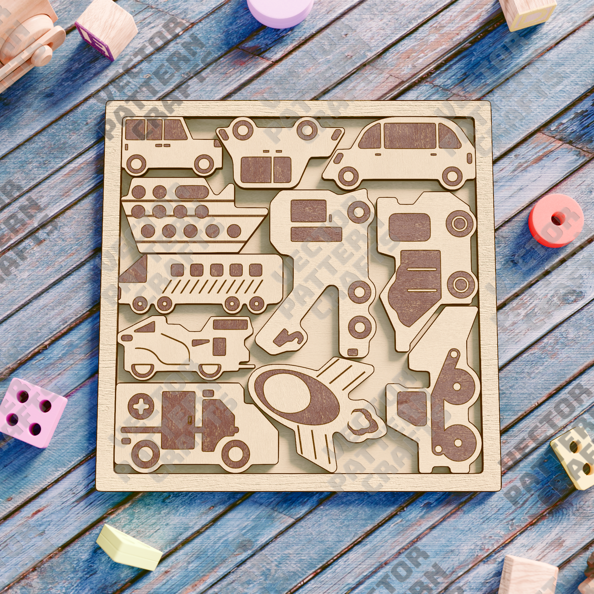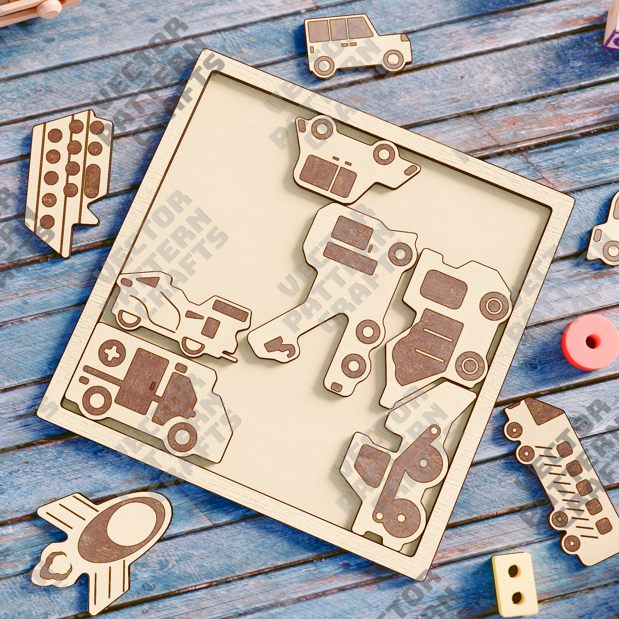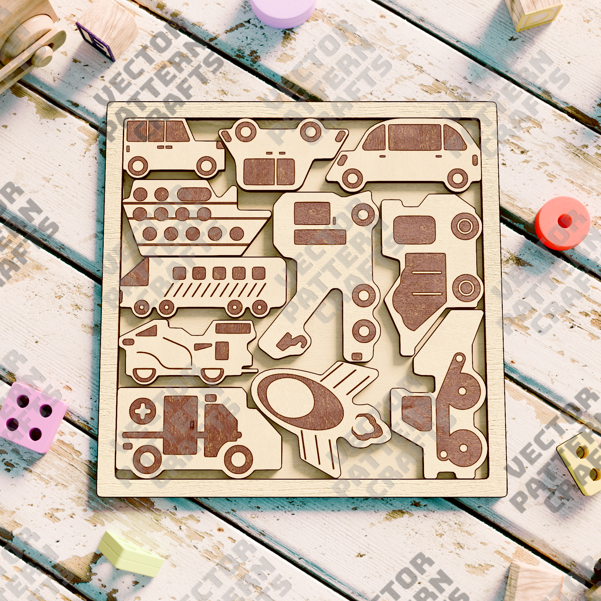 Fichier de coupe svg découpé au laser de puzzle de voitures en bois