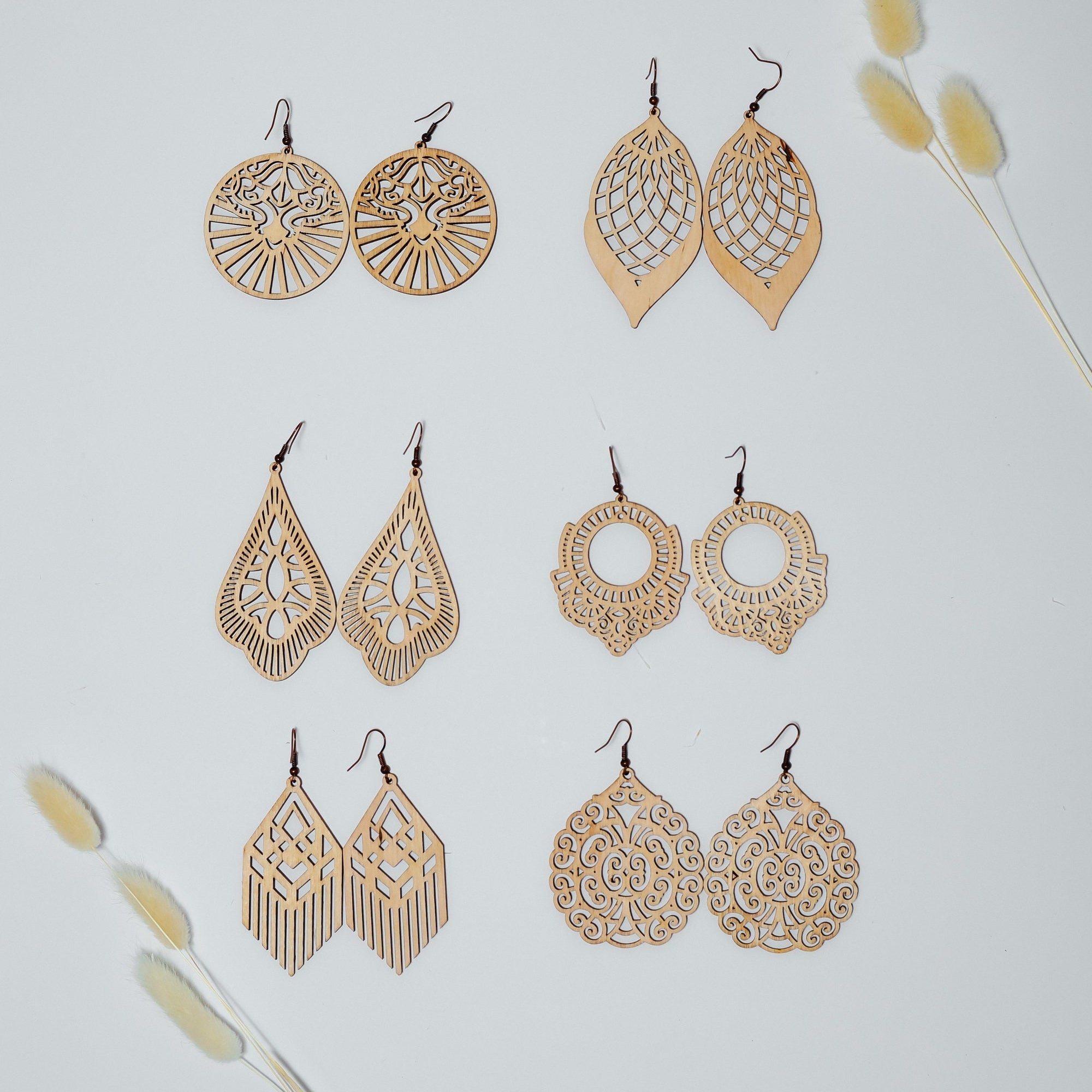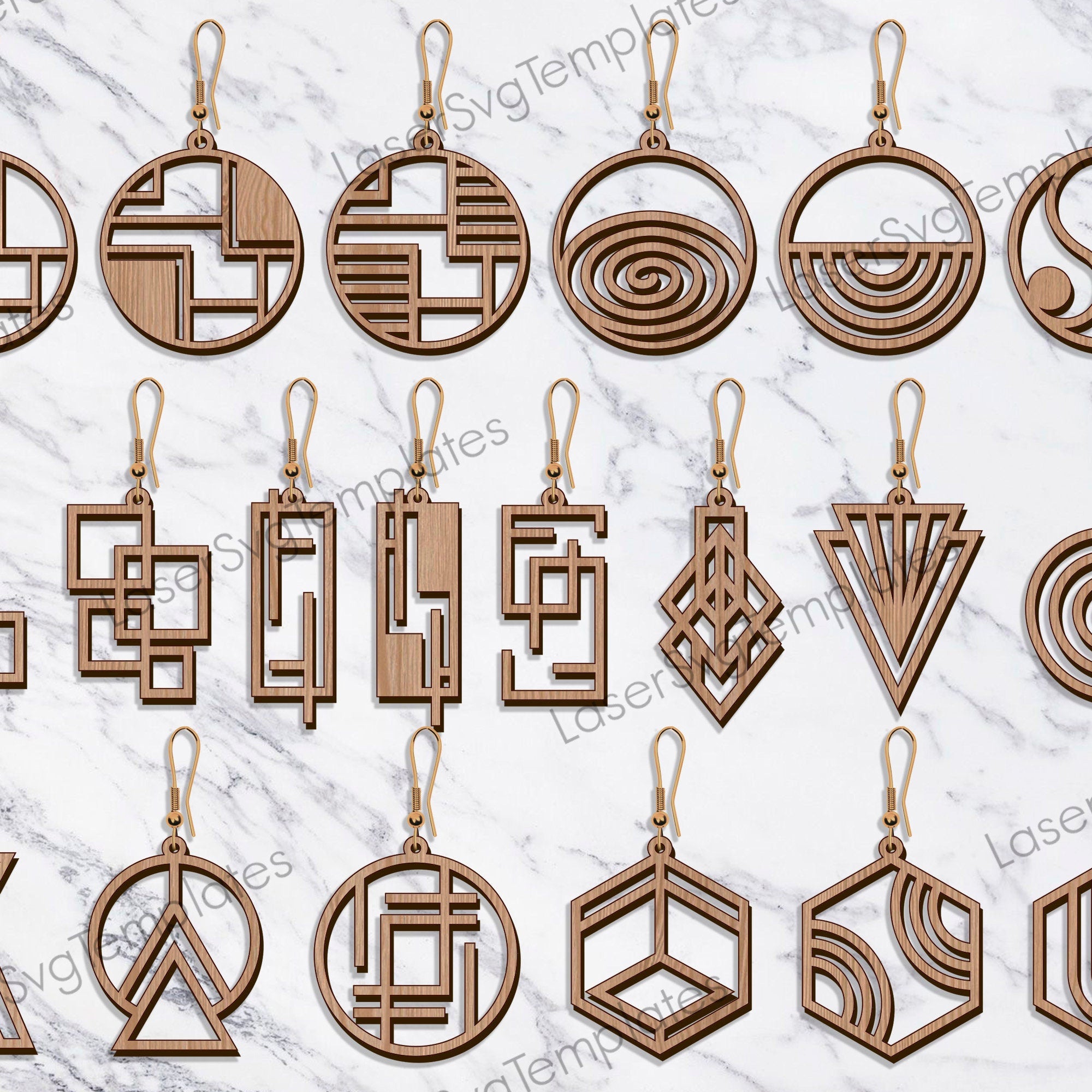 Fichier SVG au laser de boucles d'oreilles en bois