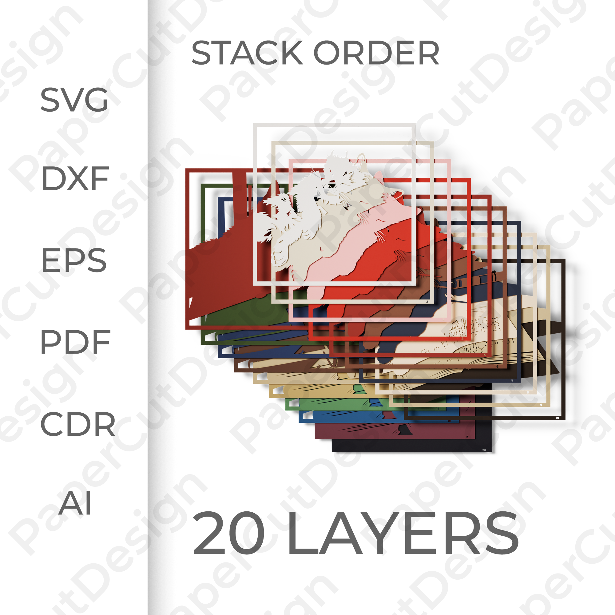 Vous recevrez les formats SVG, DXF, AI, EPS, CDR et PDF, compatibles avec la majorité des logiciels de découpe laser.
