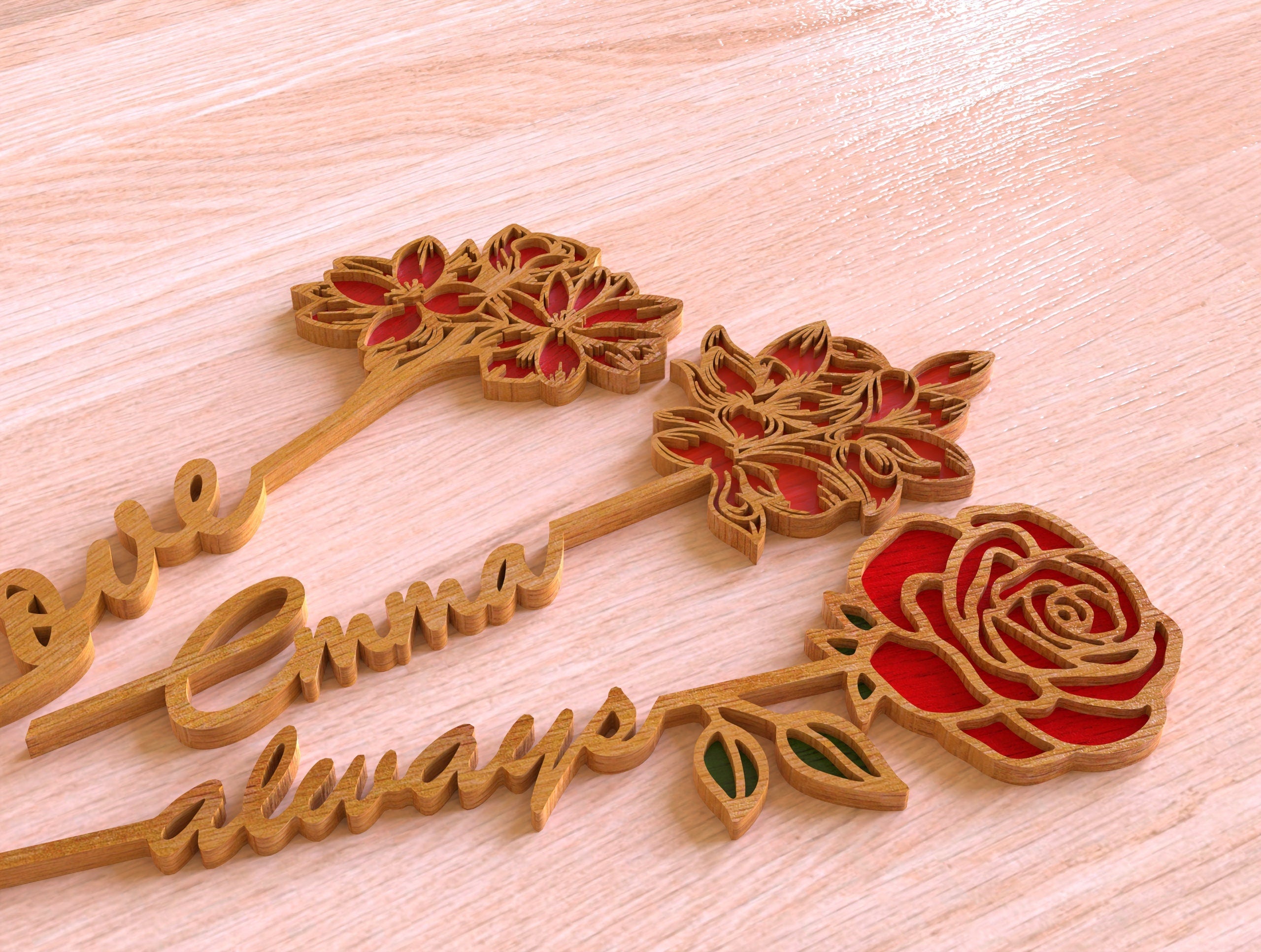 - Fichier SVG du pack de fleurs de rose en bois coupé au laser coupé au laser