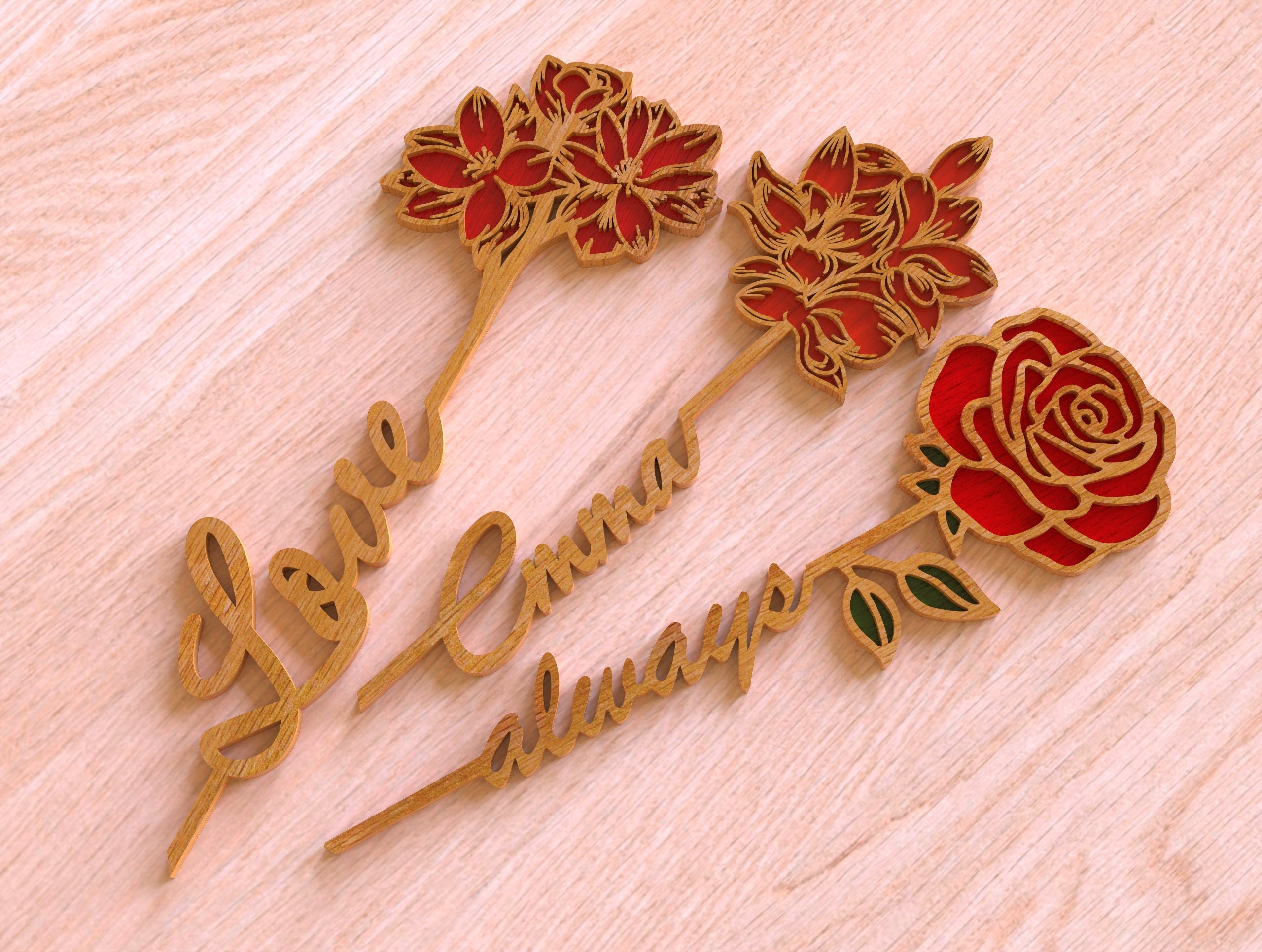 Fichier SVG du paquet de fleurs de rose en bois coupé en laser coupé au laser