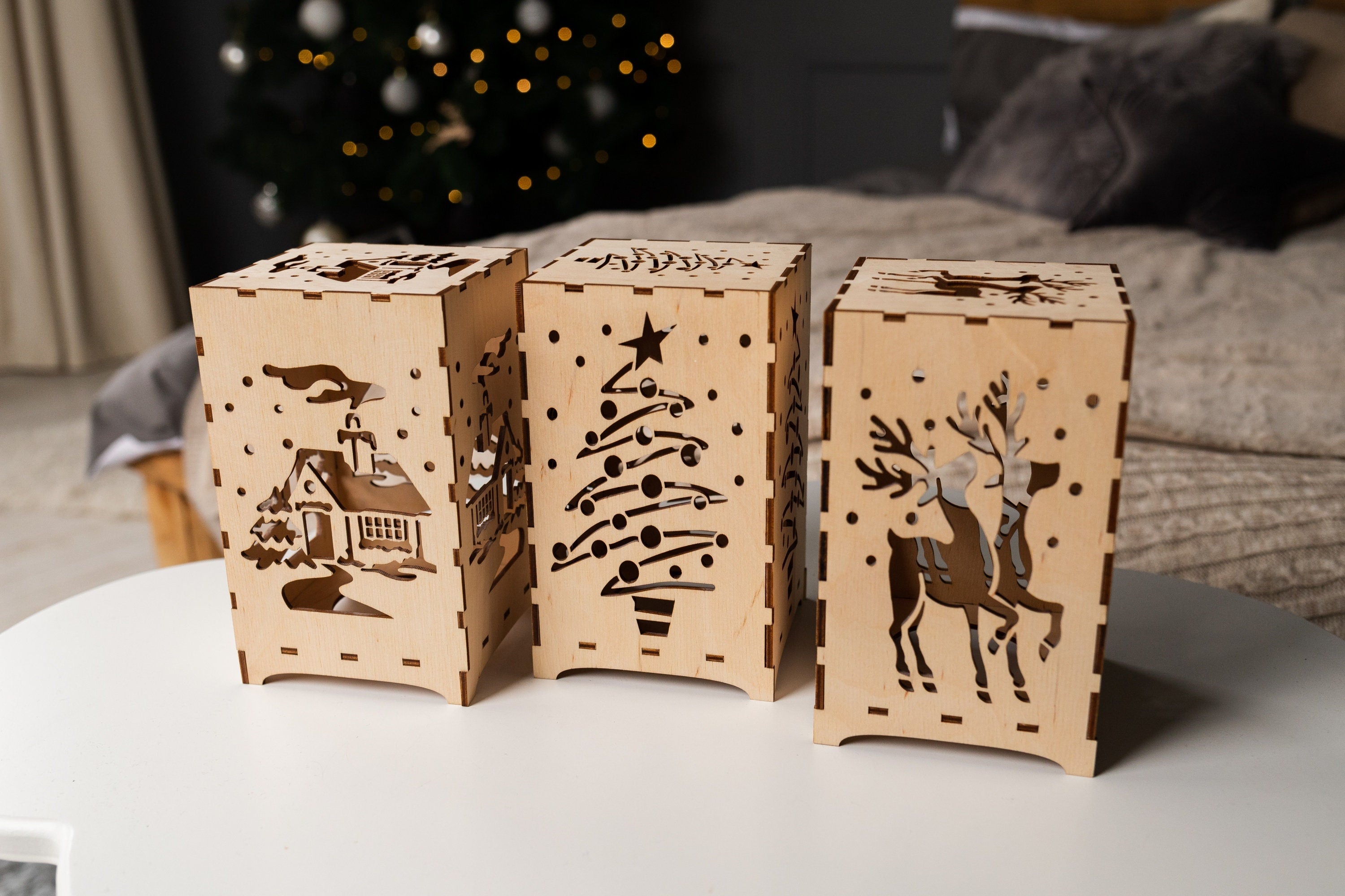 Lampe de bougeoir de Noël 3 File SVG Cut SVG du laser Bundle Cut