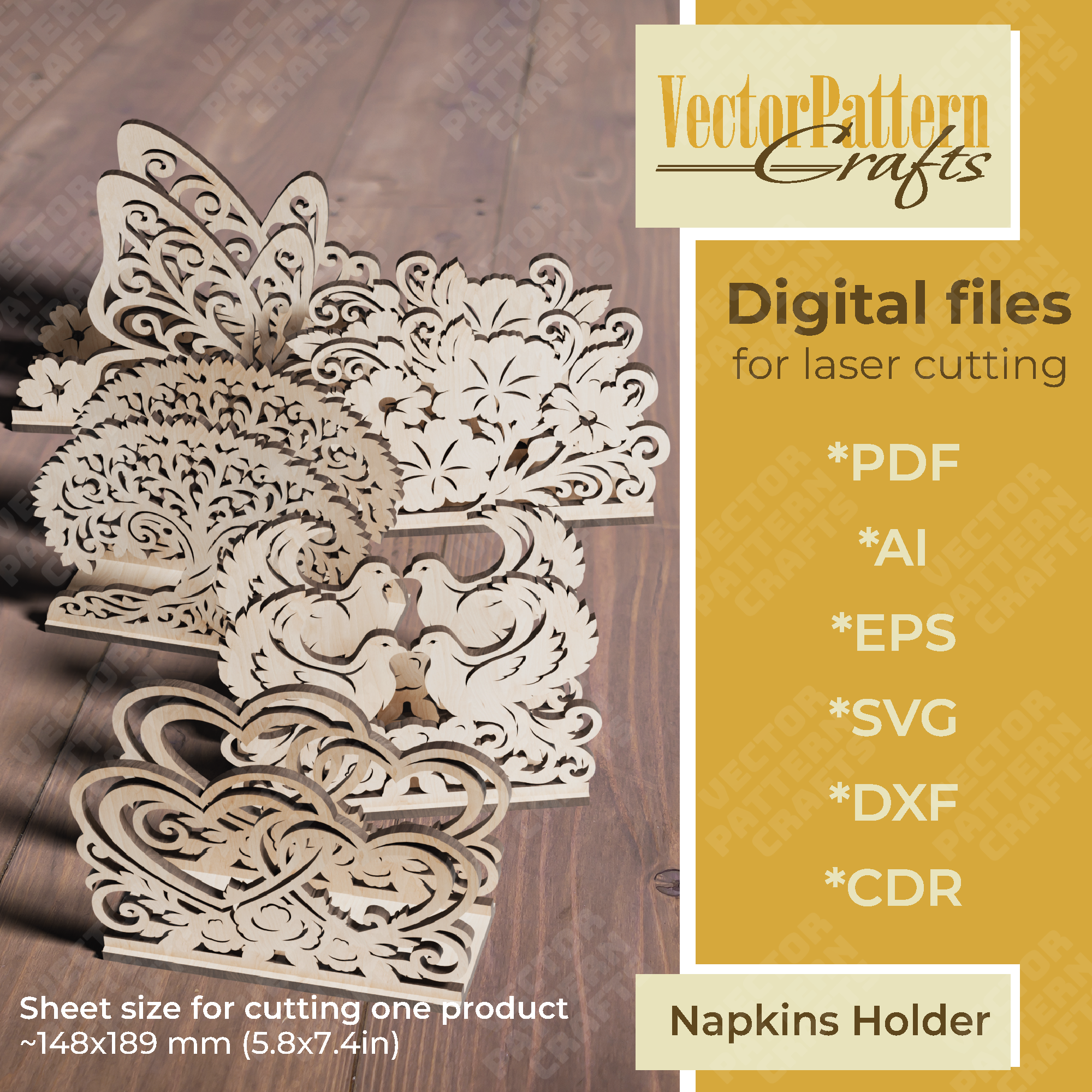 Vous recevrez les formats SVG, DXF, AI, EPS, CDR et PDF, compatibles avec la majorité des logiciels de découpe laser.
