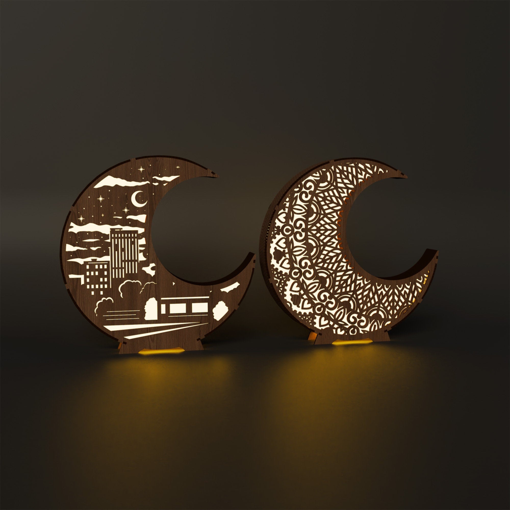 Laser Cut Moon Night Table Lampe 2 Bundle SVG Fichier