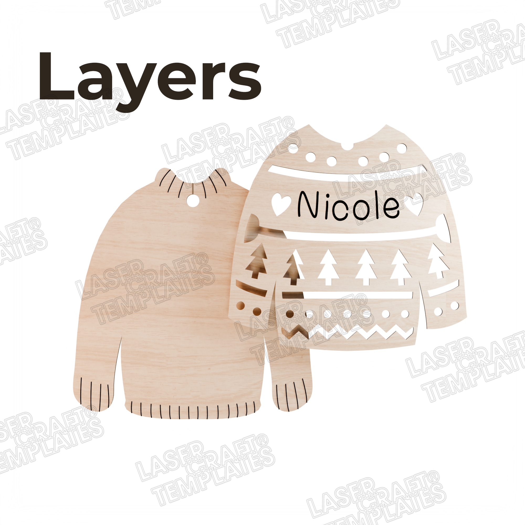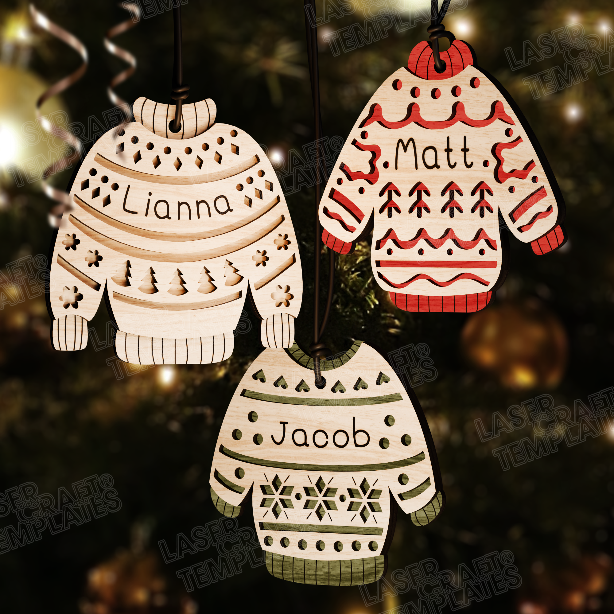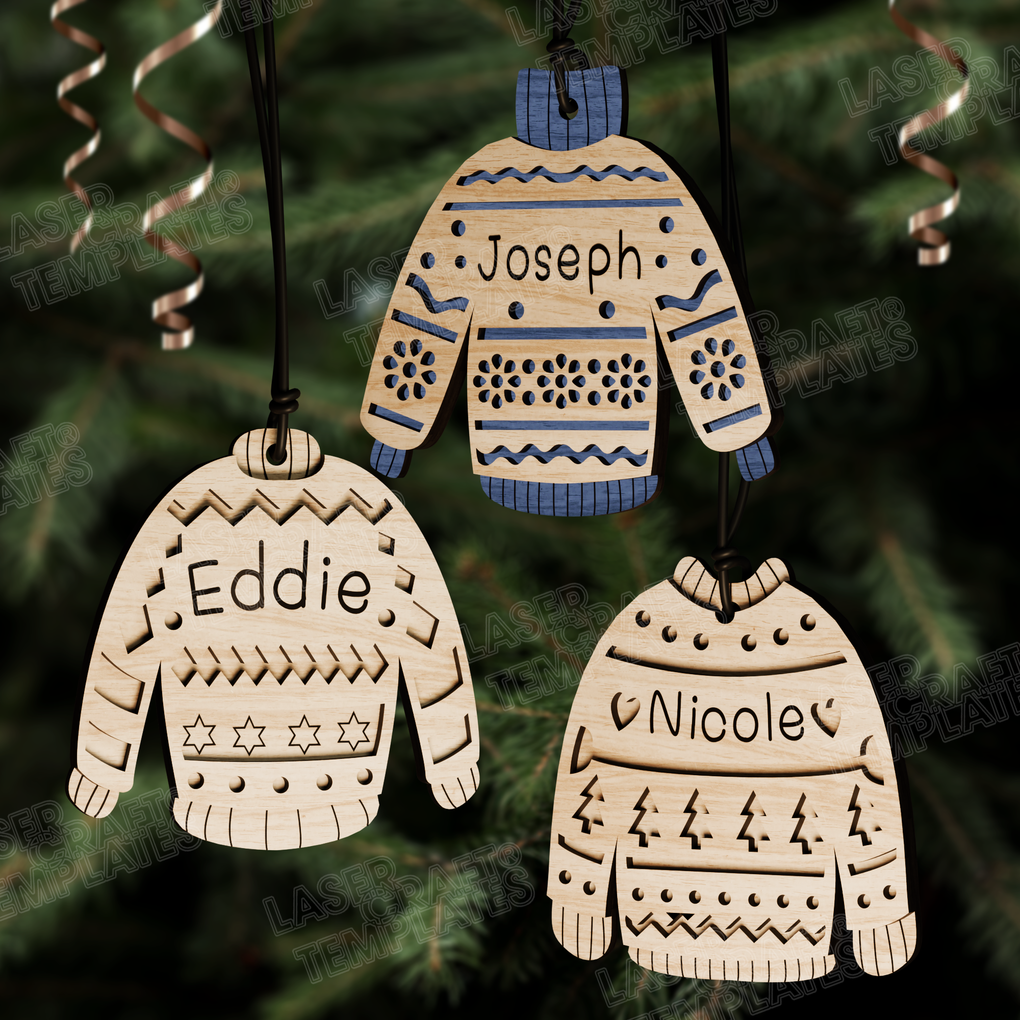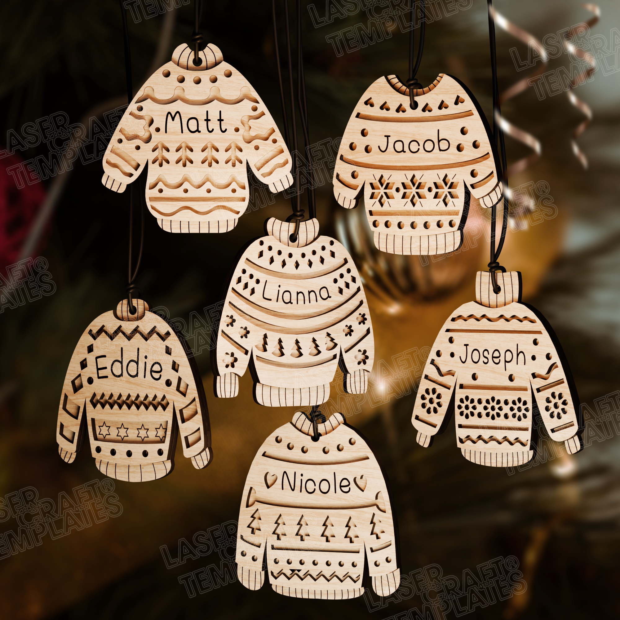 Ornements de pull de nom personnalisé de Noël 6 bundles fichier svg découpé au laser