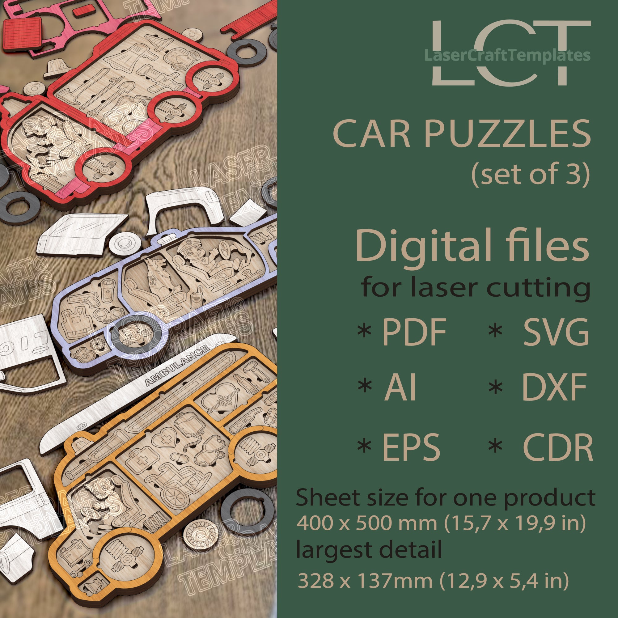 Vous recevrez les formats SVG, DXF, AI, EPS, CDR et PDF, compatibles avec la majorité des logiciels de découpe laser.