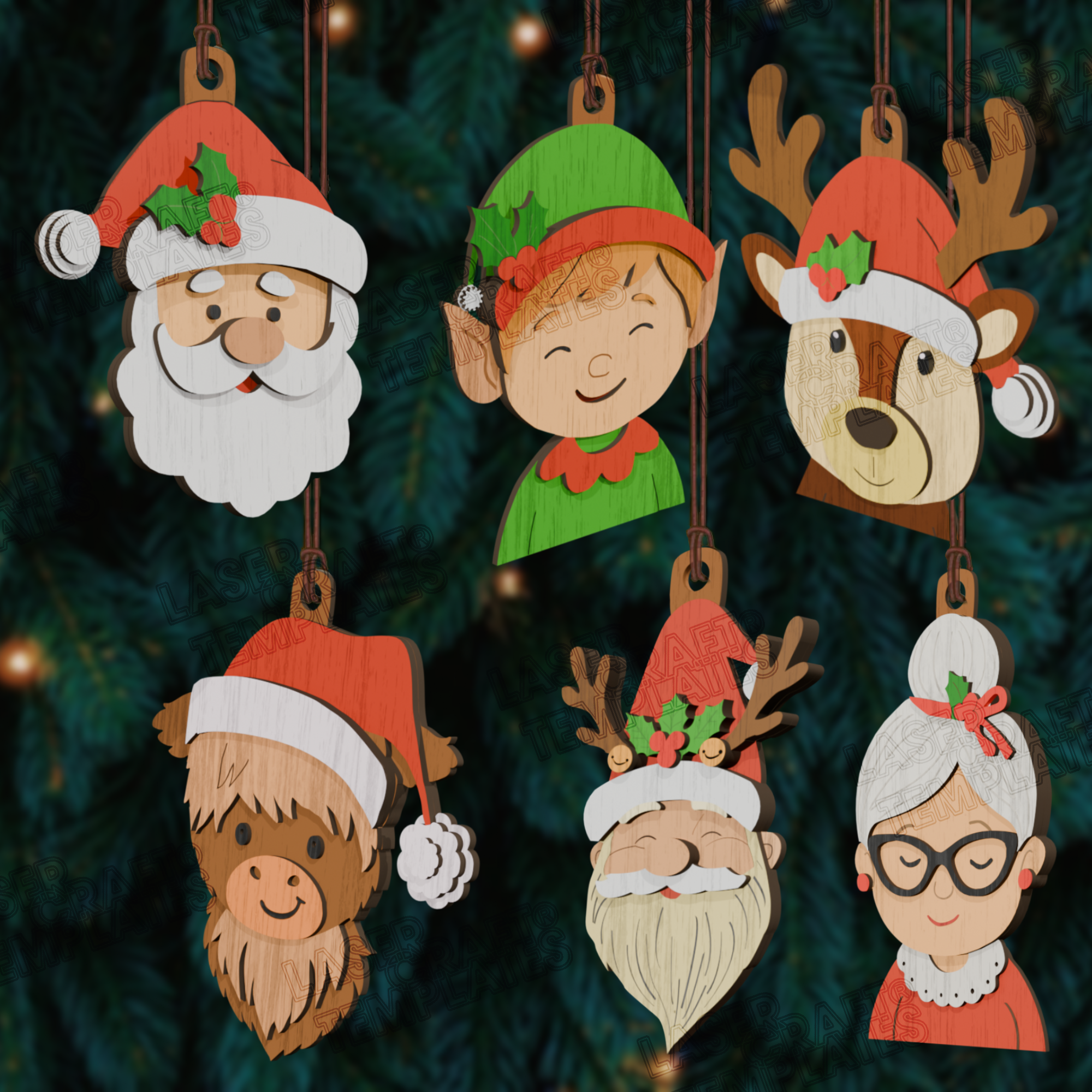 - Le fichier comprend 4 motifs de décoration d'arbres différents