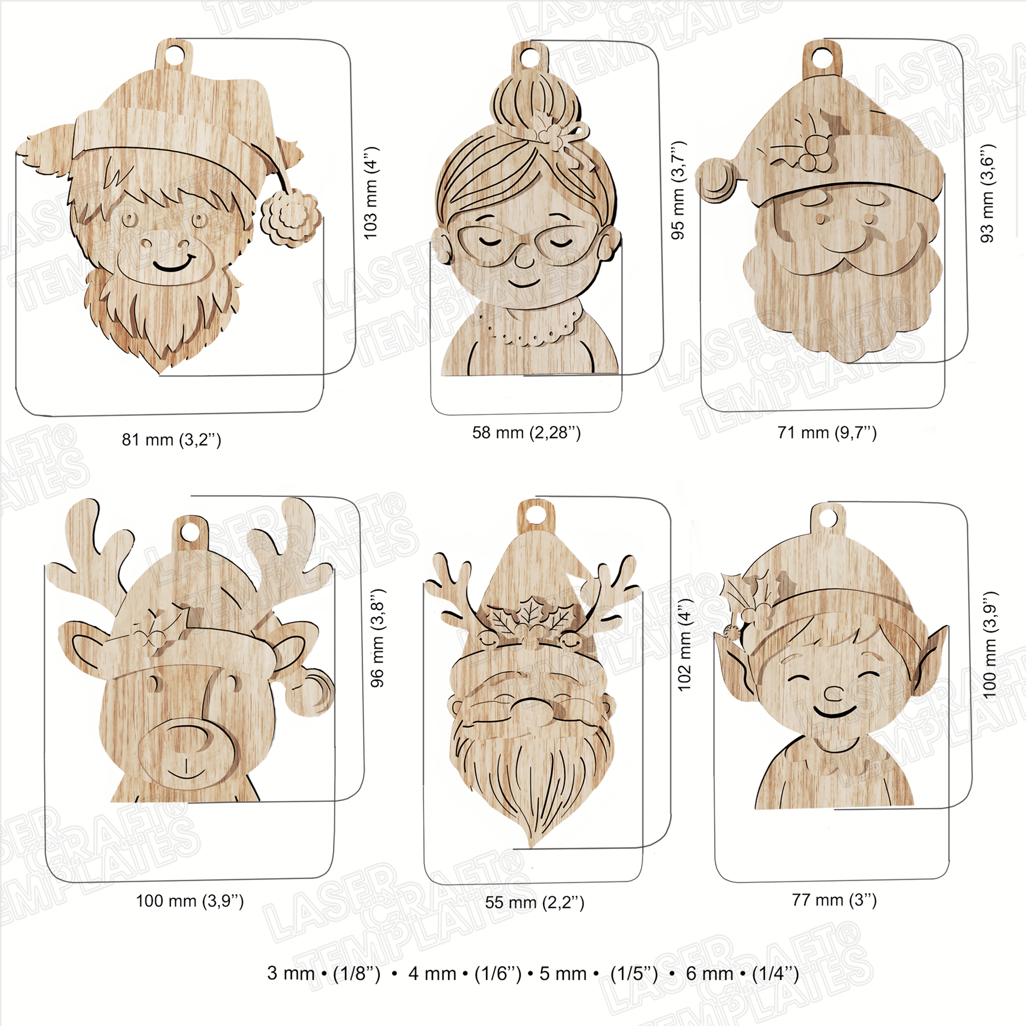 - Ces fichiers sont créés pour 3 mm, 1/8 ", 4 mm, 1/6", 5 mm, 6 mm et 1/4 "