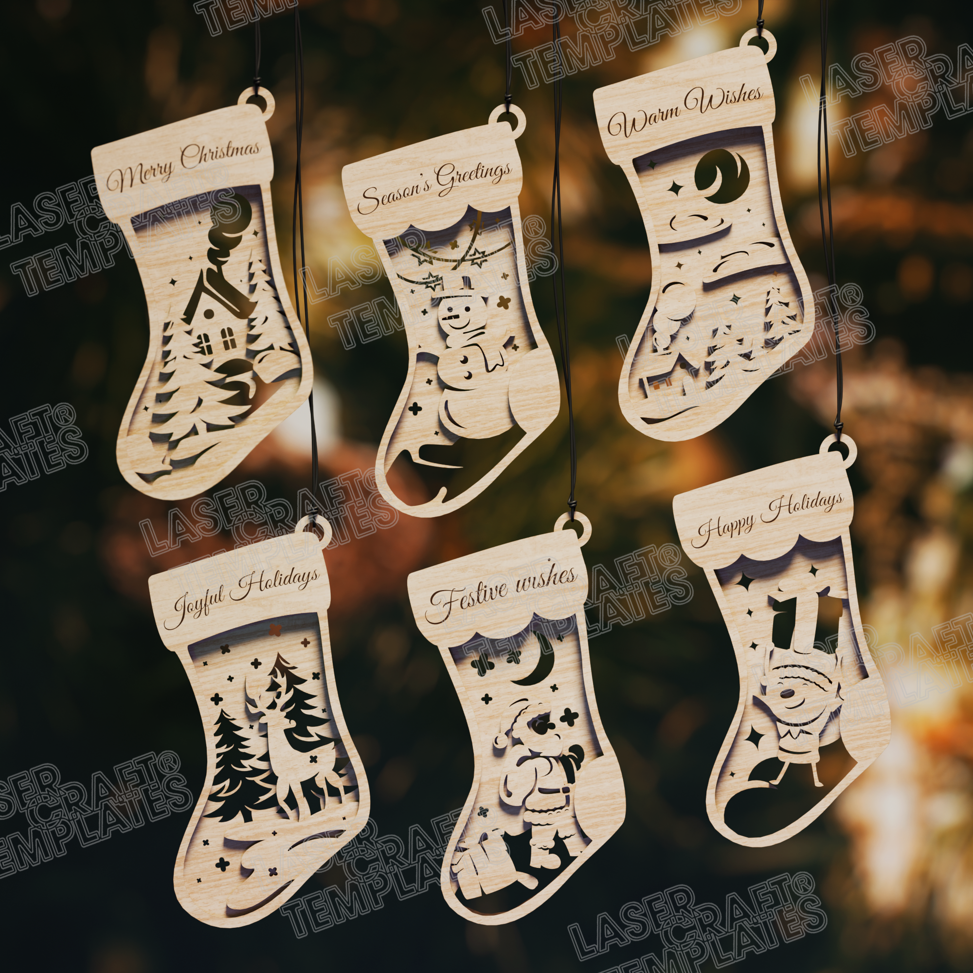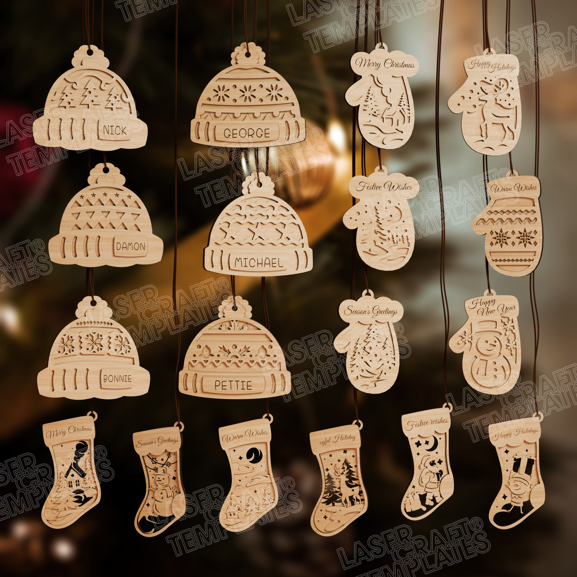 Ornements de Noël 18 bundle fichier svg découpé au laser