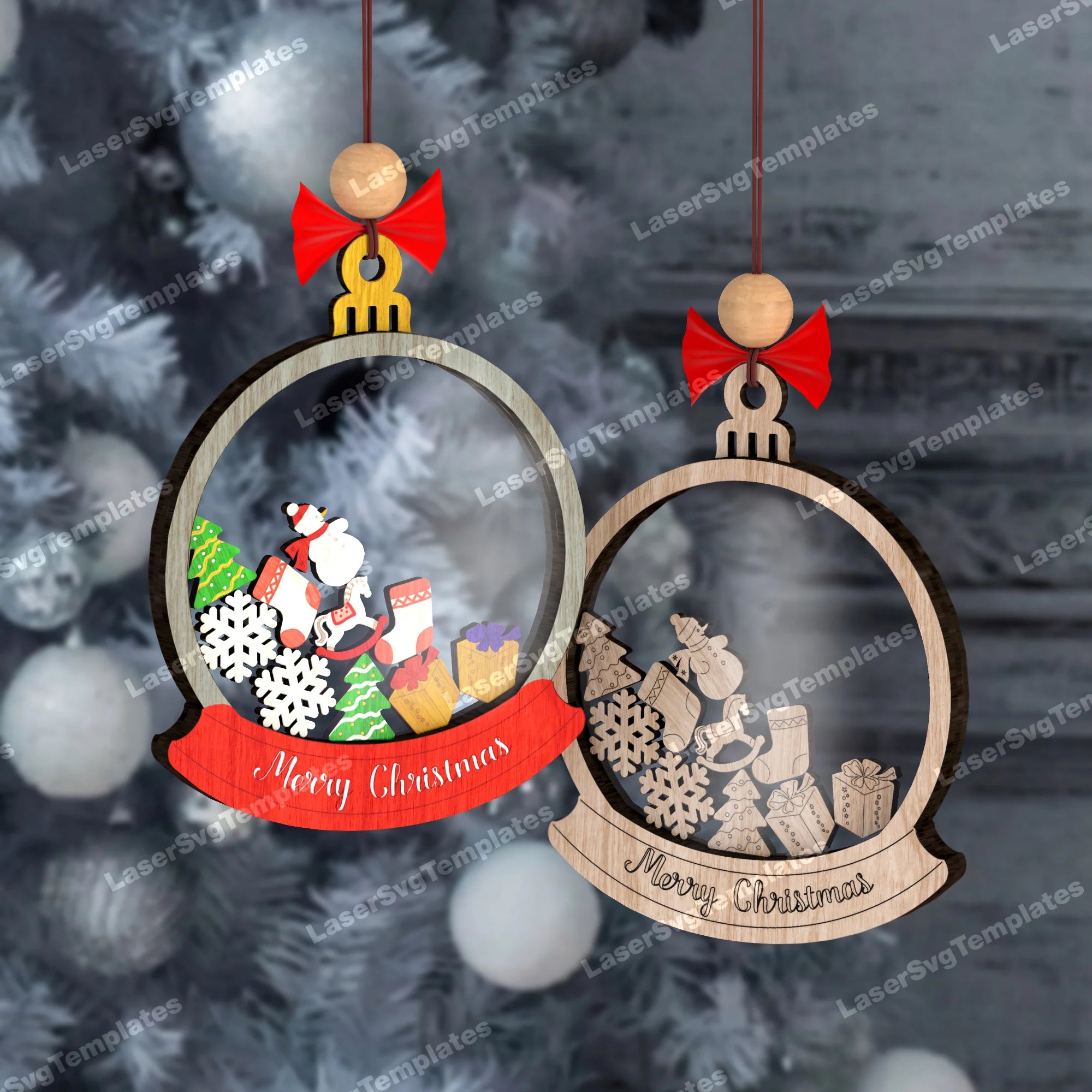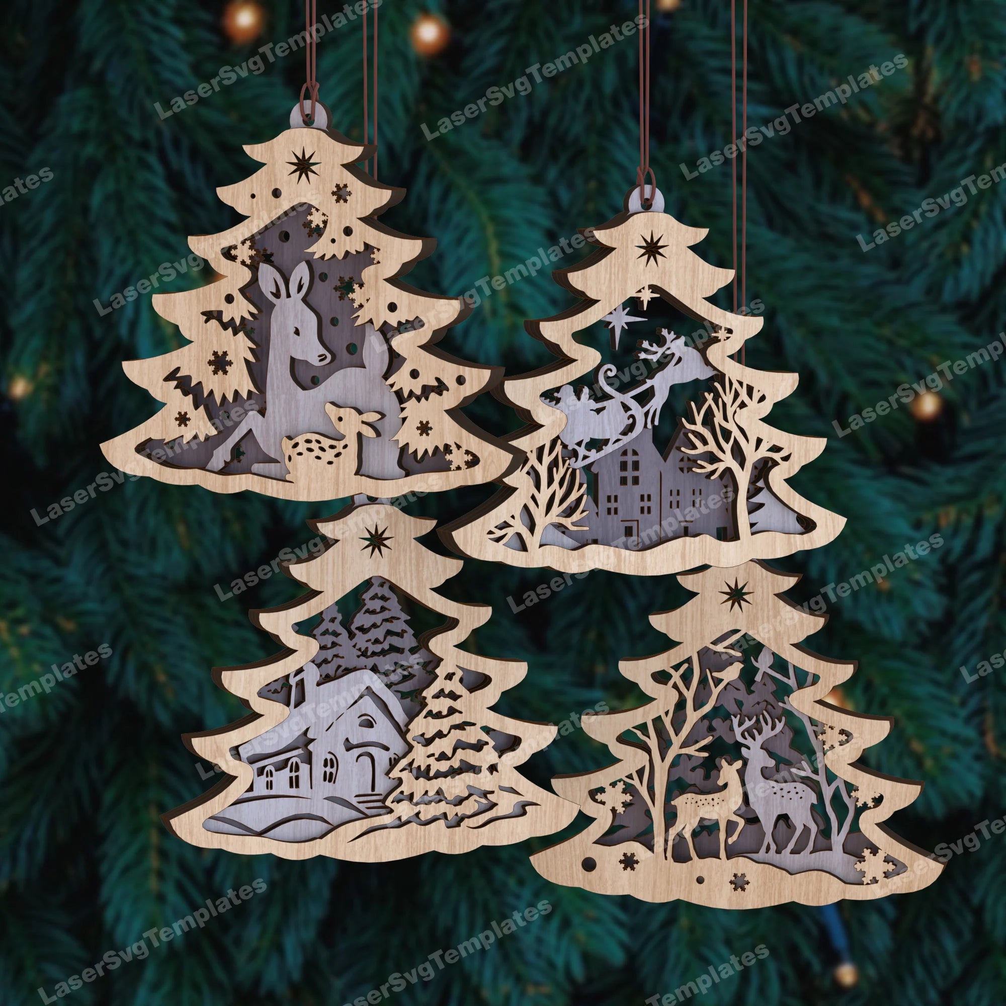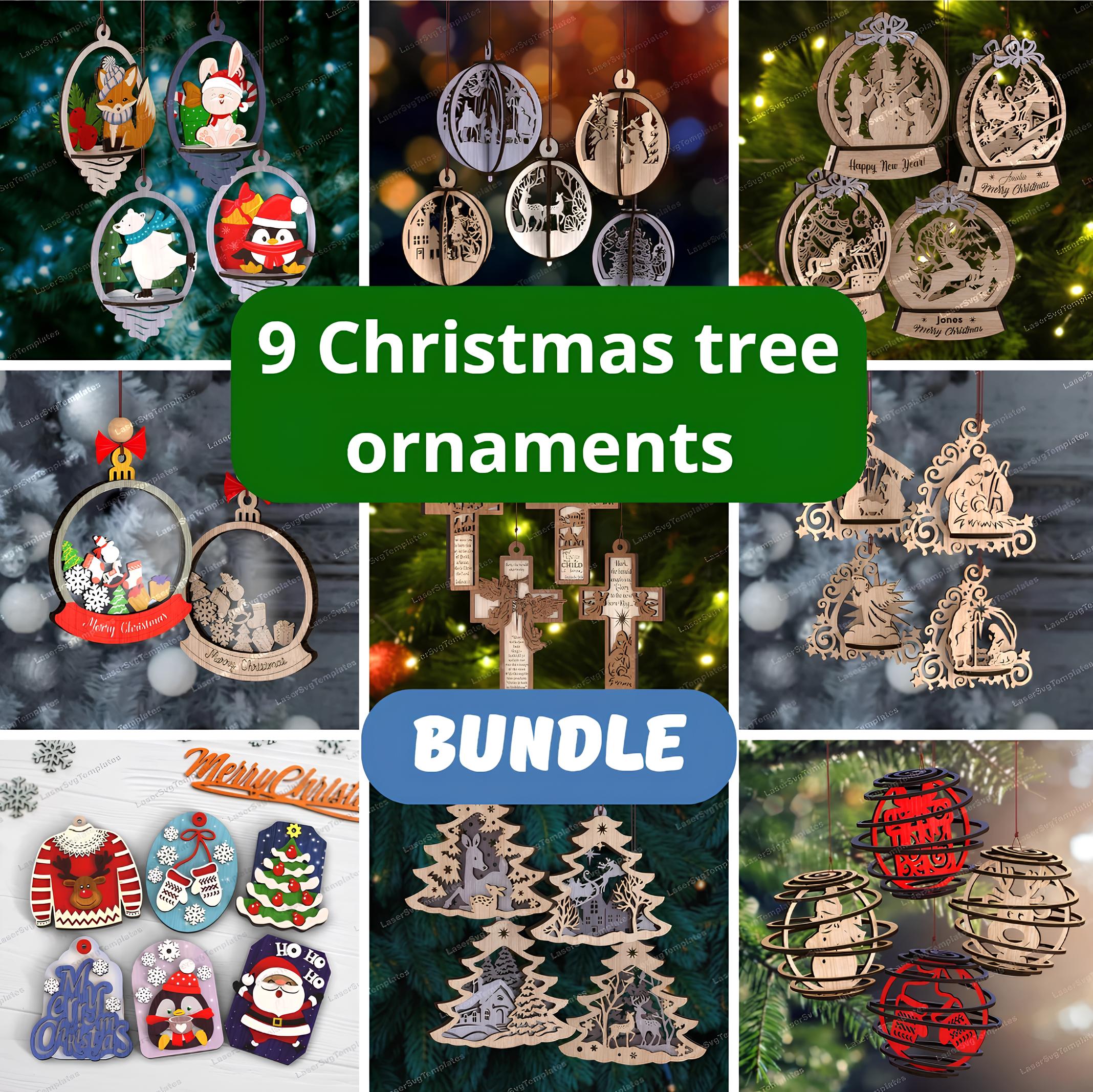 9 Christmas tree ornaments Bundle laser cut svg file