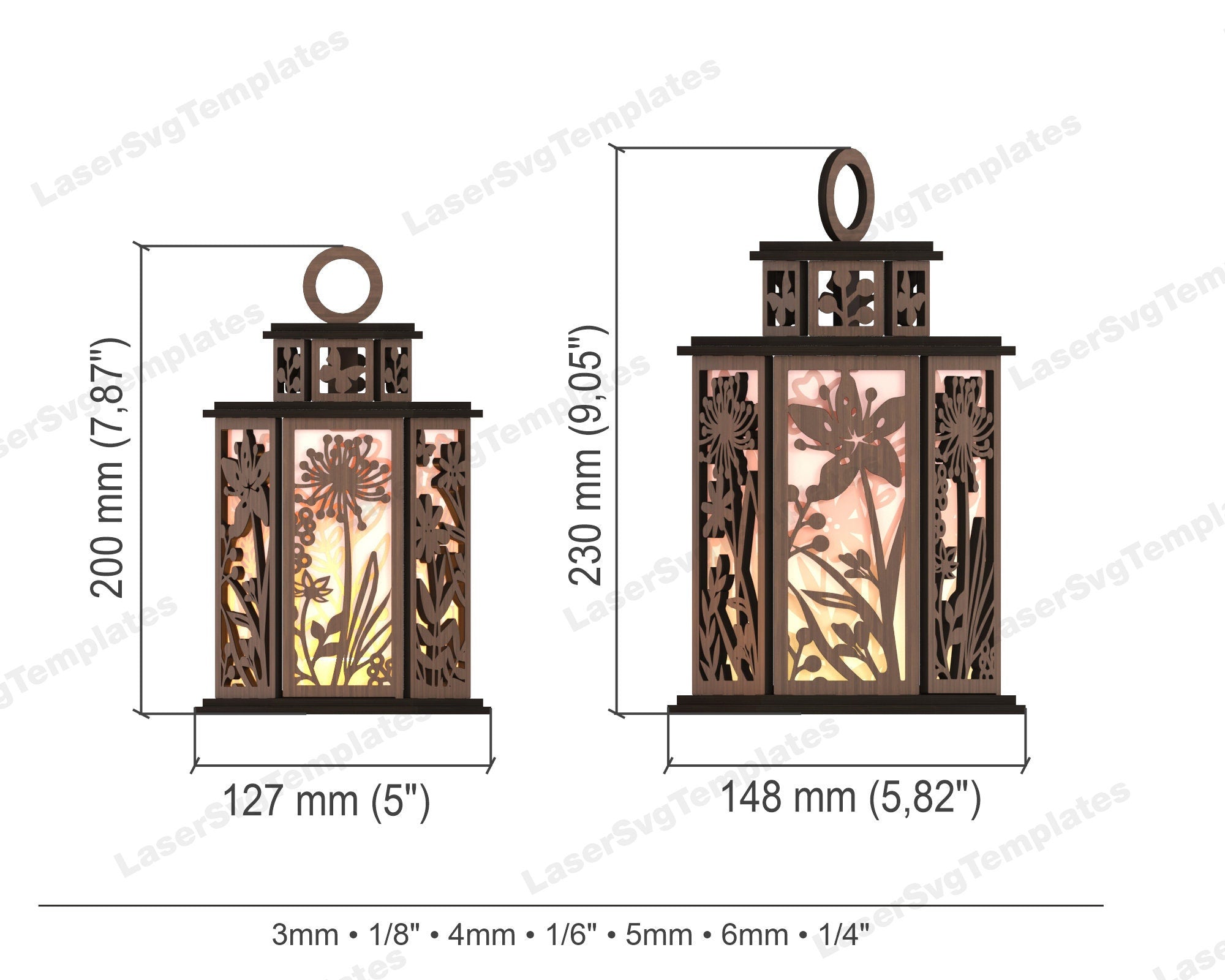- Questi file sono creati per materiale da 3 mm, 1/8 ", 4 mm, 1/6", 5 mm, 6 mm e 1/4 "