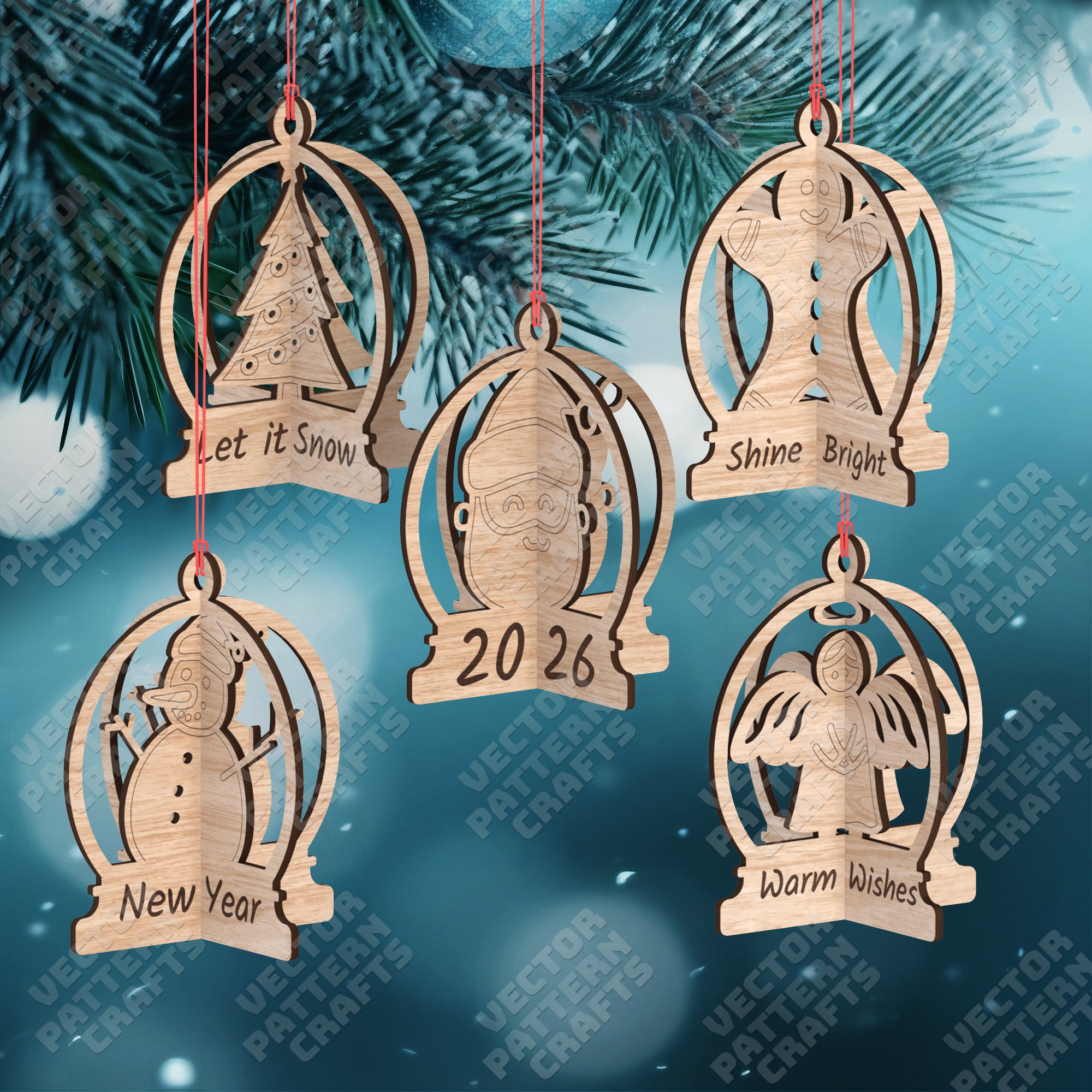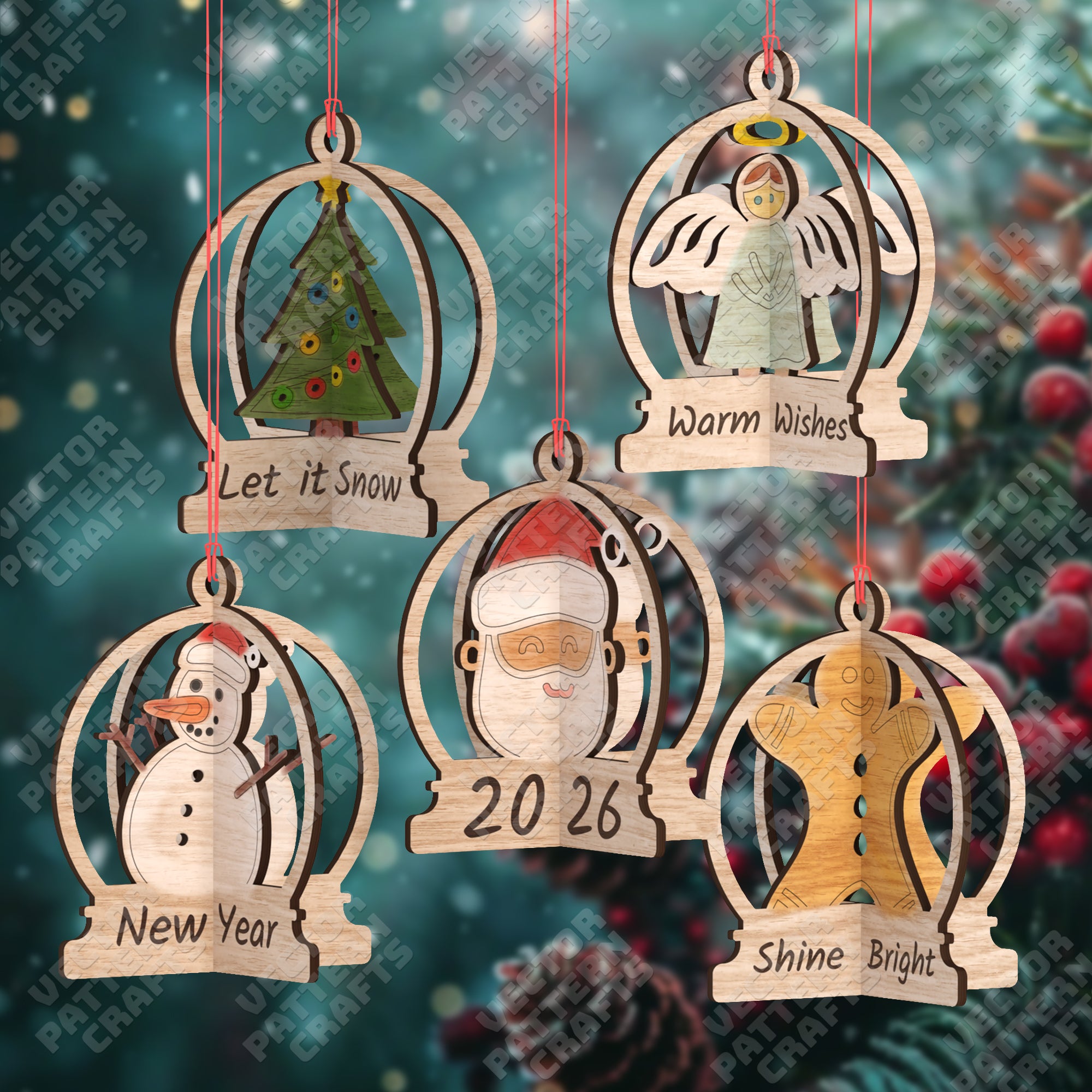 Christmas tree ball ornaments 5 bundle laser cut svg file