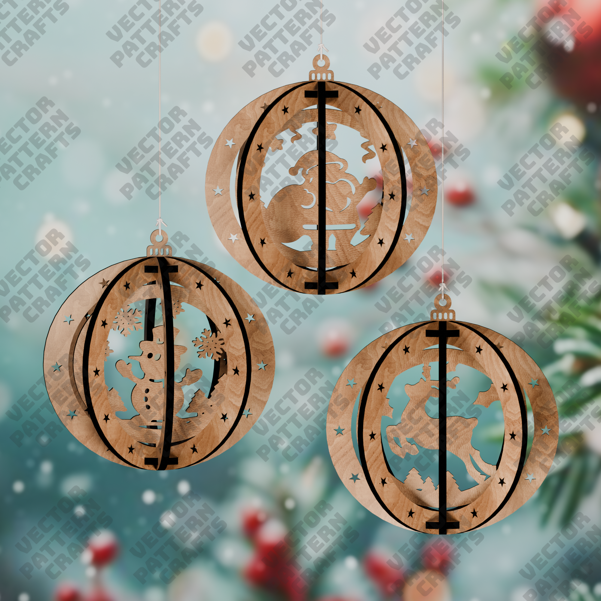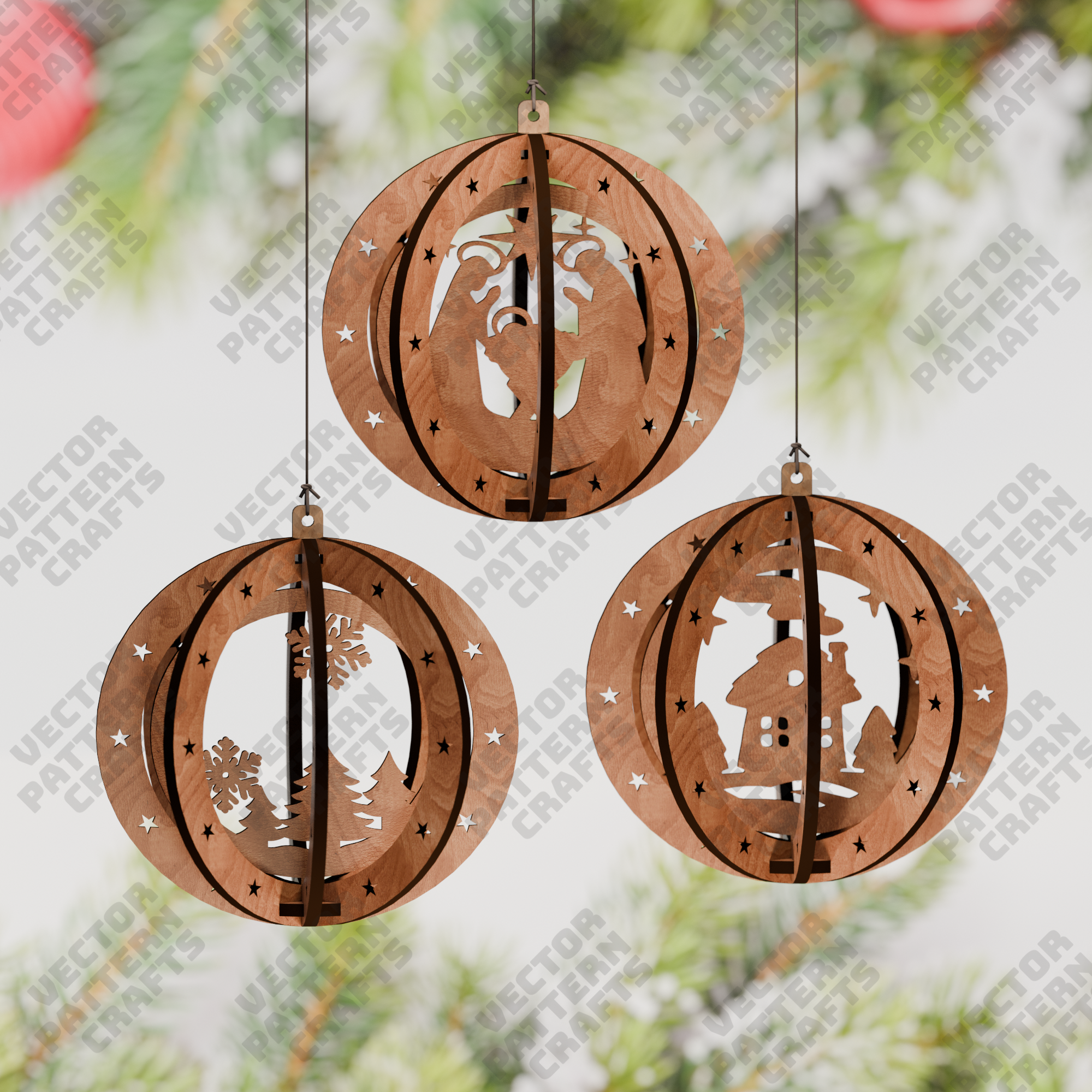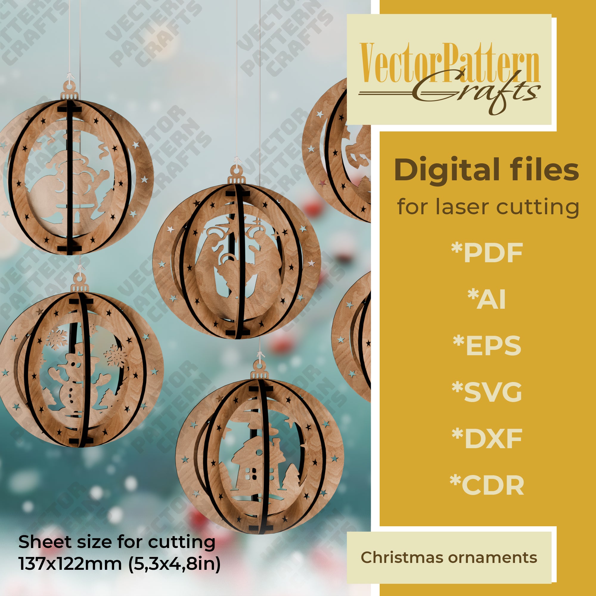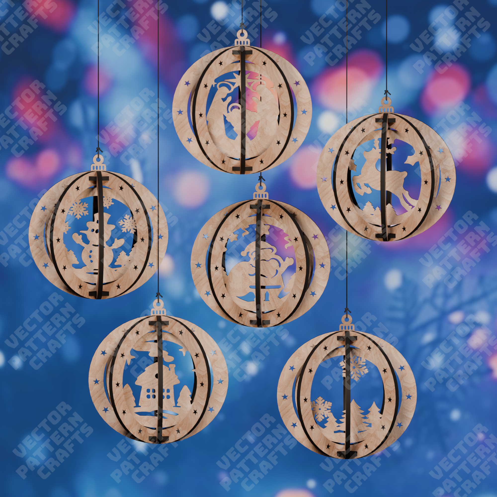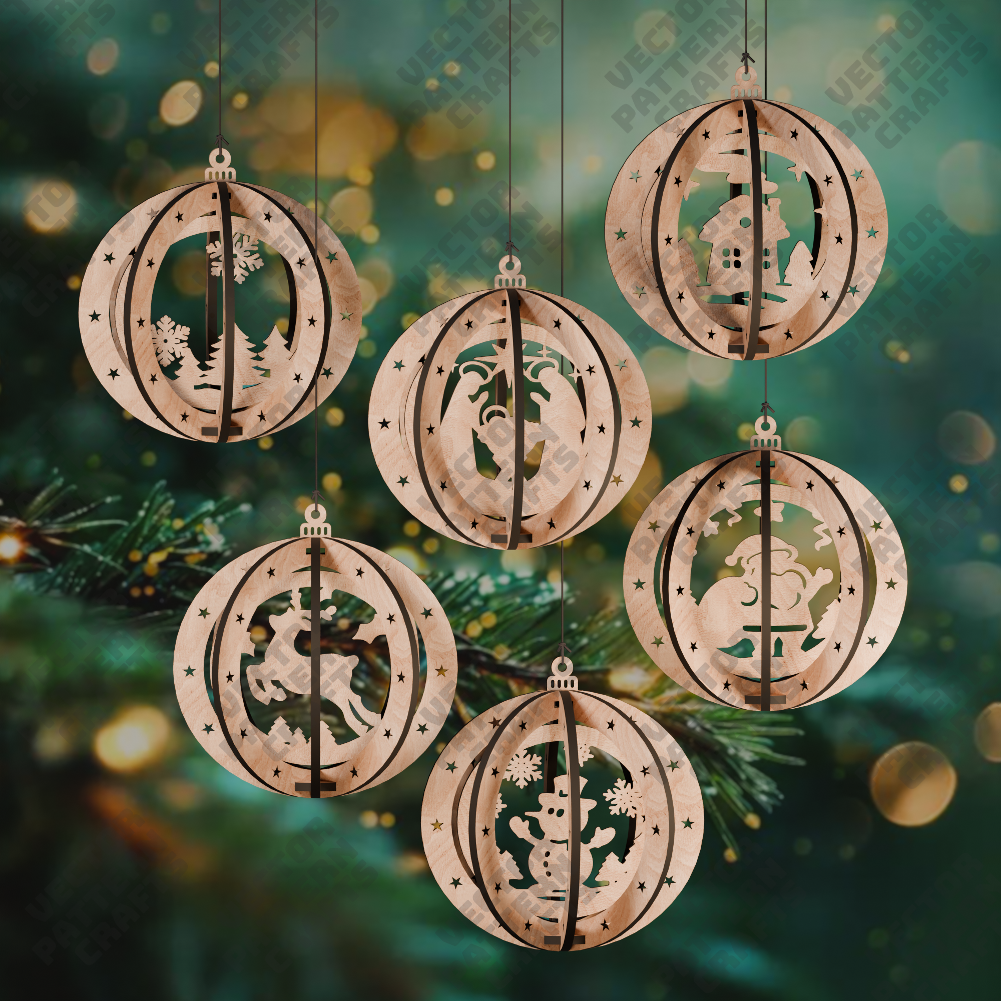 Christmas tree ball ornaments 6 bundle laser cut svg file