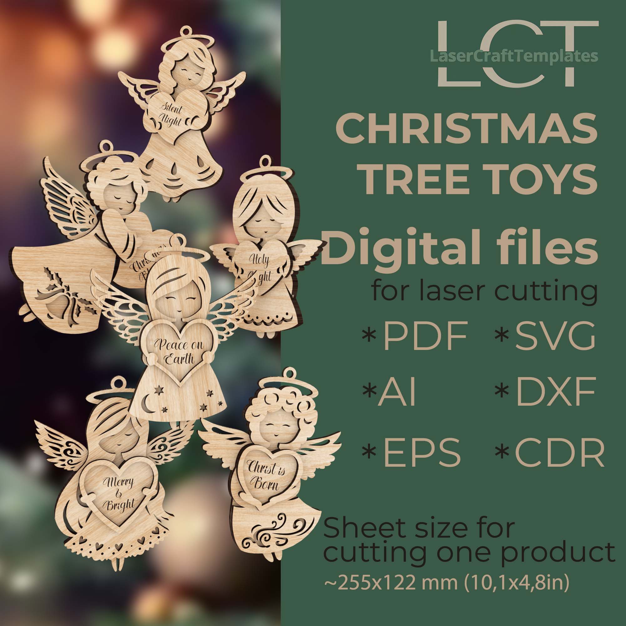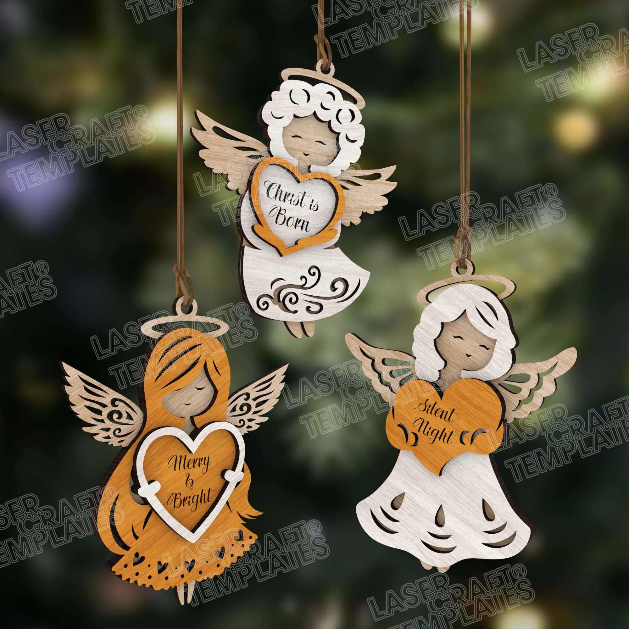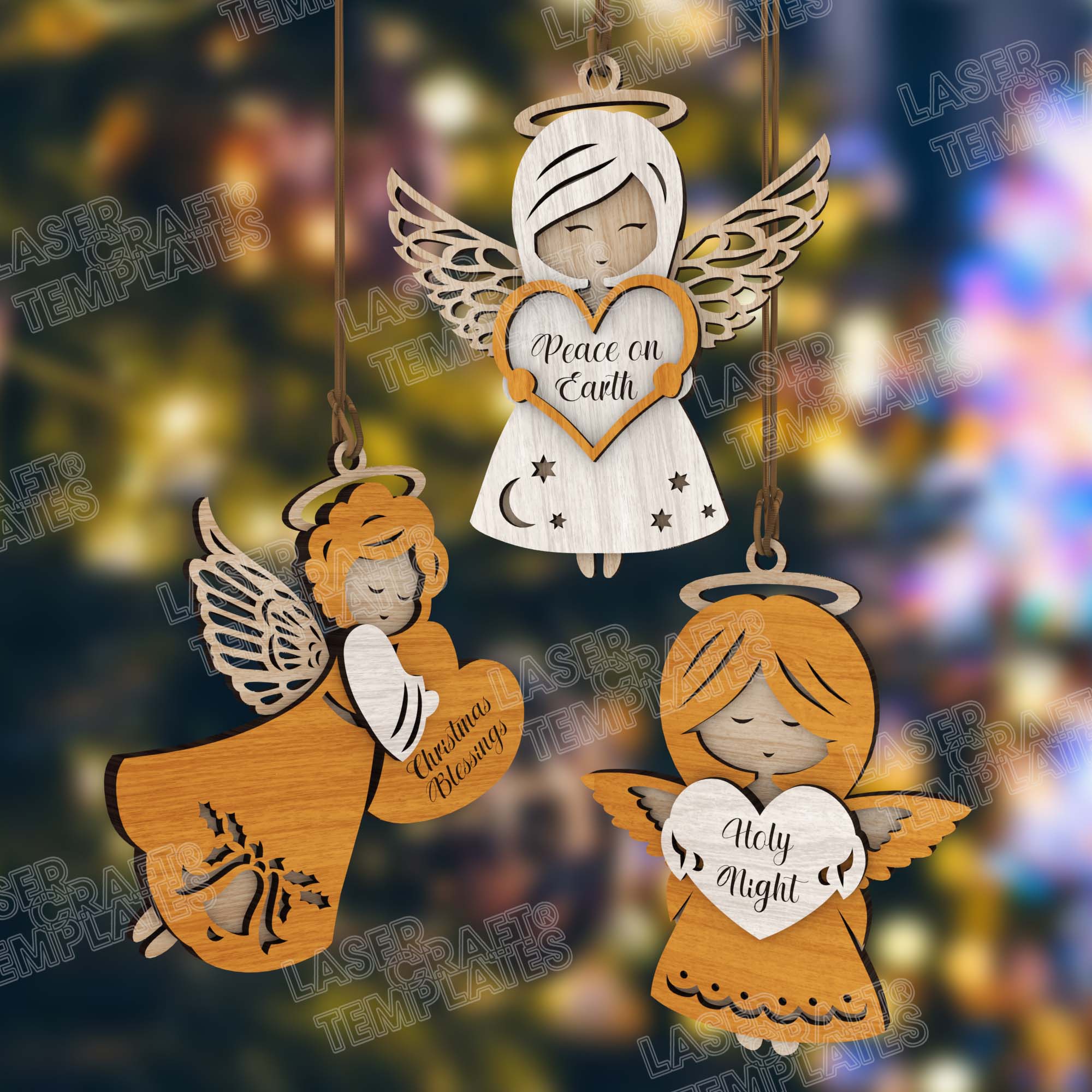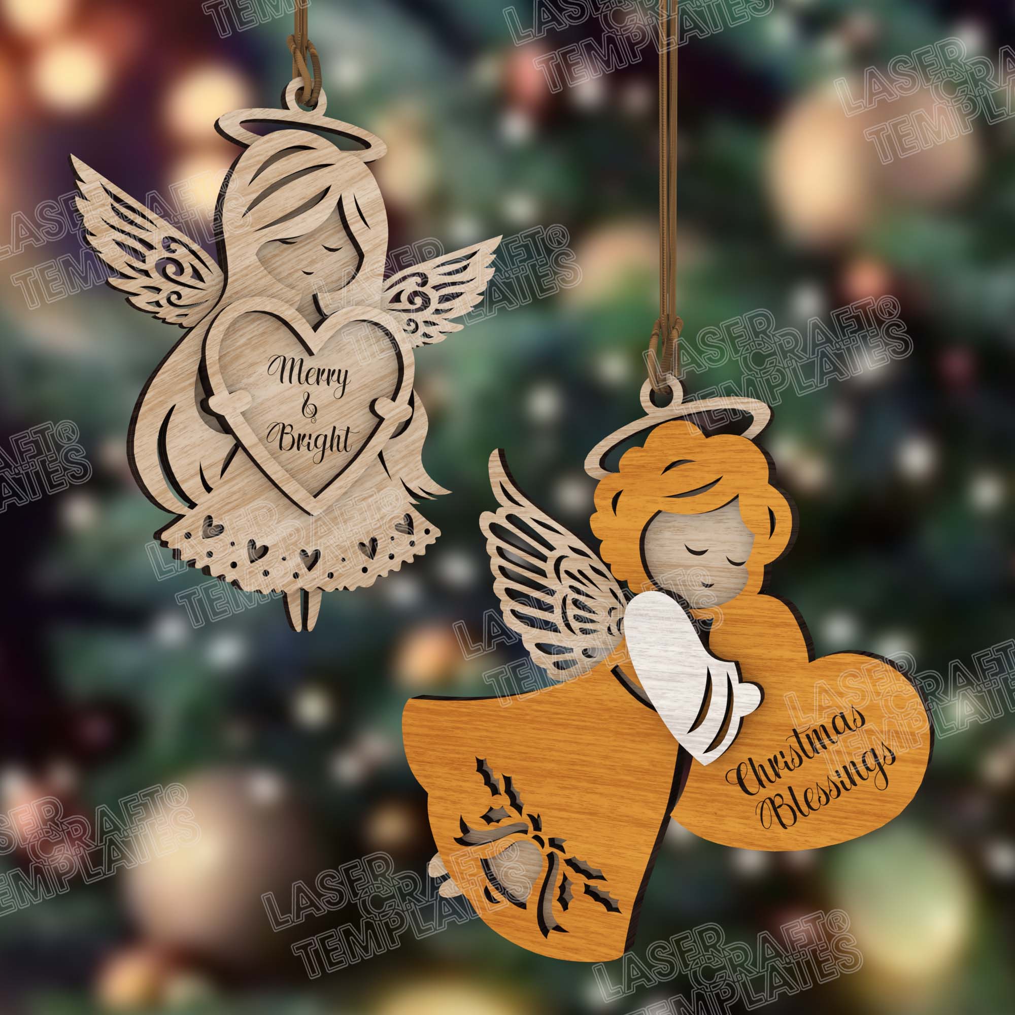 Ornamenti natalizi angelo 6 bundle file in formato SVG tagliato al laser
