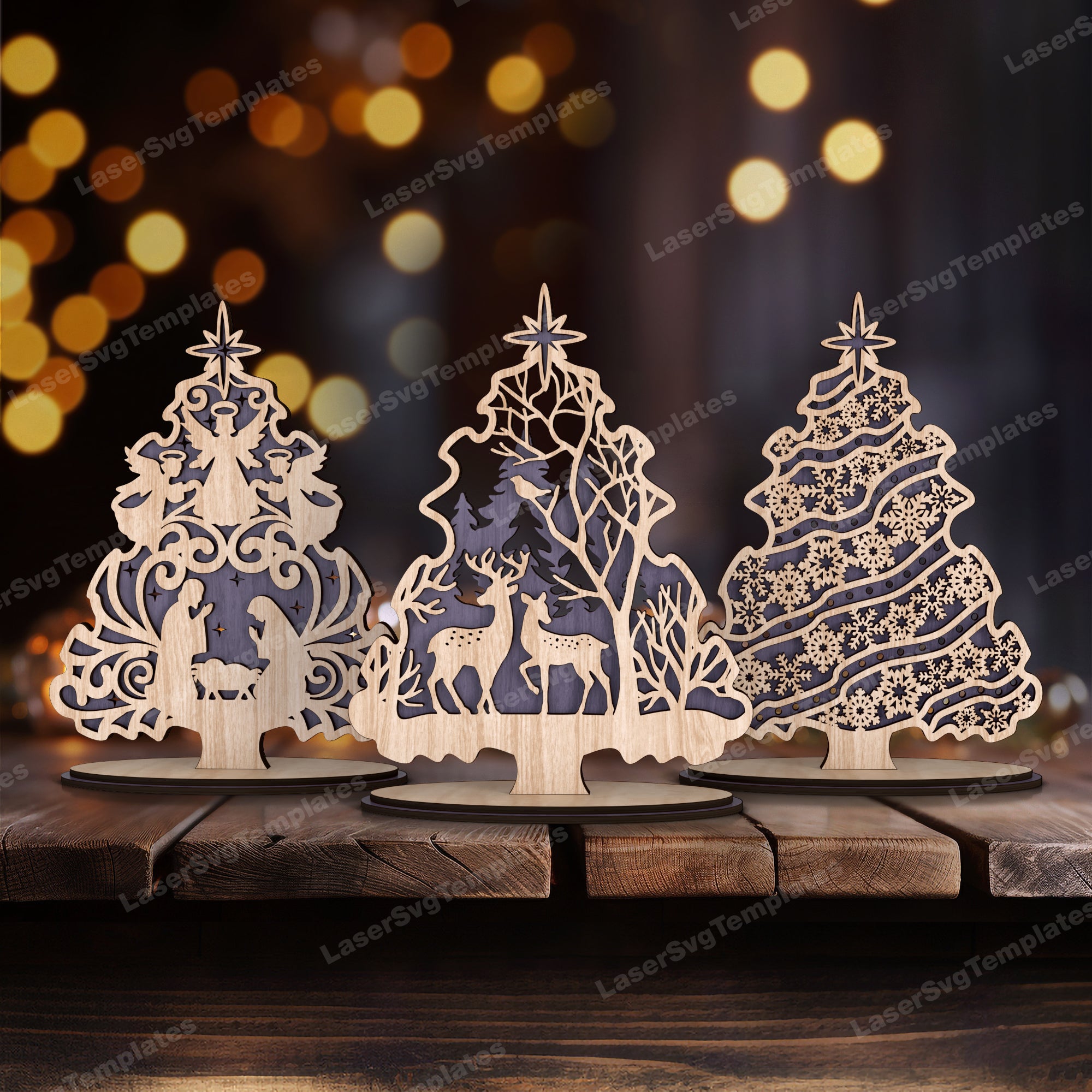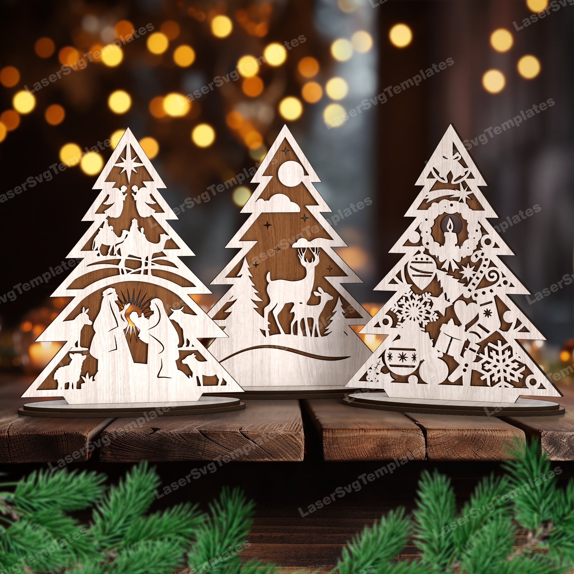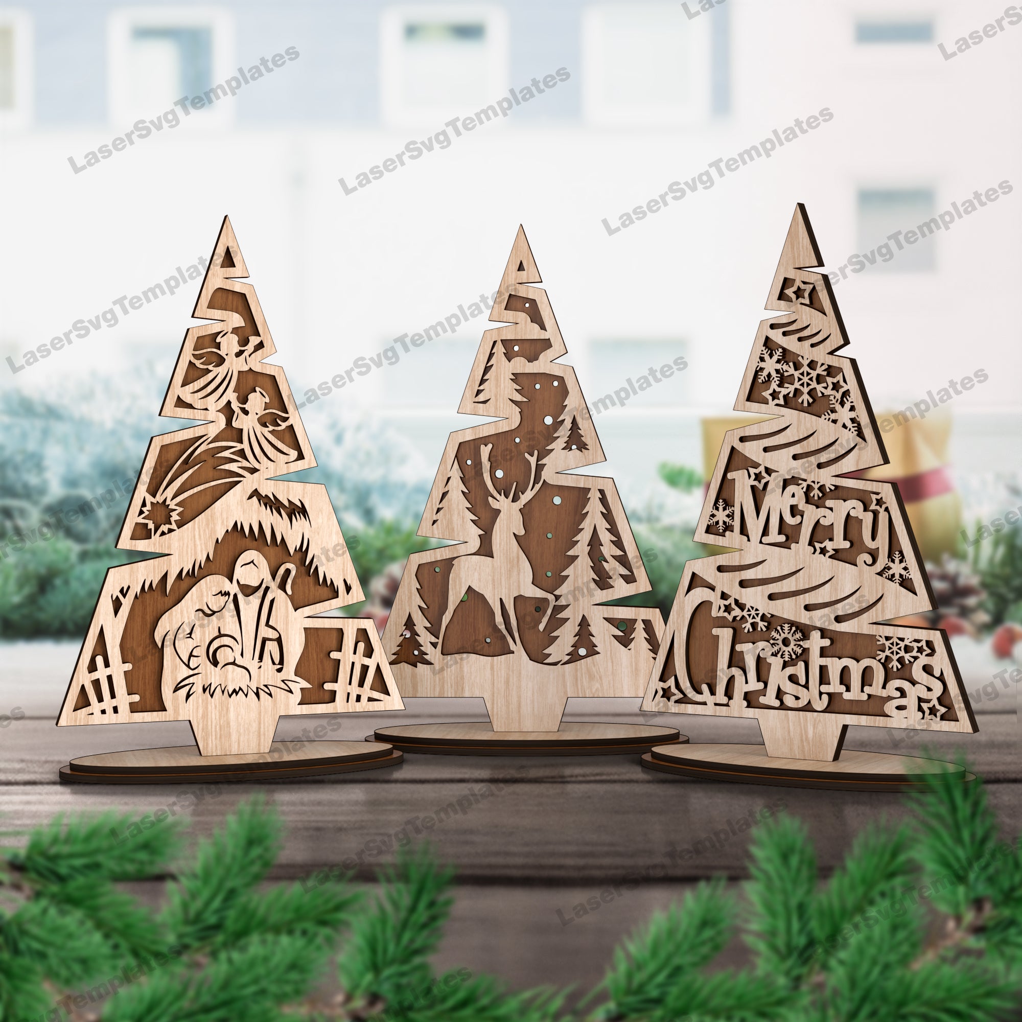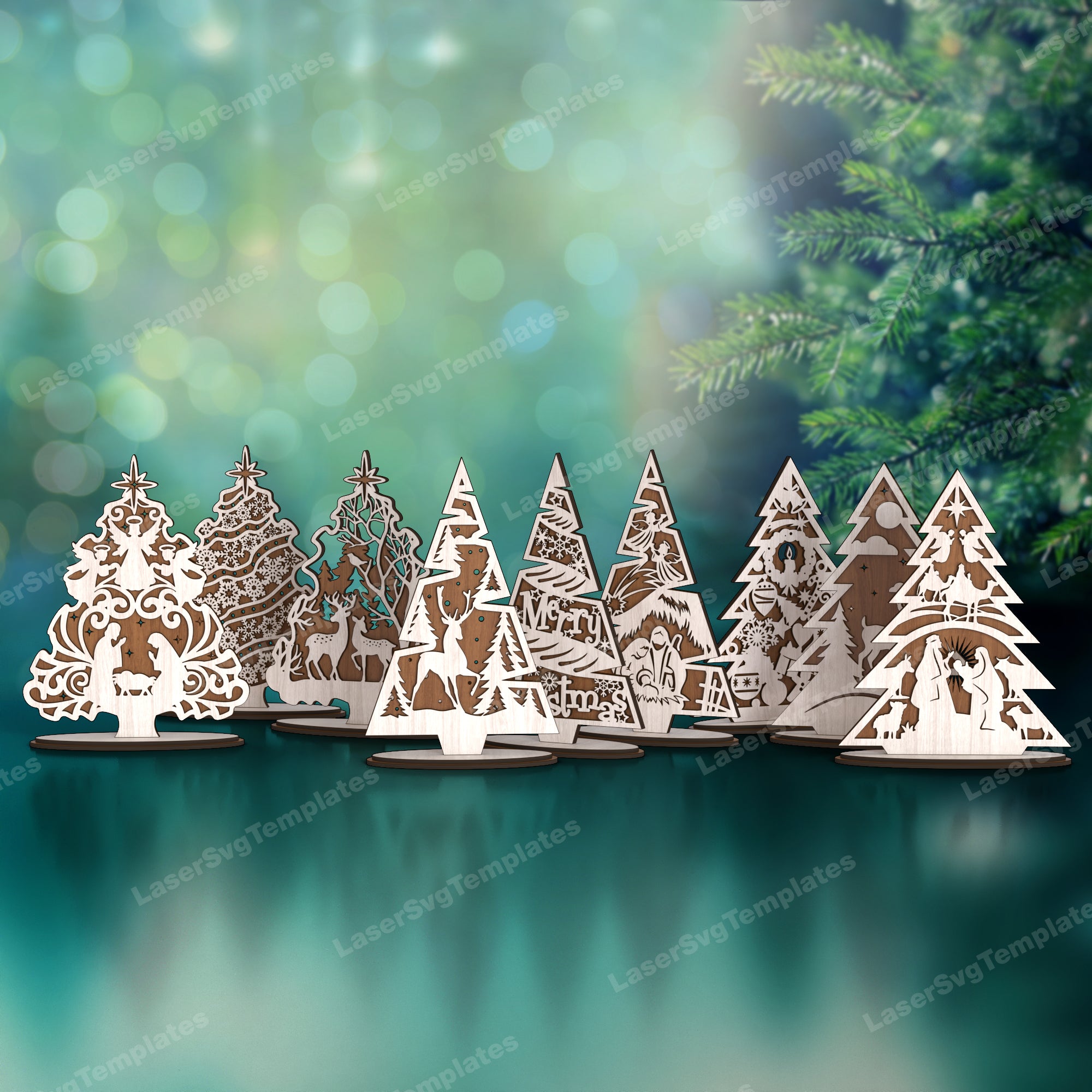 Taglio laser in piedi ornamenti per l'albero di Natale 9 bundle di file in formato SVG