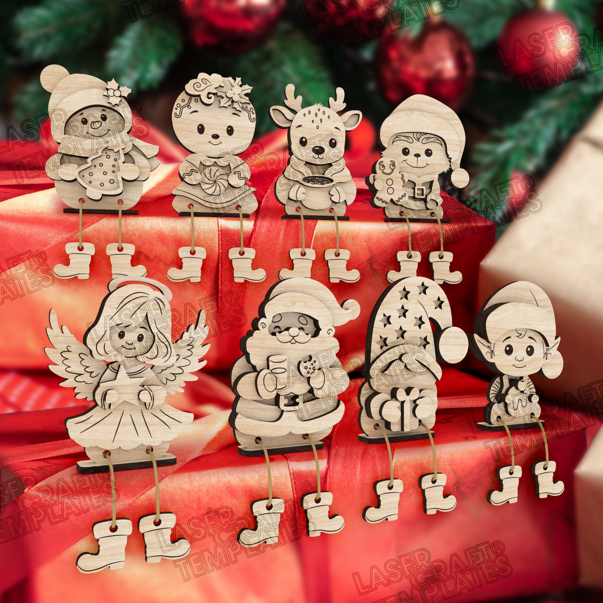 Personaggi di Christmas Shelf sitter 8 bundle file in formato SVG tagliato al laser