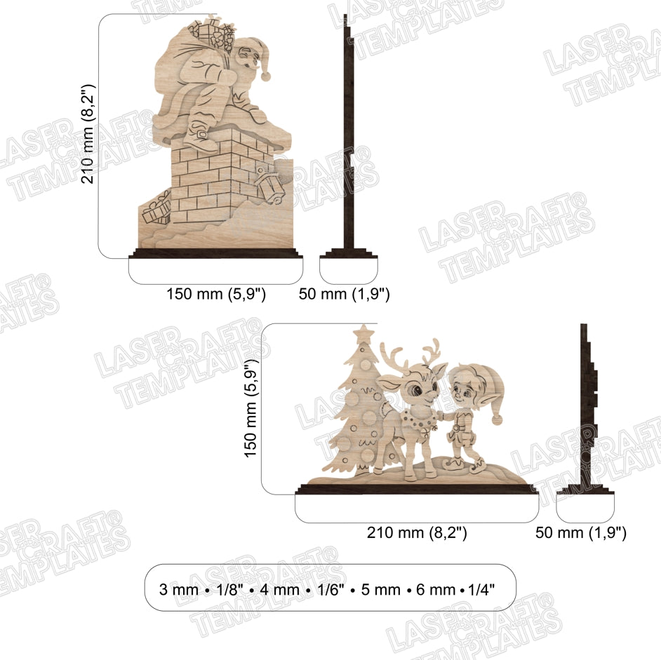 Decorazioni per la tavola natalizia in piedi 4 bundle di file in formato SVG tagliati al laser