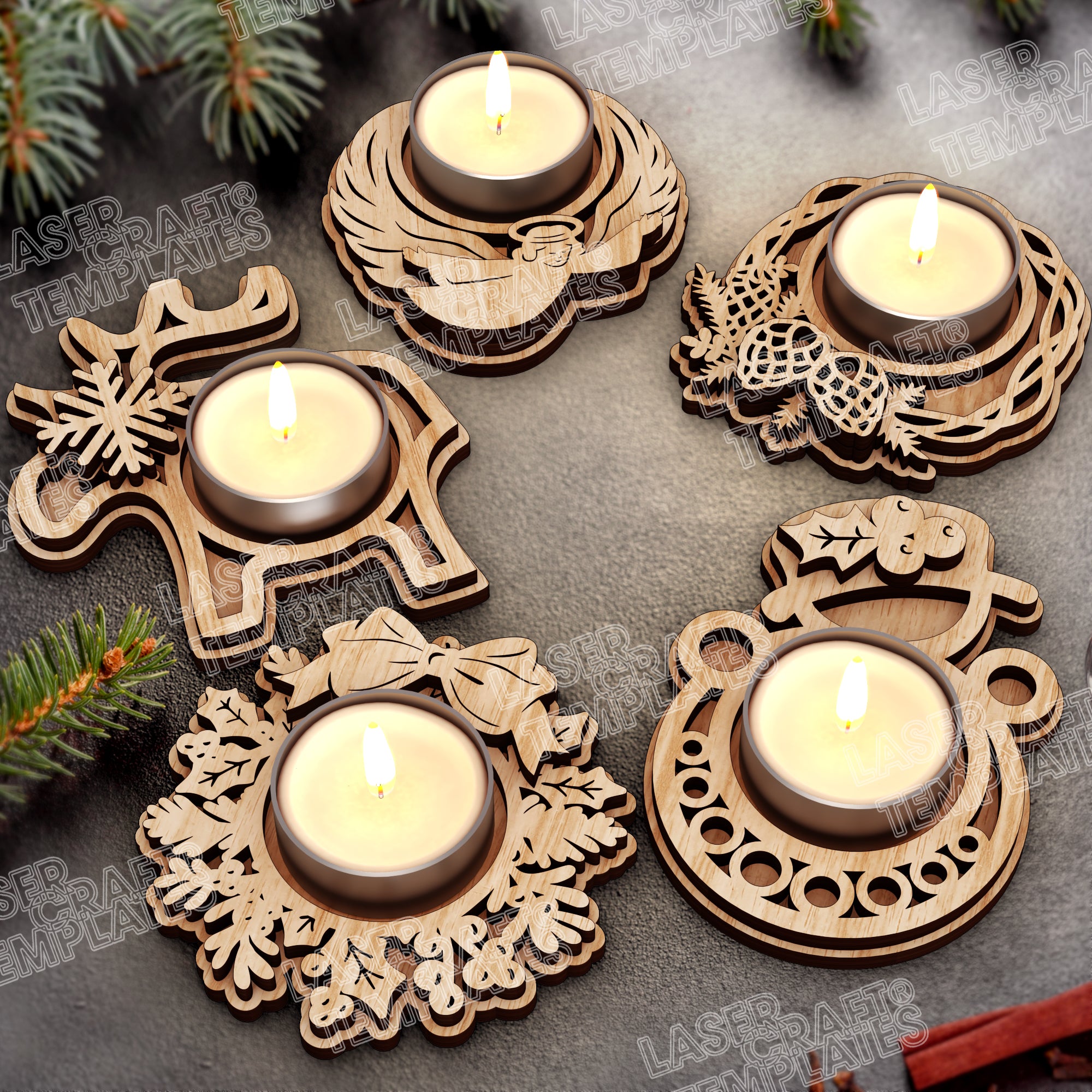 Portacandele natalizio tagliato al laser 5 bundle di file di taglio in formato SVG