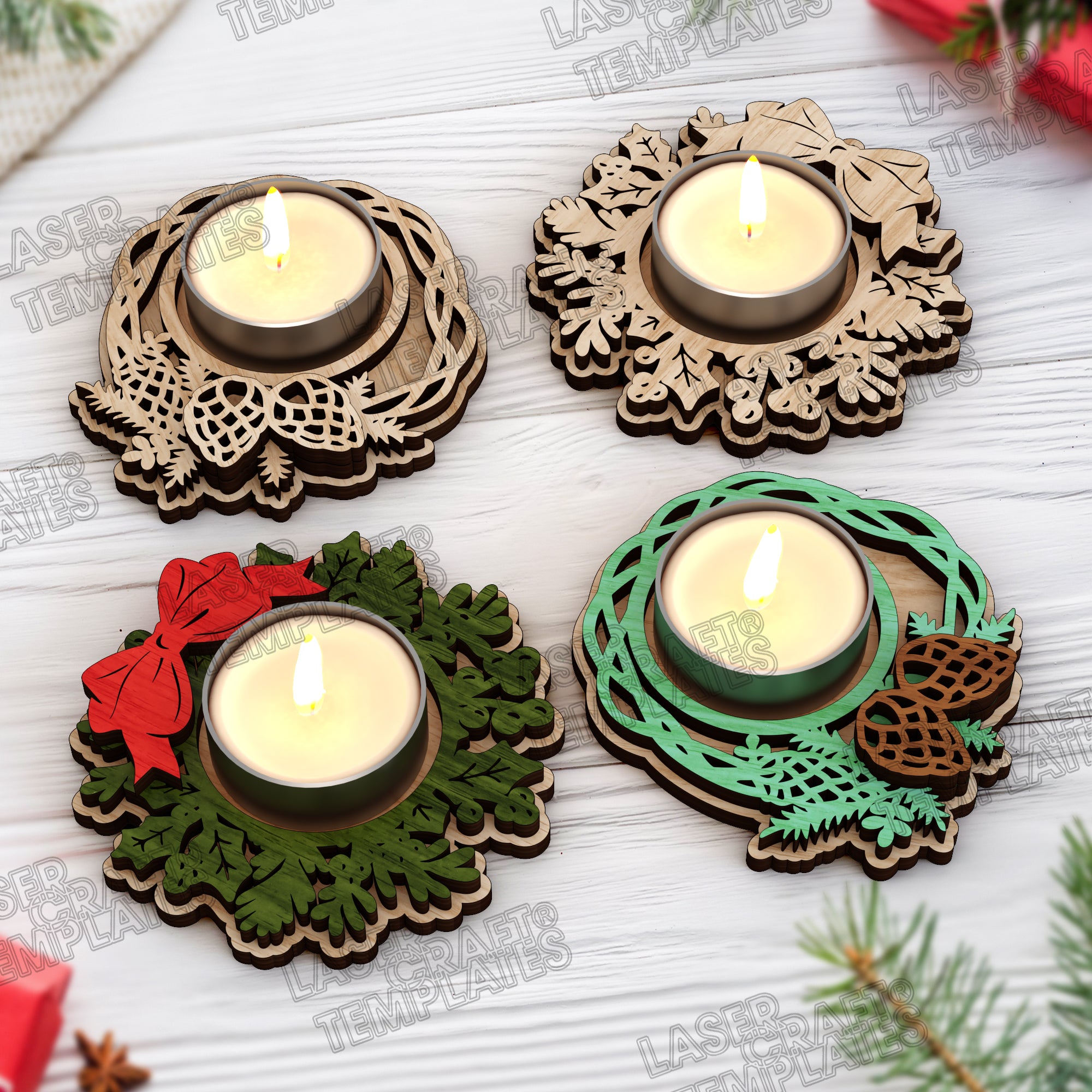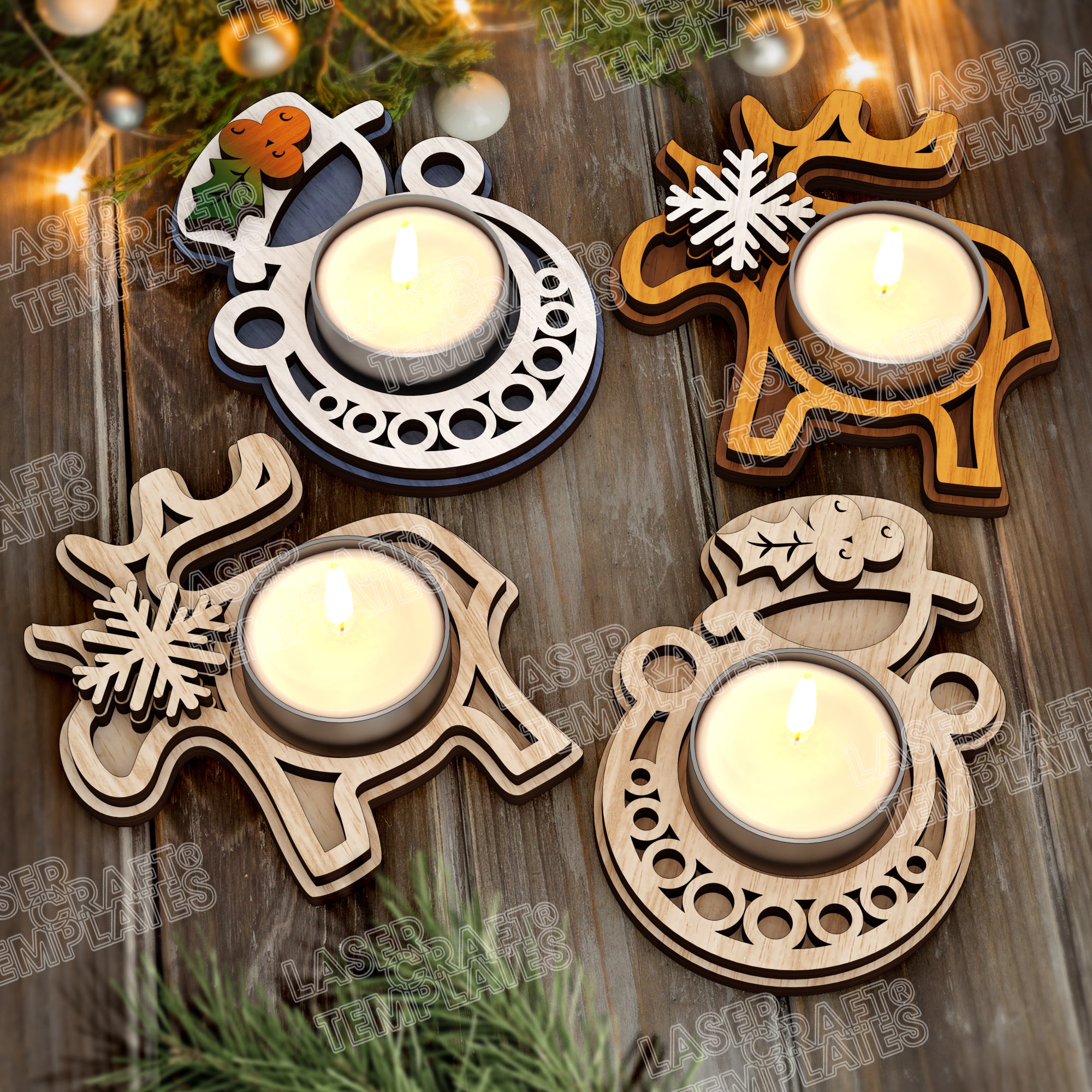 Portacandele natalizio tagliato al laser 3 set di file di taglio in formato SVG