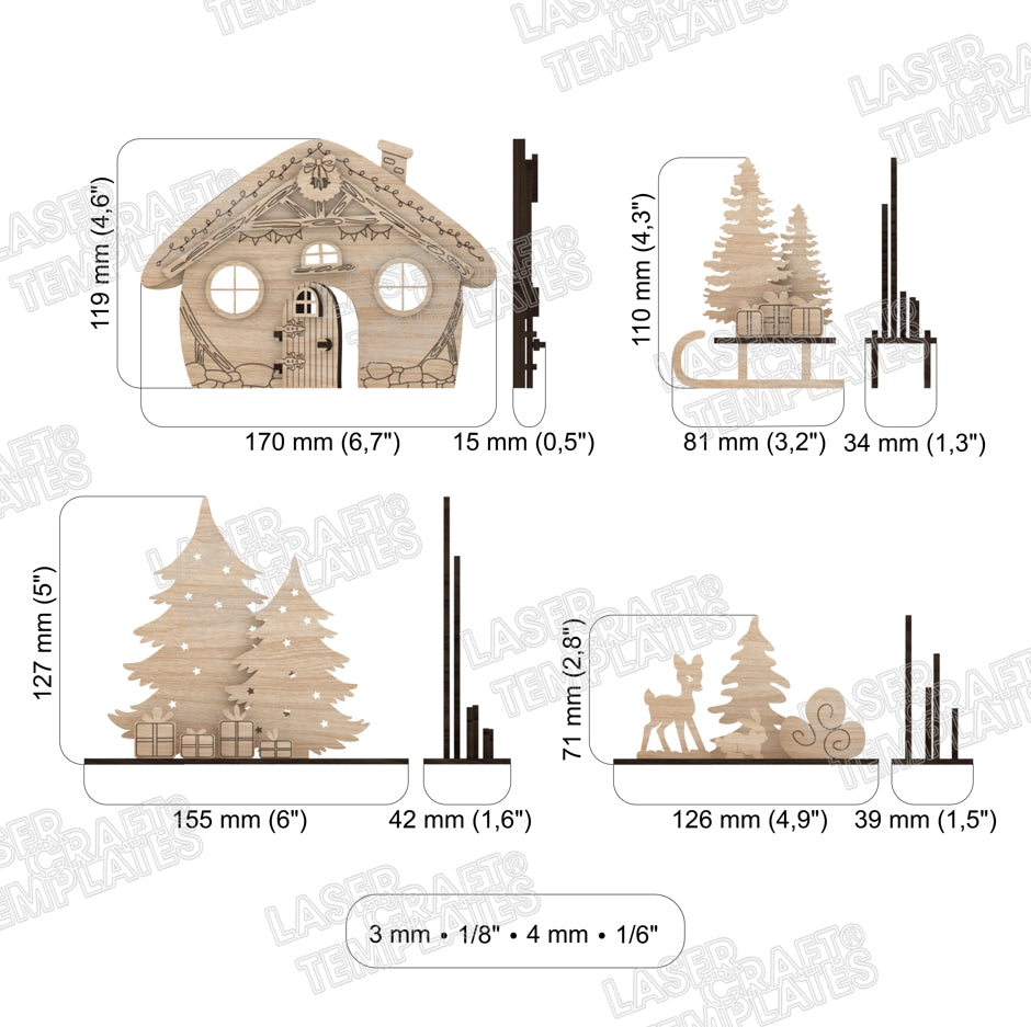 Decorazioni per la tavola con scene di Natale tagliate al laser 4 file in formato SVG