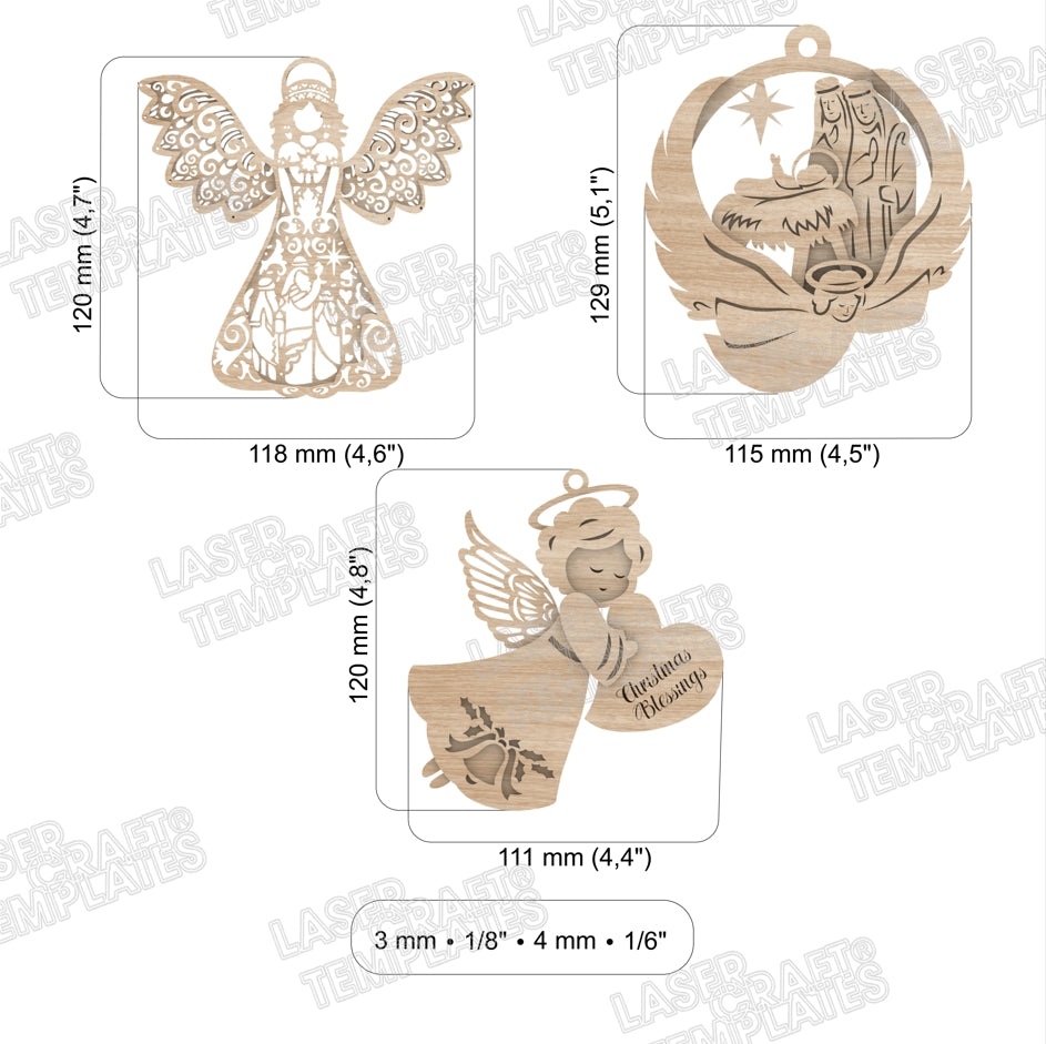 Ornamenti angelici tagliati al laser 18 bundle di file in formato SVG