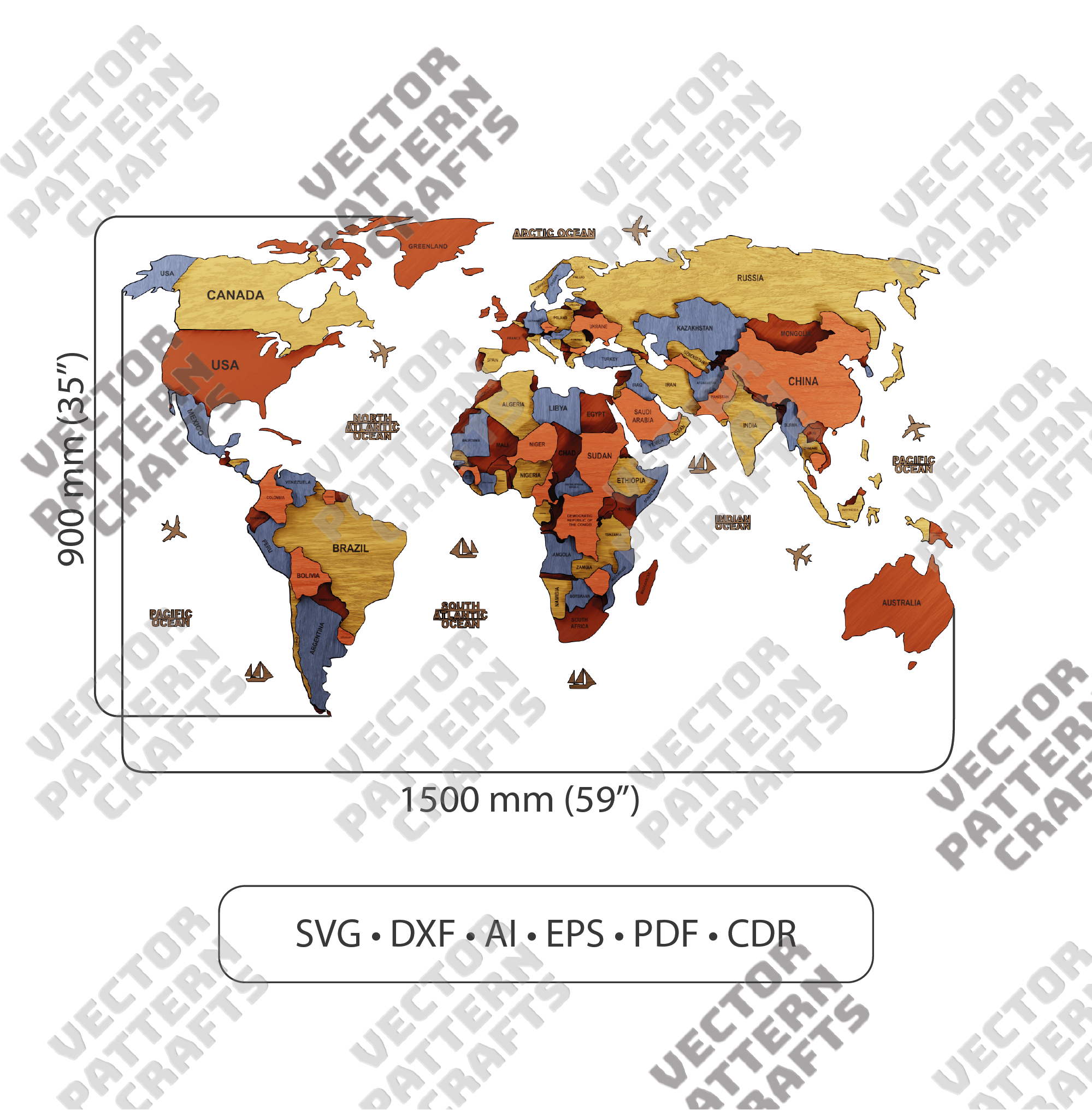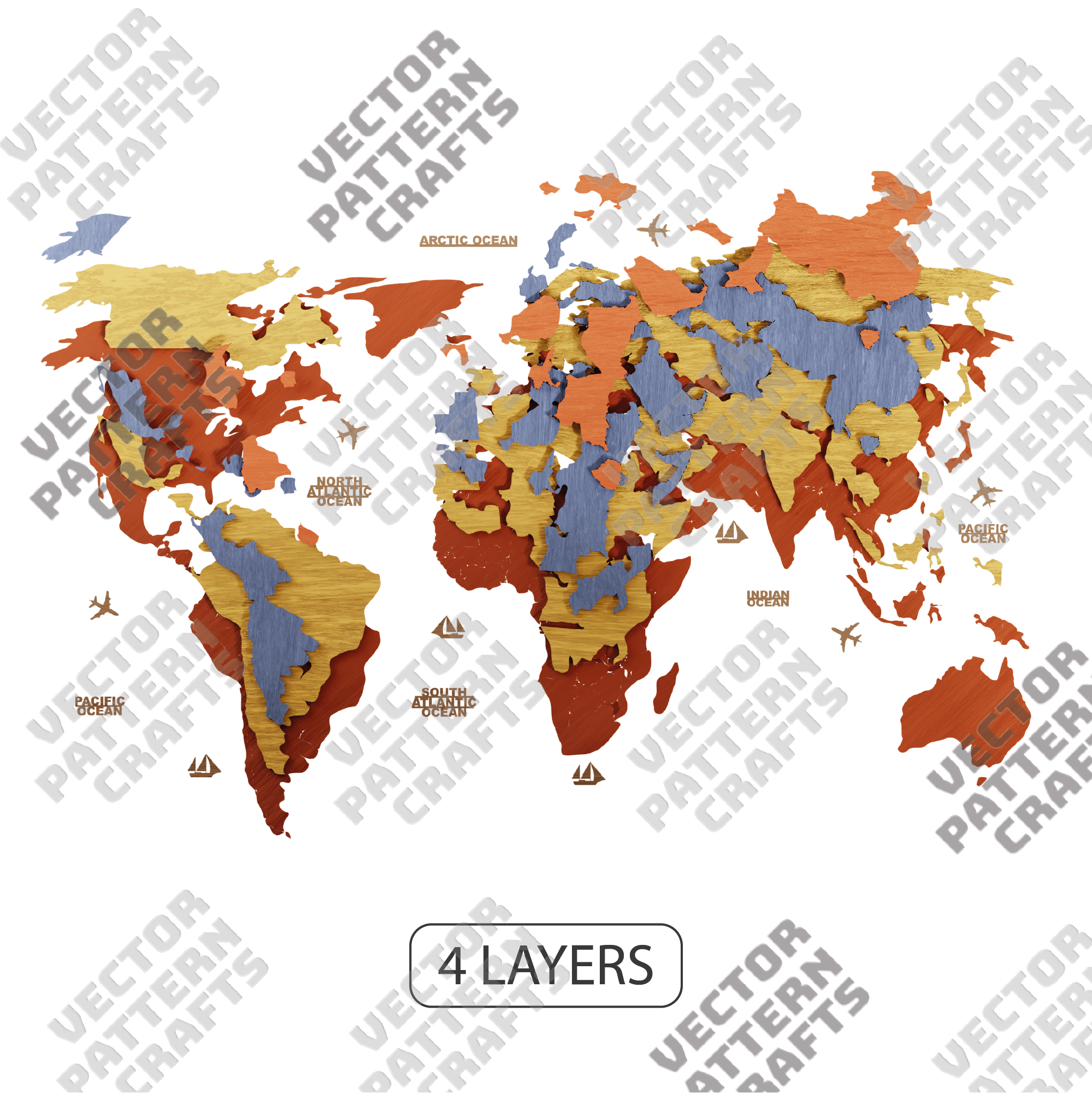 File in formato SVG del pannello a parete multistrato con mappa del mondo tagliata al laser