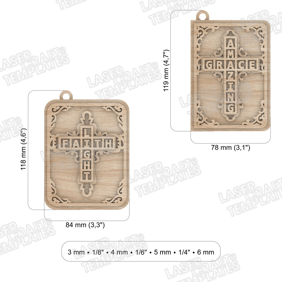 Ornamenti della croce cristiana 6 bundle di file in formato SVG tagliati al laser