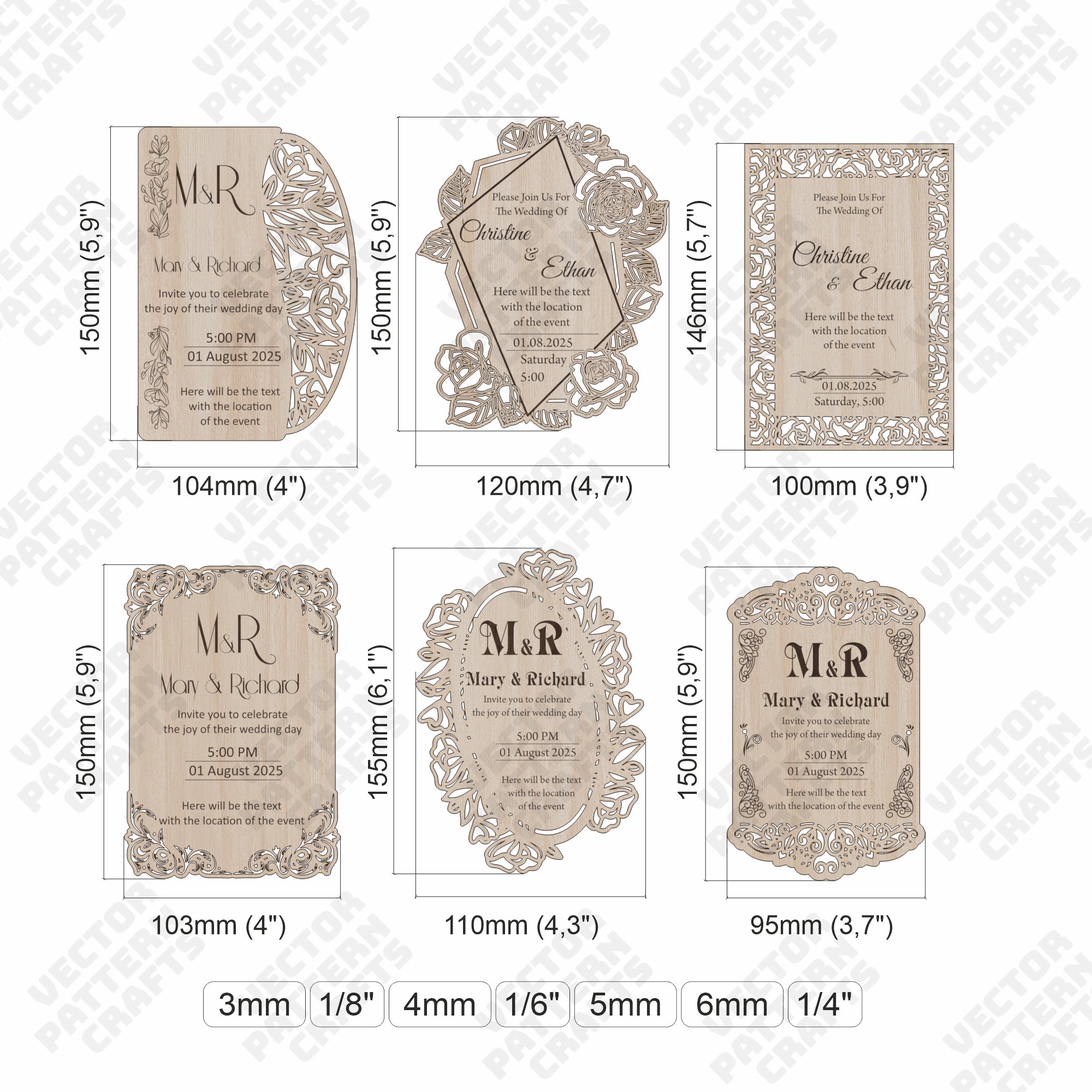 Laser cut Wedding invitation cards 6 set svg cutting file