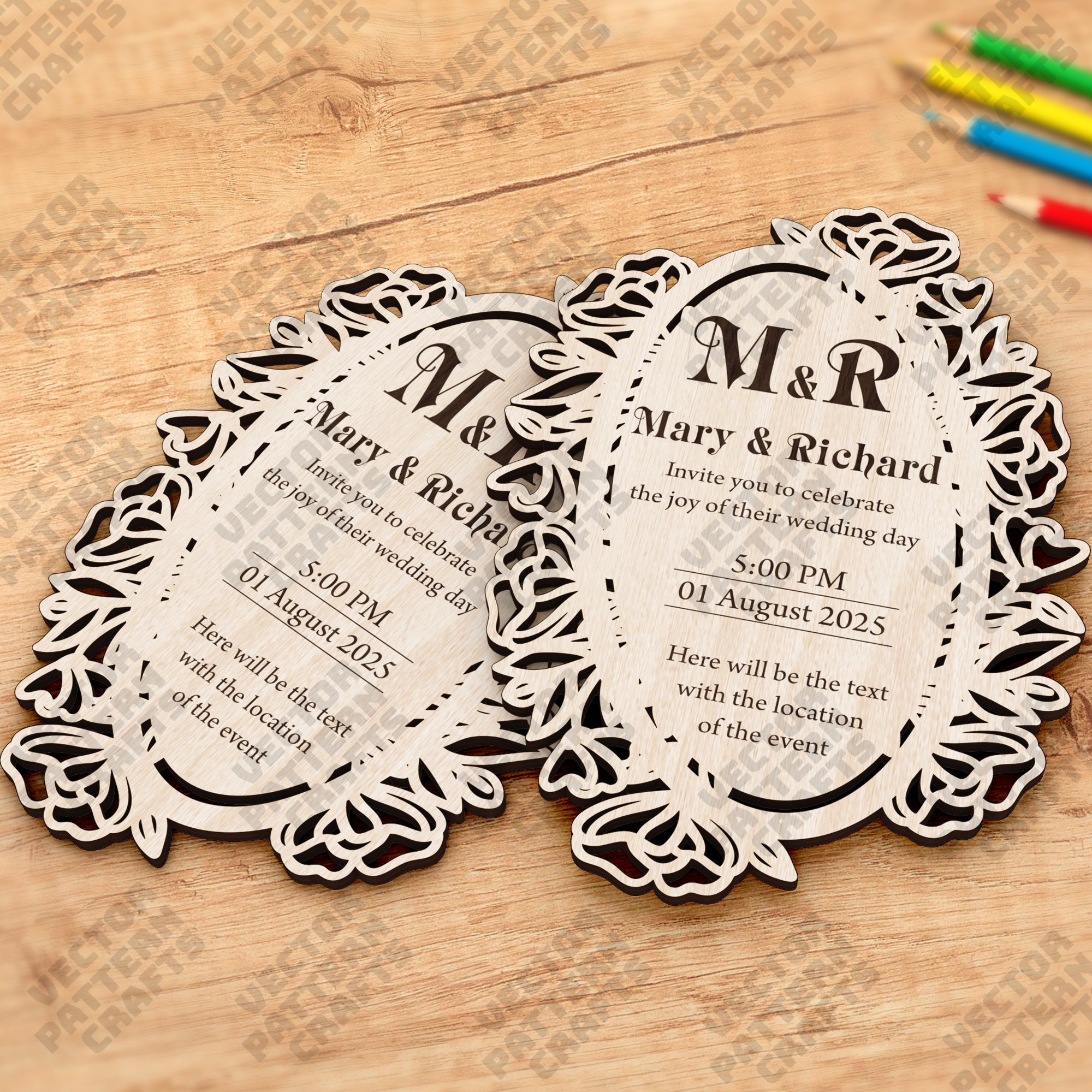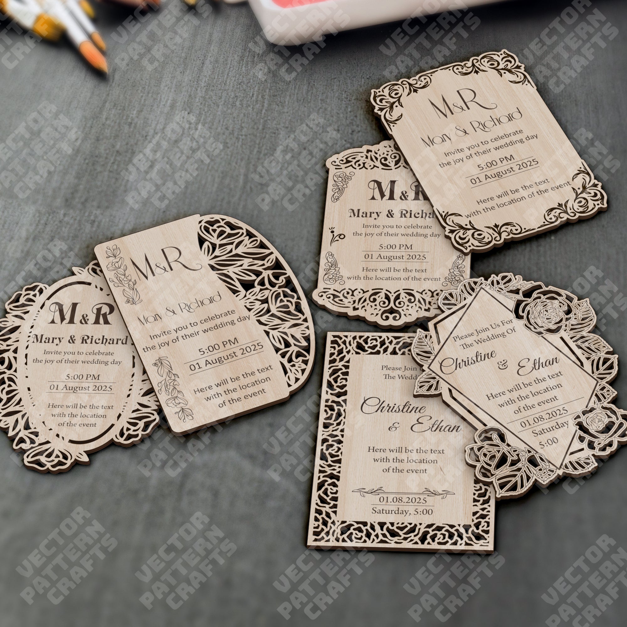 Laser cut Wedding invitation cards 6 set sv cutting file