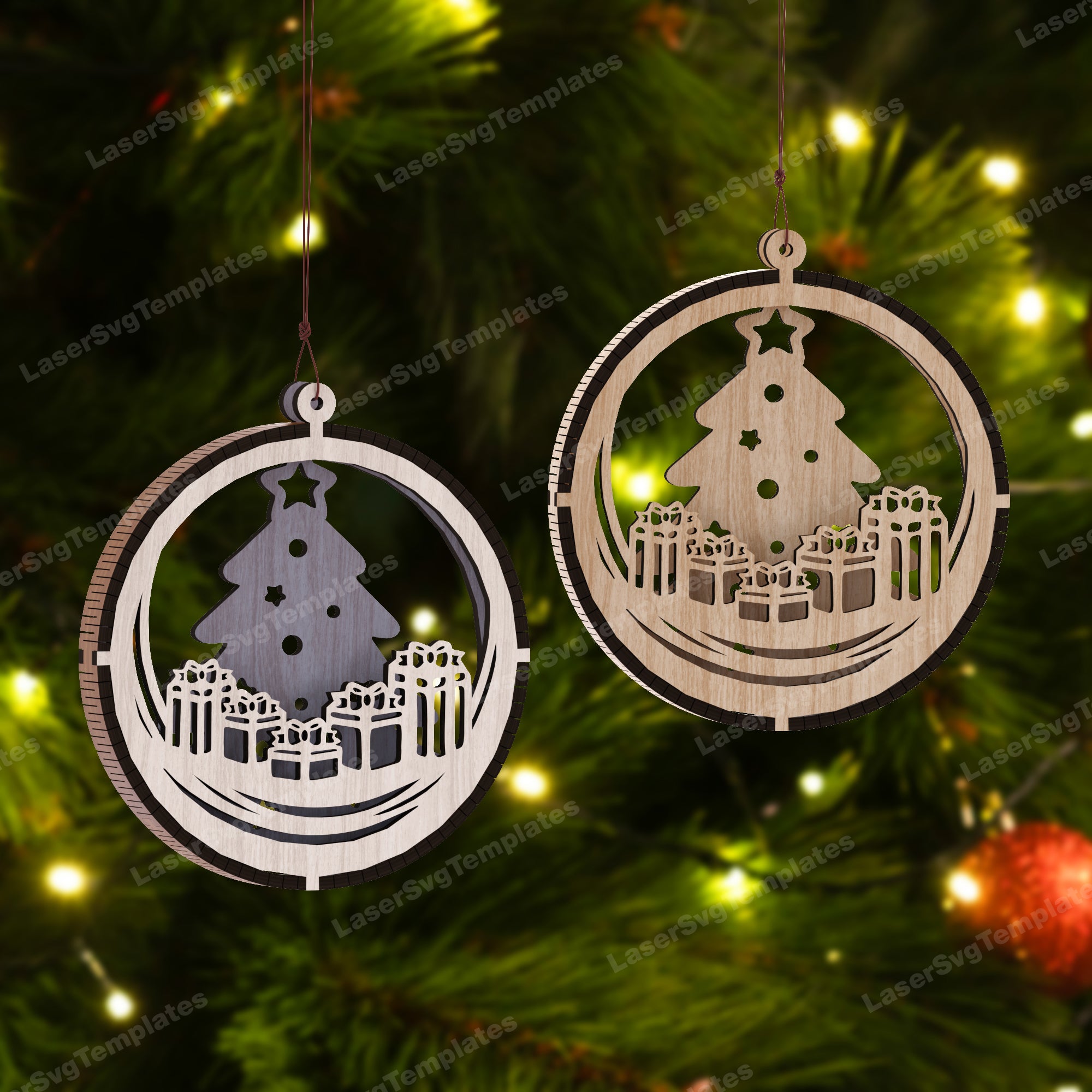 - File SVG di Ornamenti per alberi rotondi a taglio laser