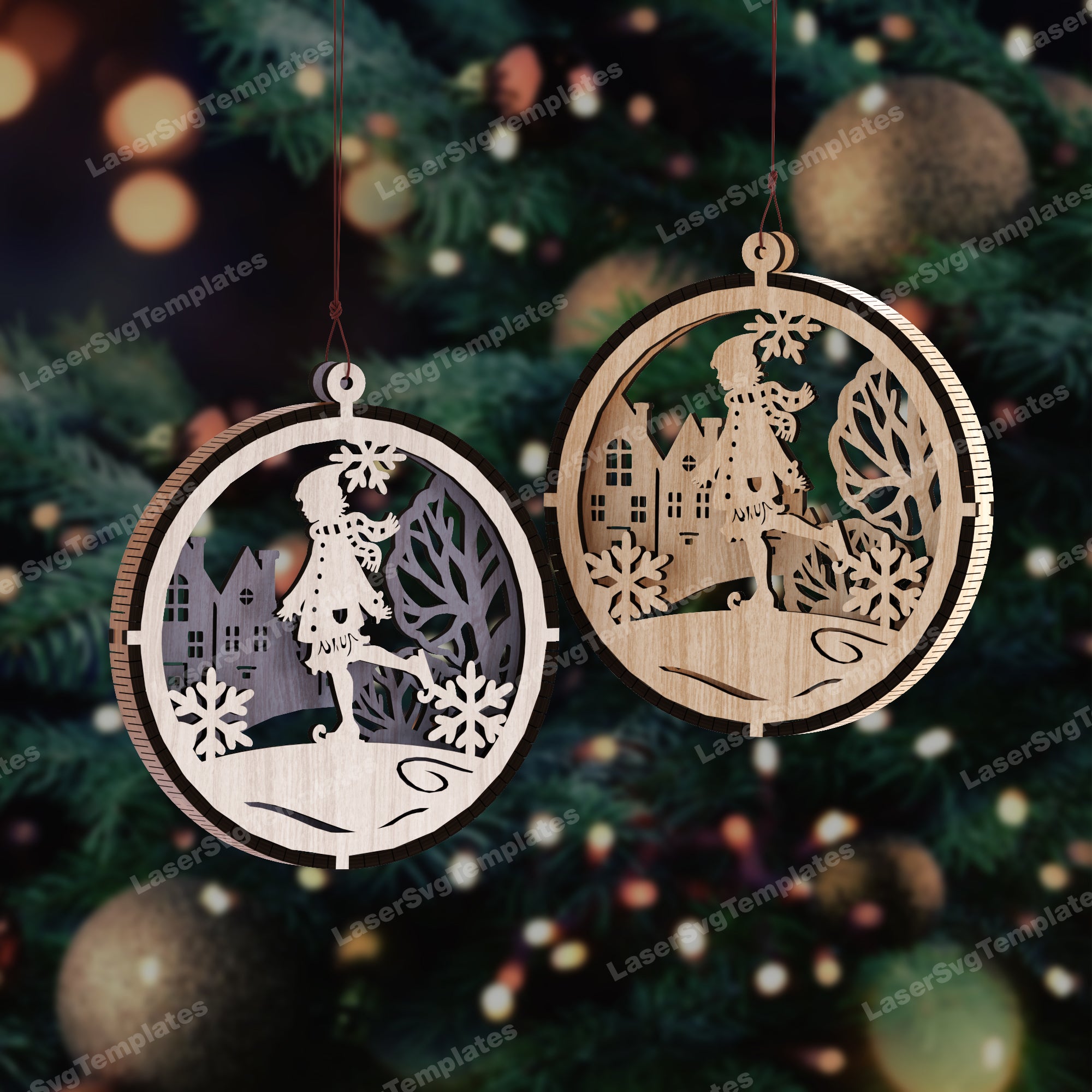 Laser tagliato a Natale Ornamenti dell'albero 4 File Svg